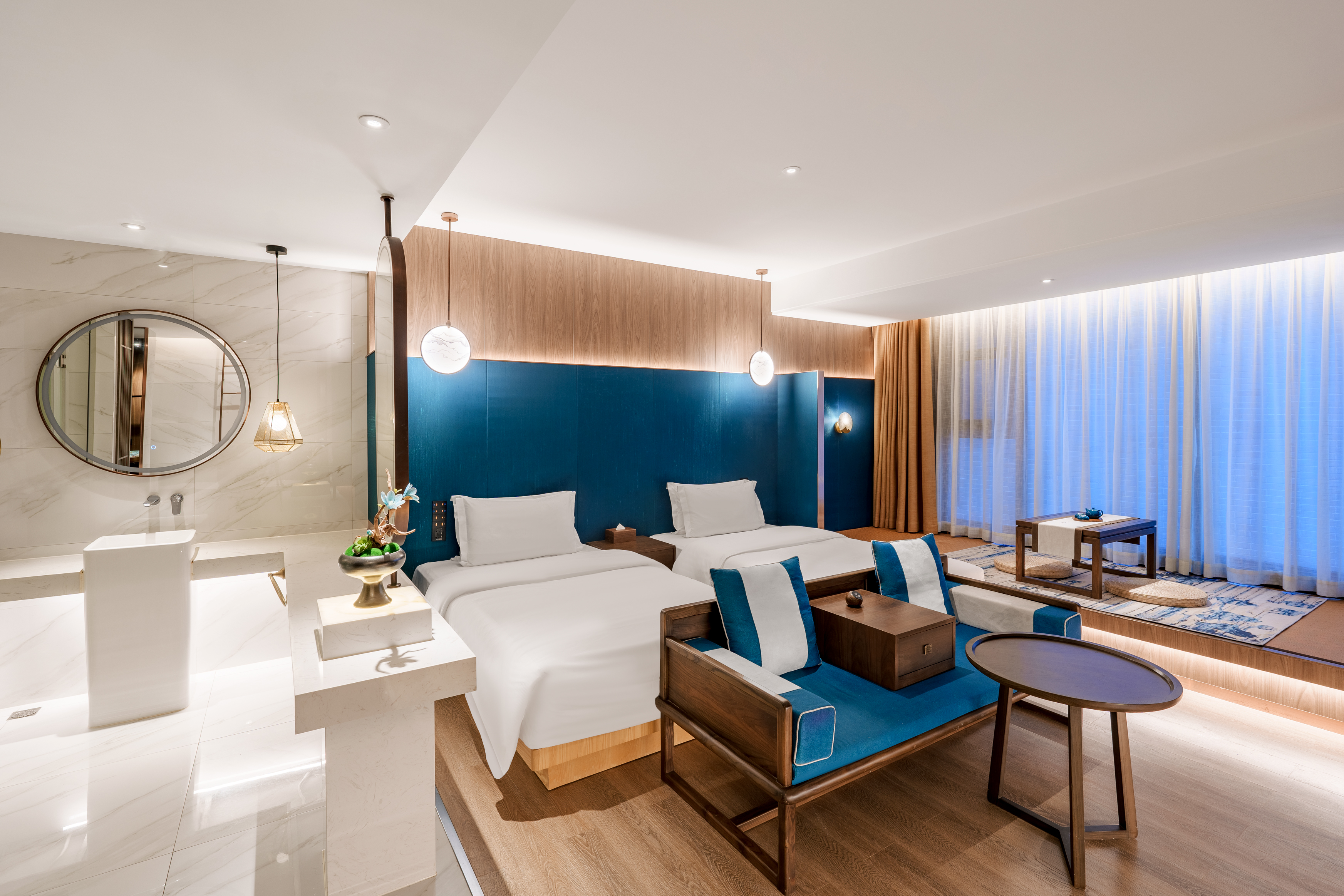 花寂花开·双床房 | 超大榻榻米+茶台+浴缸