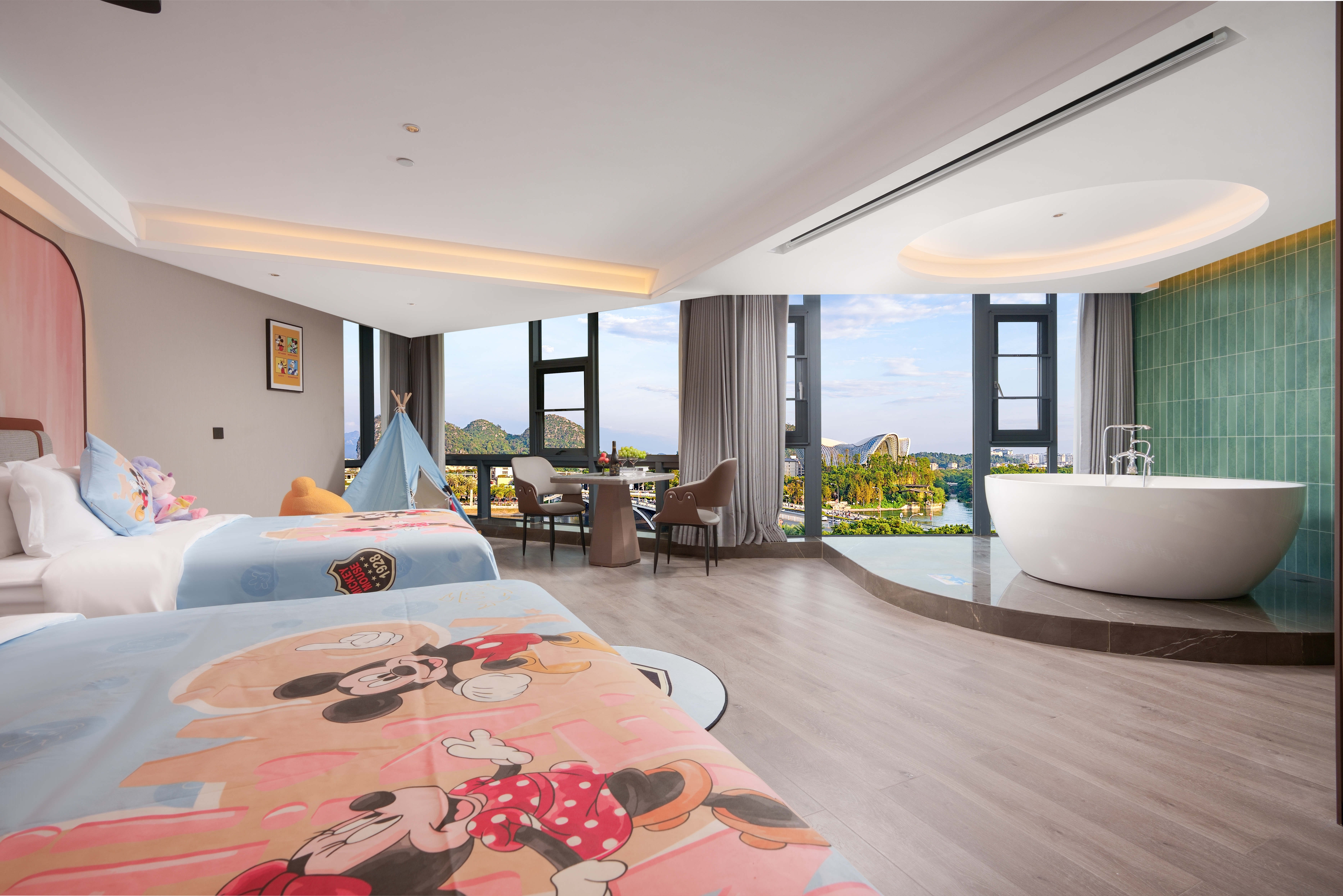 逍遥漓江·山水巨幕浴缸家庭亲子套房|独立会客厅+巨型落地窗亲子戏水浴缸+专属玩偶坐骑