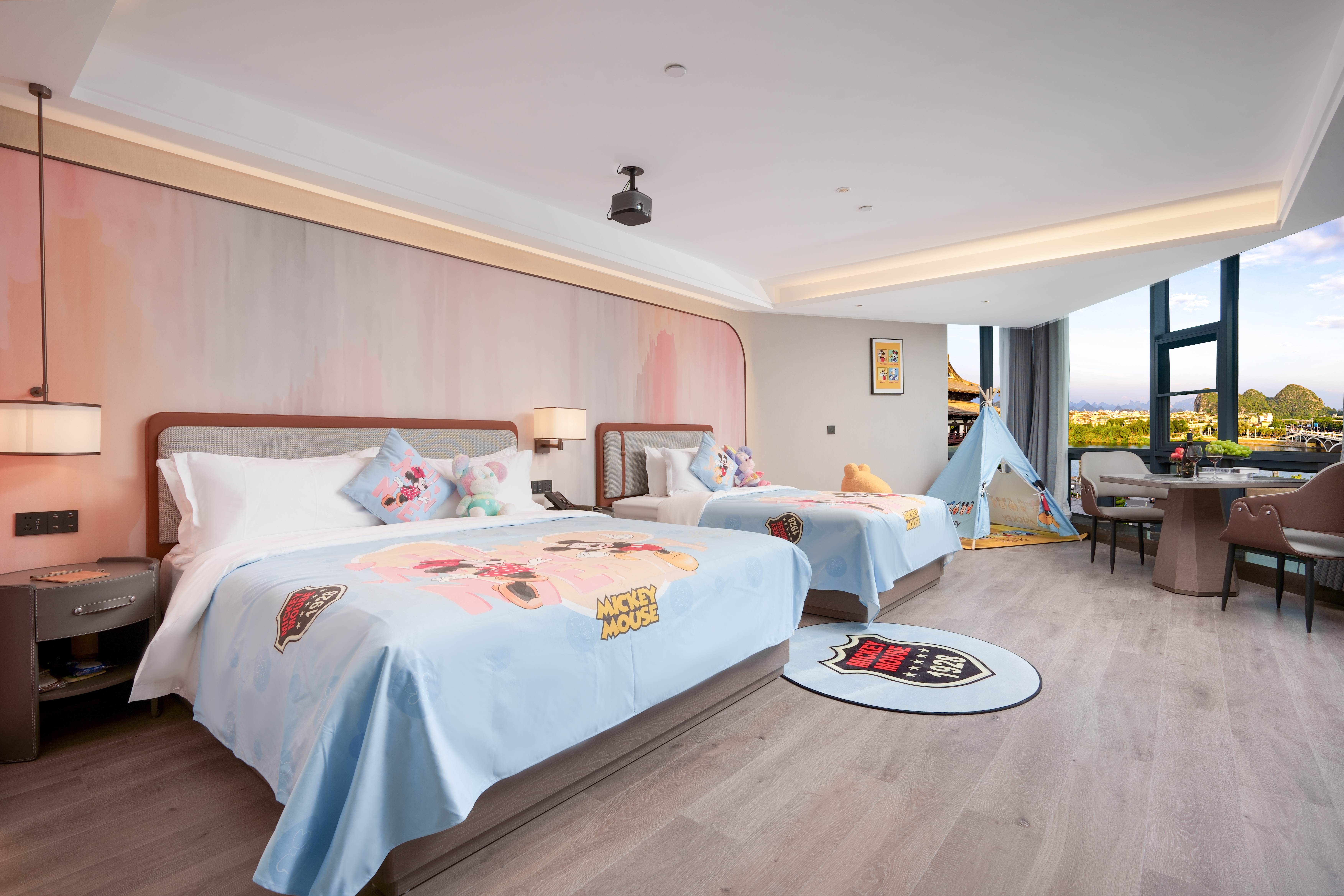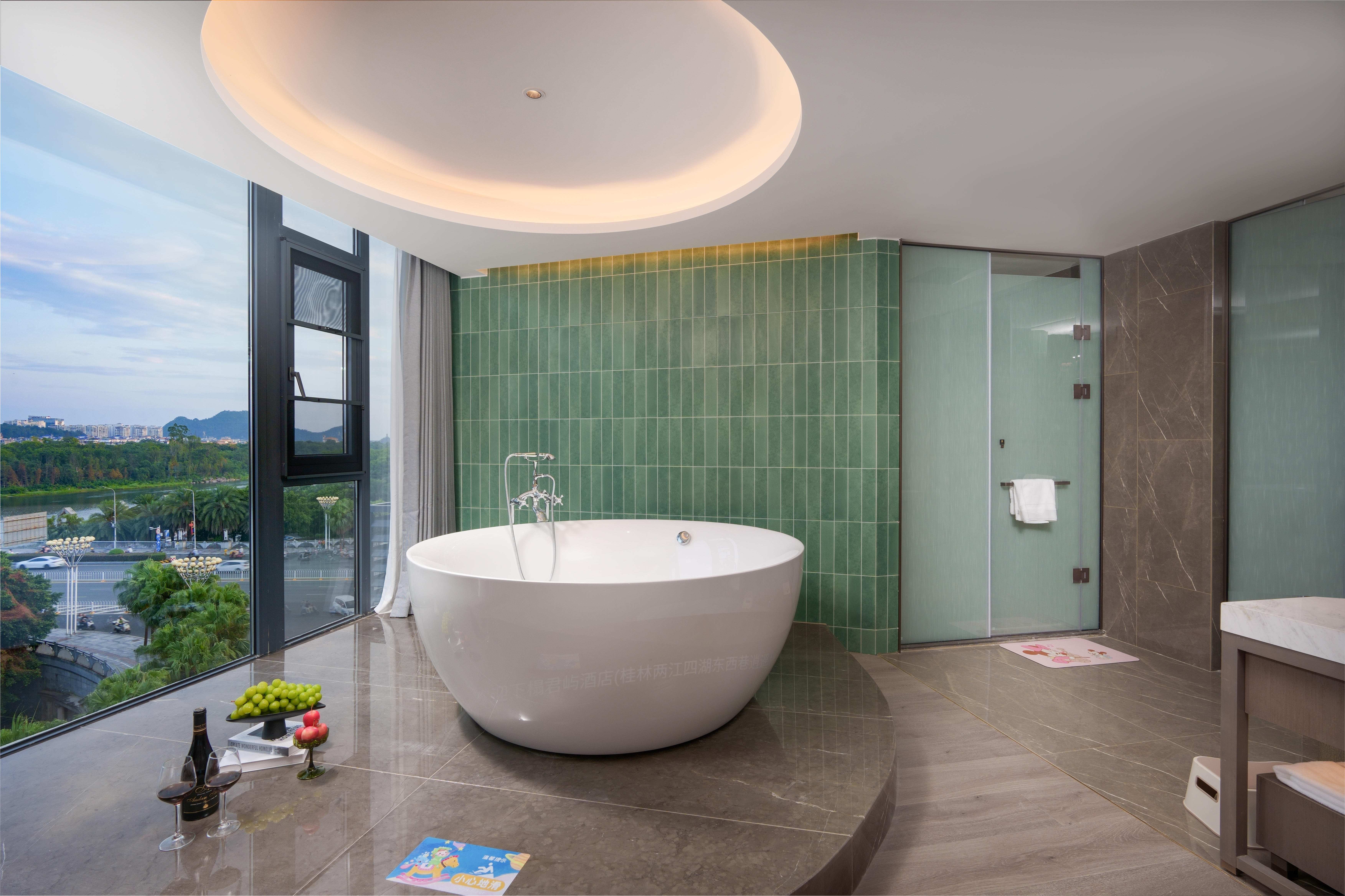 逍遥漓江·山水巨幕浴缸家庭亲子套房|独立会客厅+巨型落地窗亲子戏水浴缸+专属玩偶坐骑