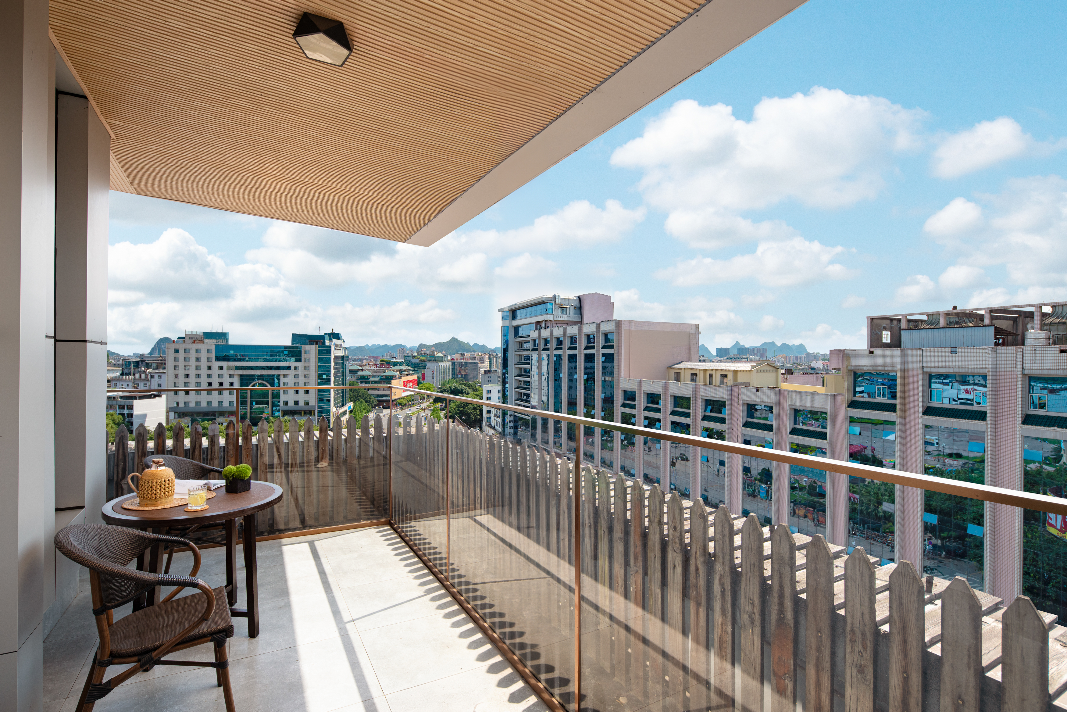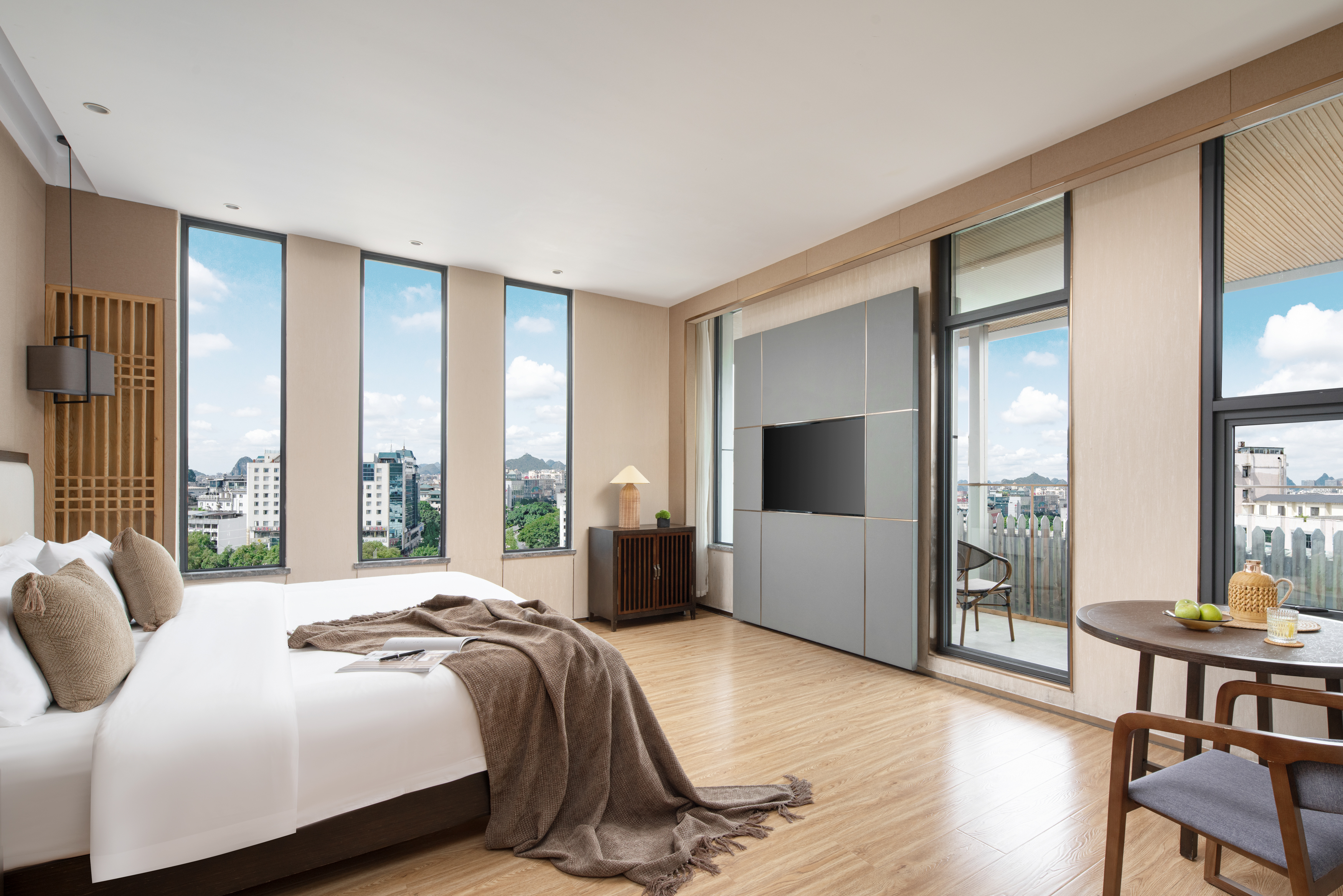 挽霞高层露台大床房丨超大露台观景+坐藤编椅看羣山环绕+赏落日余晖