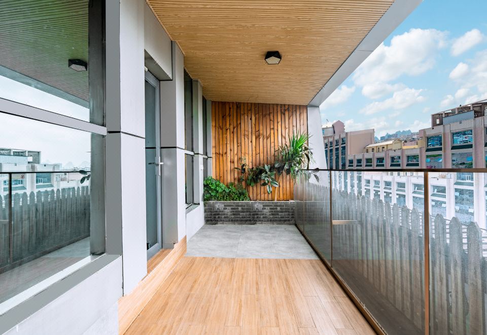 醉美夕阳露台双床房丨超大露台观景+坐藤编椅看羣山环绕