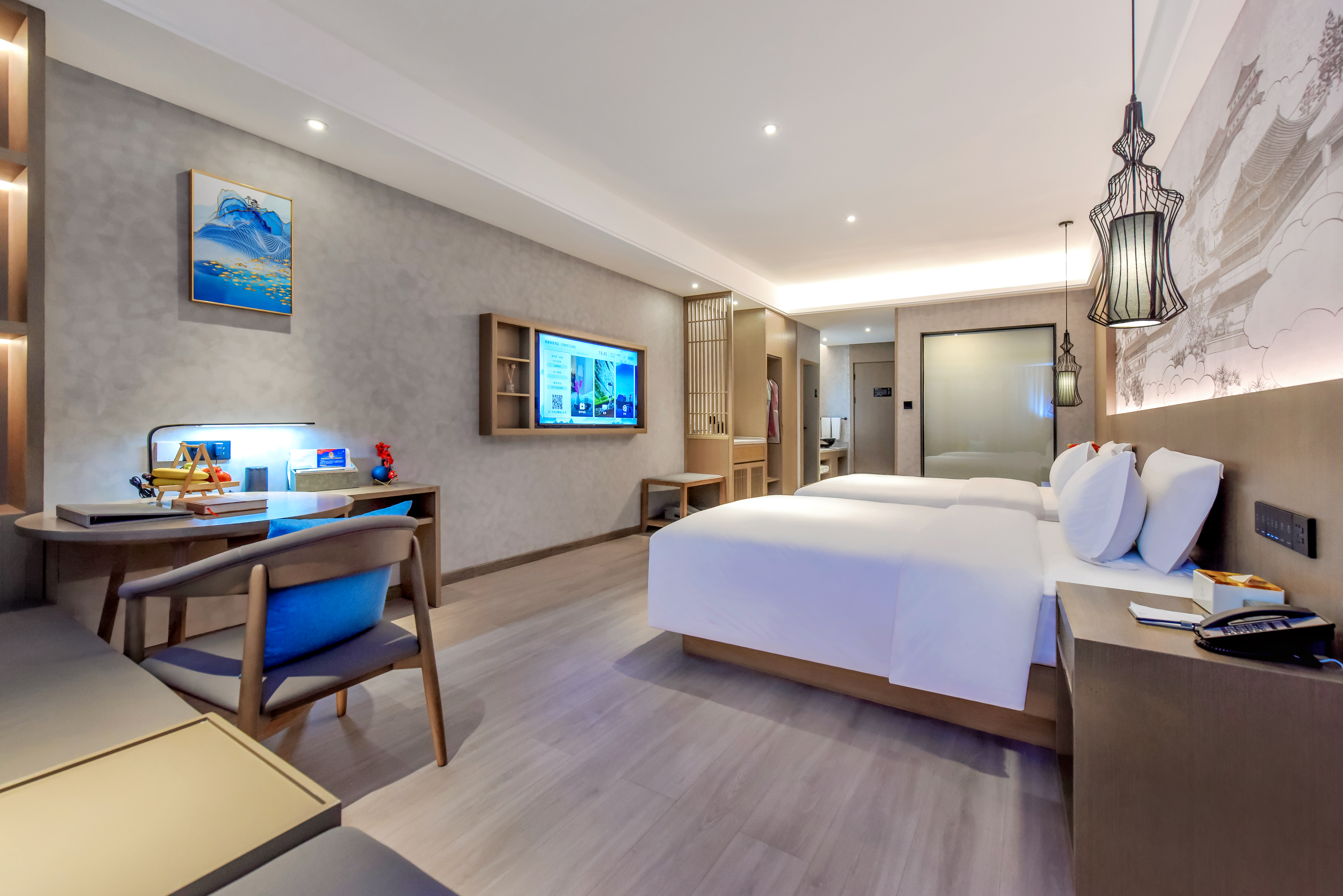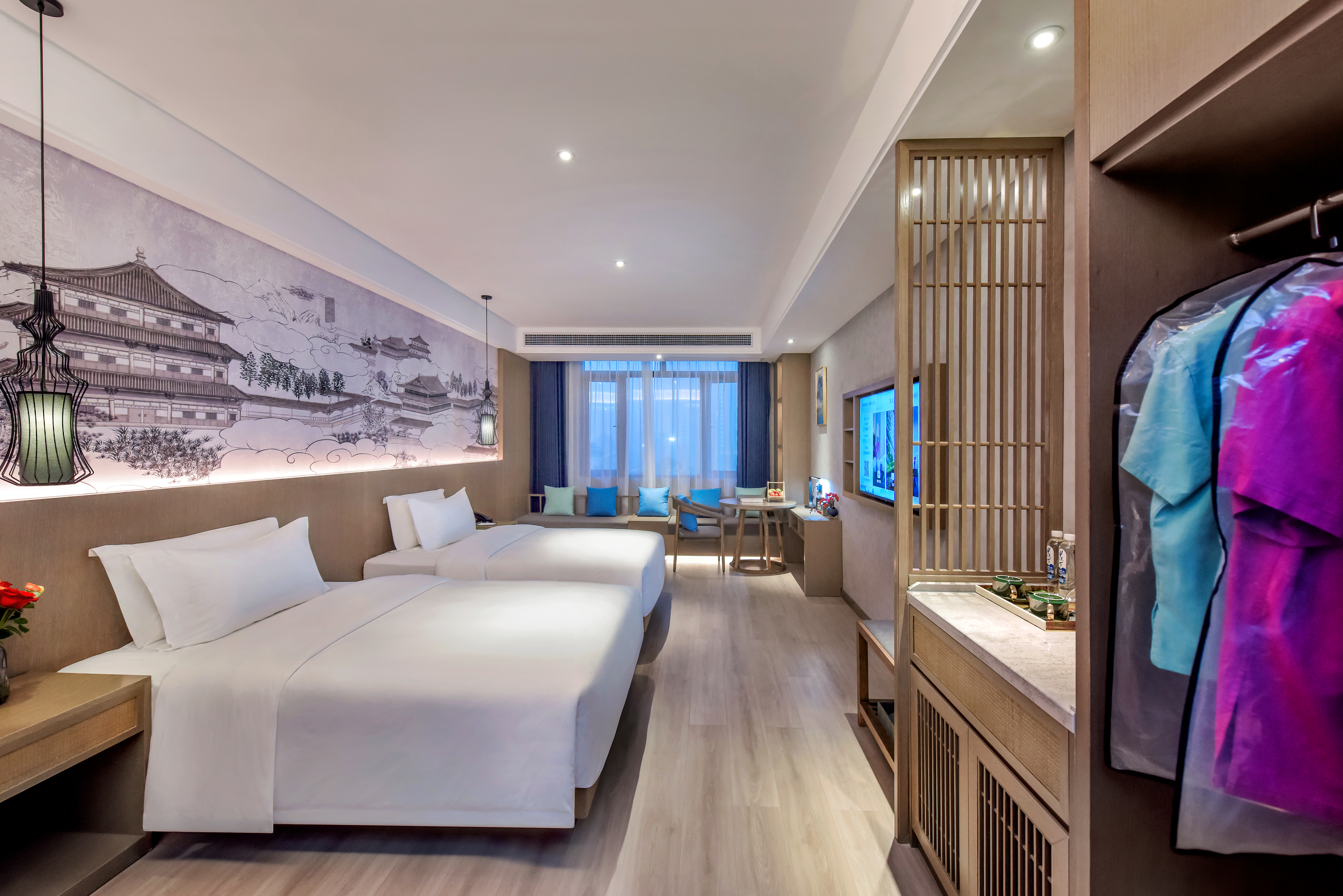 城景豪华双床房(小度语音客控+舒适榻榻米+电动窗帘)