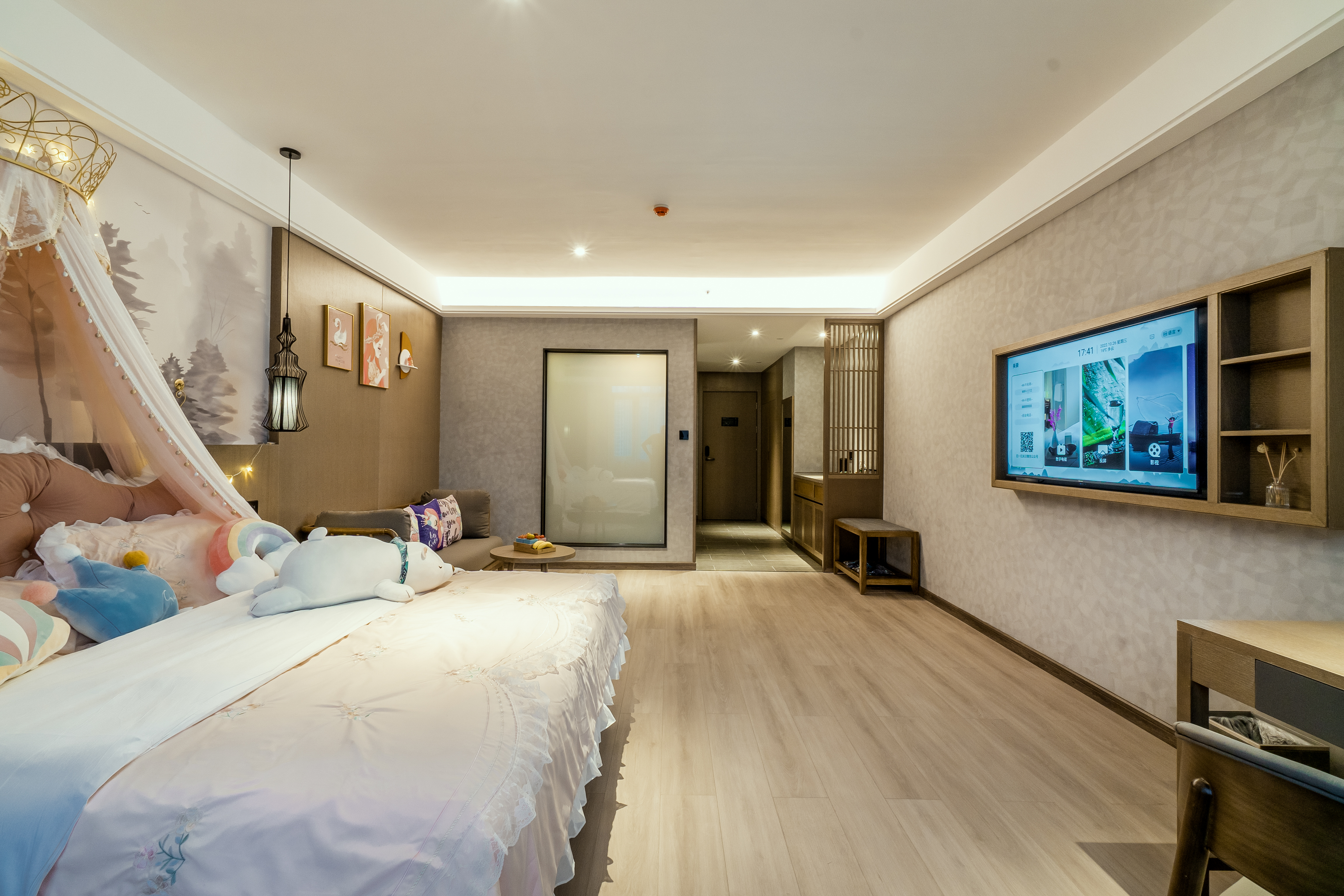 闺蜜主题大床房(粉色纱帐+智能家居)
