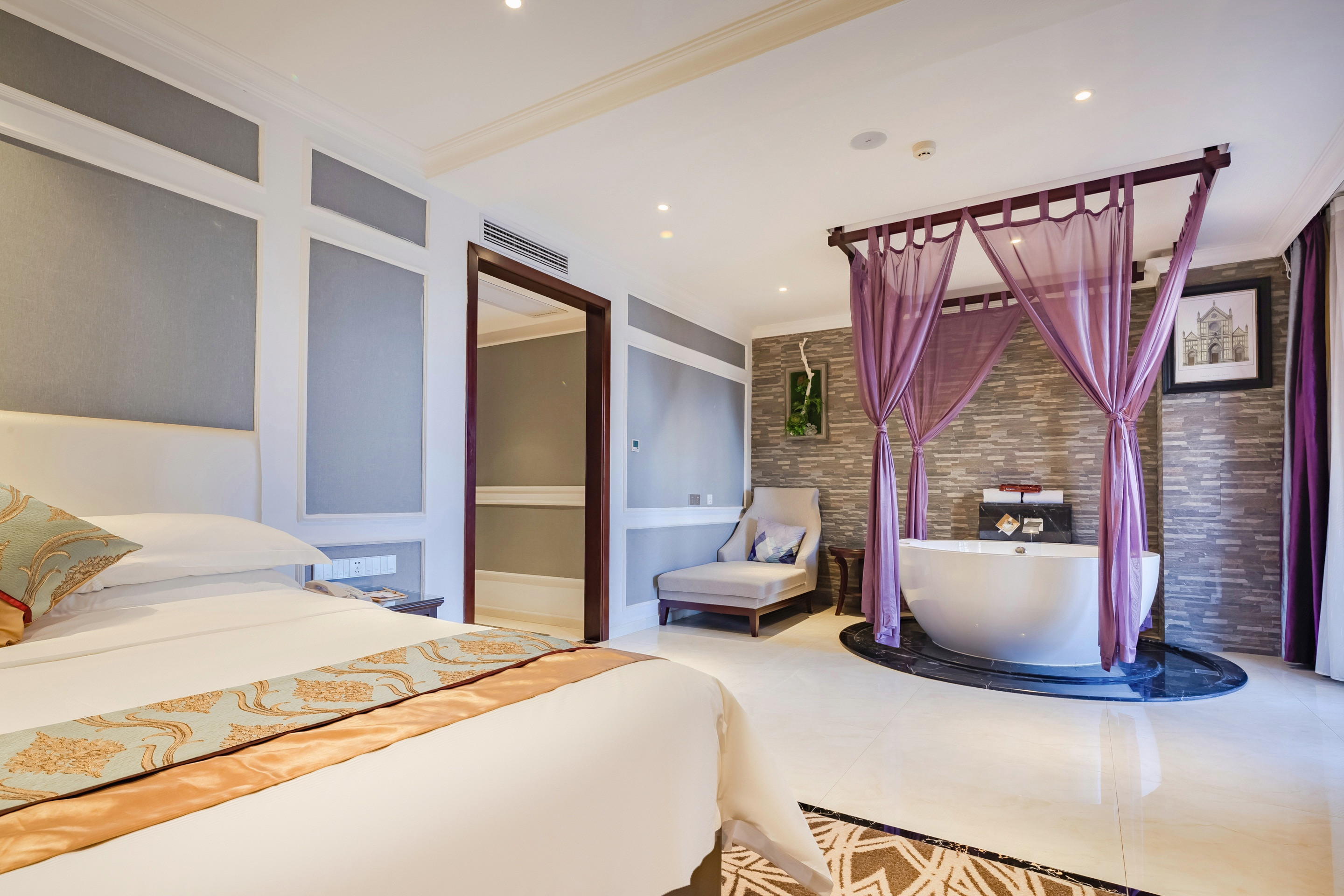 浪漫主题房(大浴缸+别墅美景+鸟语花香+观景大阳台)