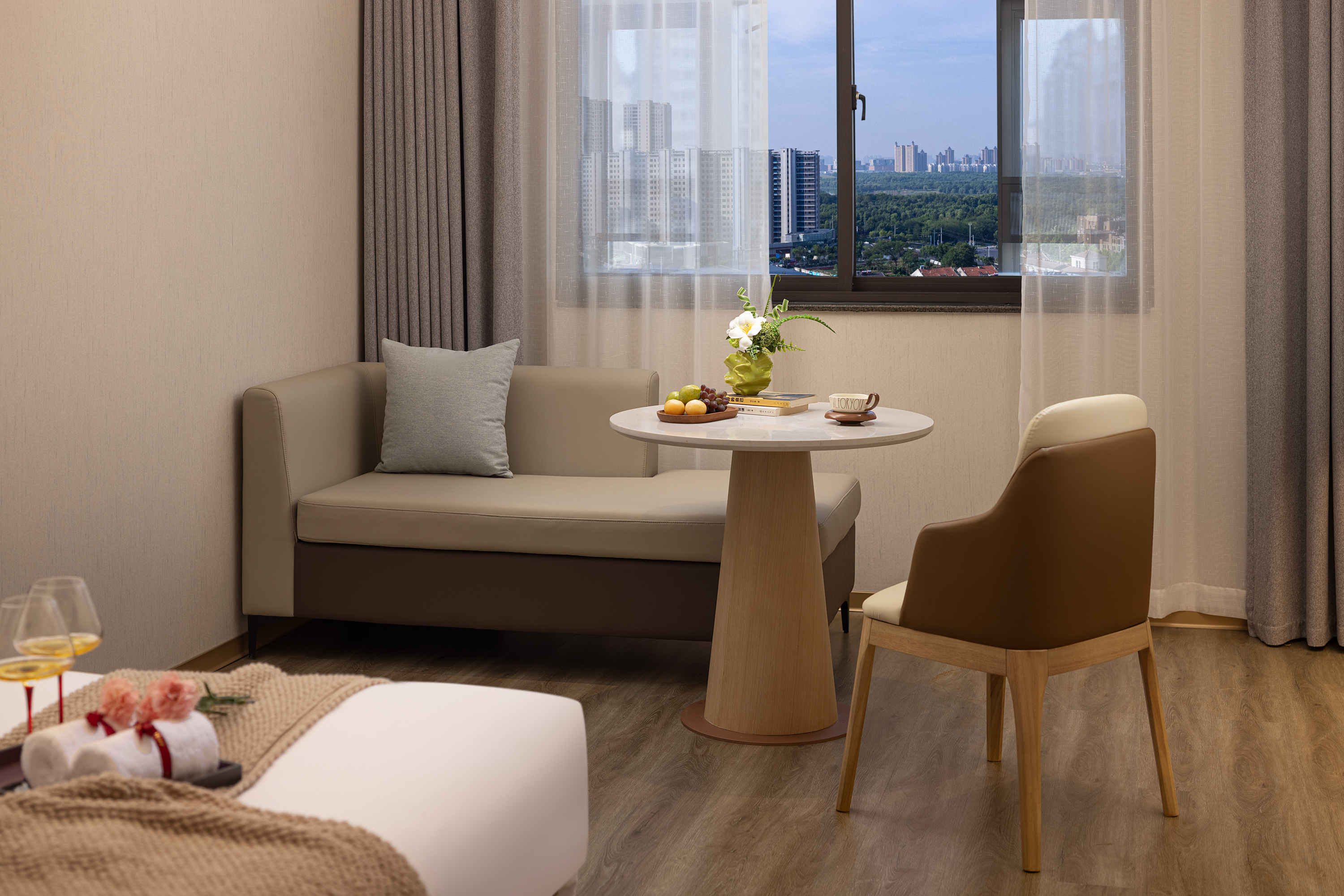 艺心·城景大床房┃舒适沙发+静音冰箱+独立办公桌