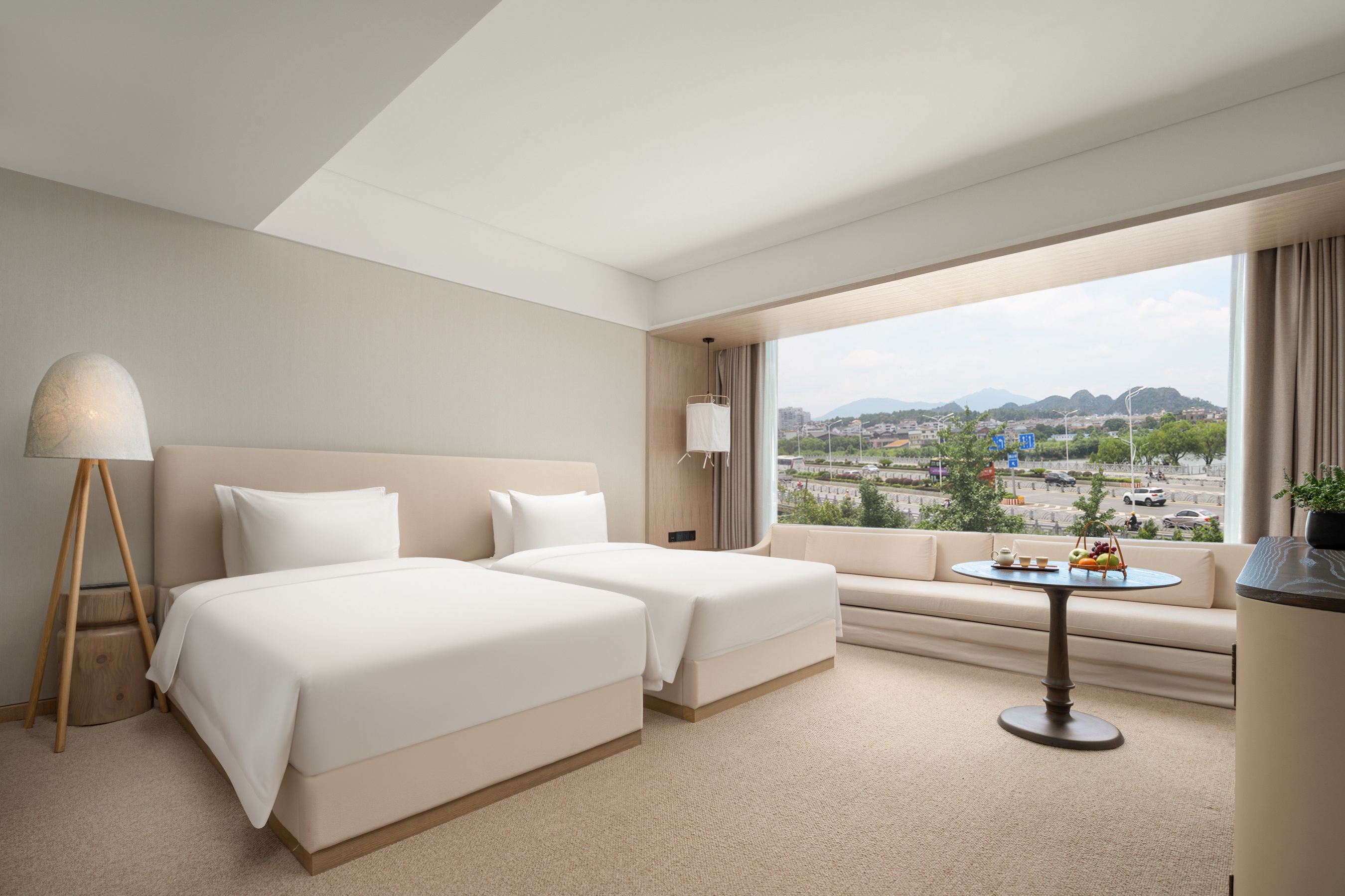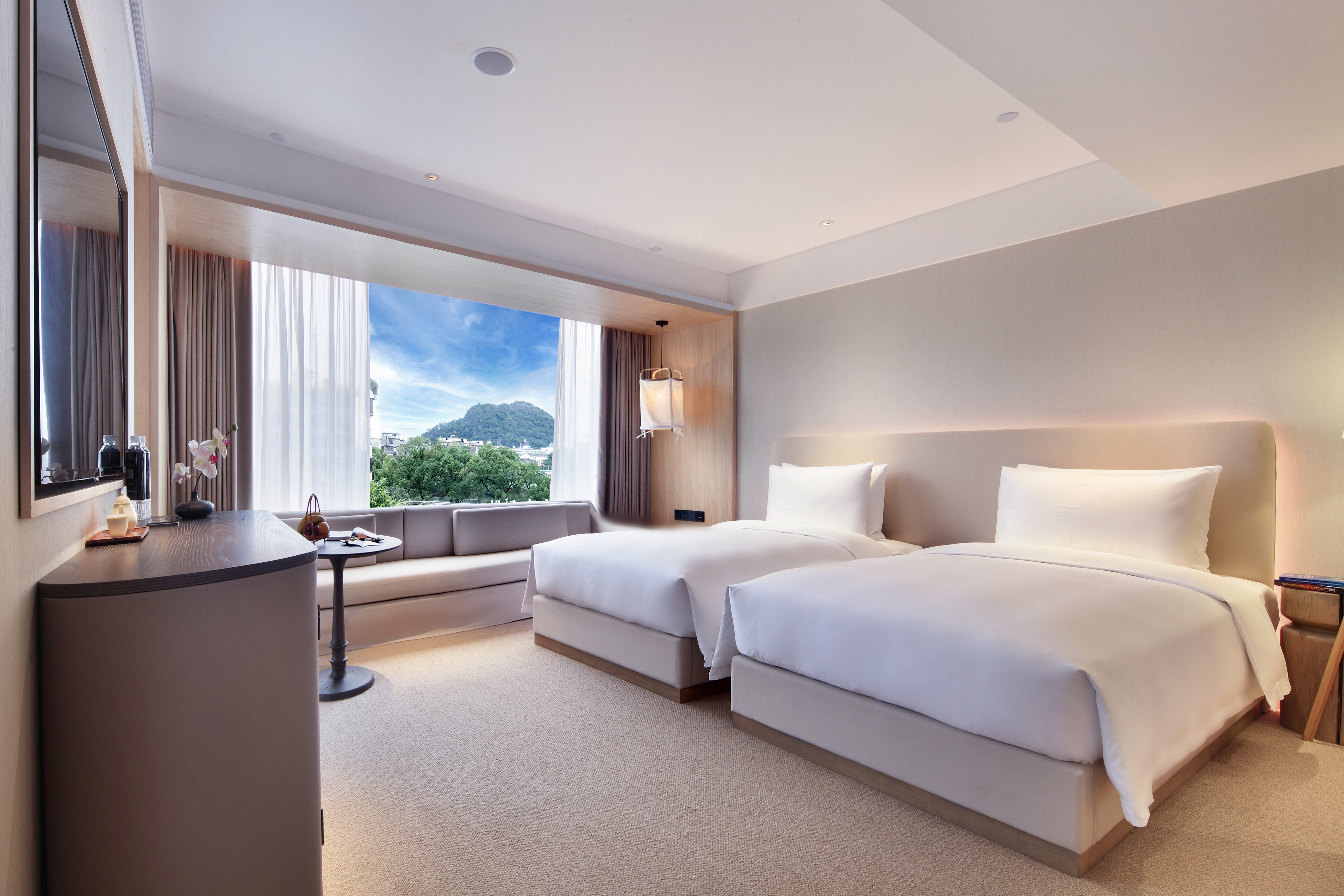 漓江桥畔观景双床房|远眺江景+喀斯特羣山+夕阳晚霞