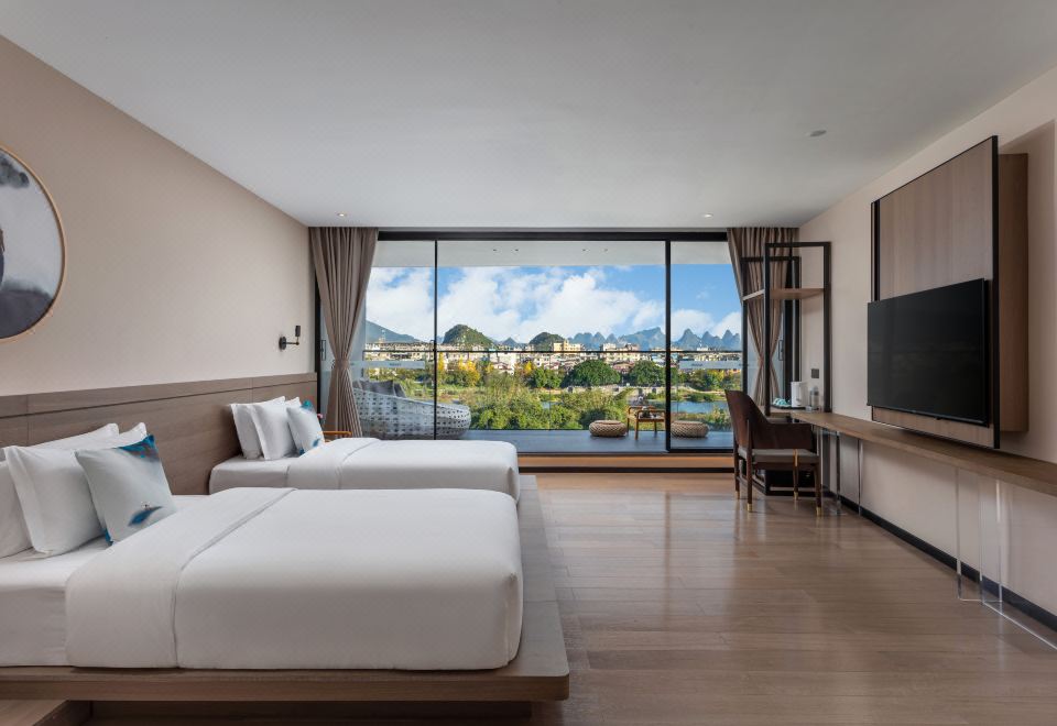 180°漓江阳台双床房丨5米阳台看山水丨超大躺椅观日出