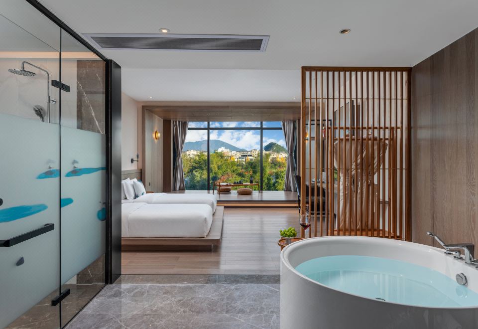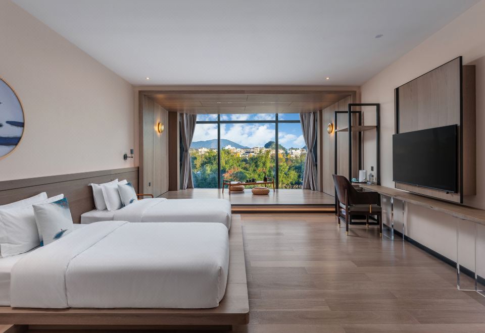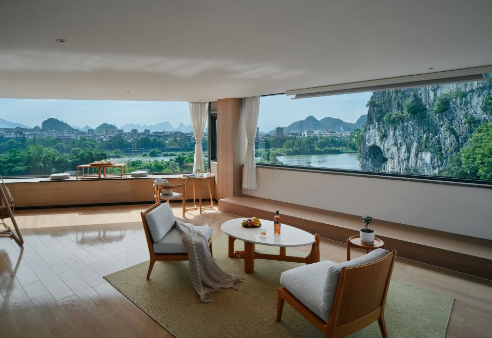 一线漓江全景双床房丨江景落地窗丨榻榻米上看漓江
