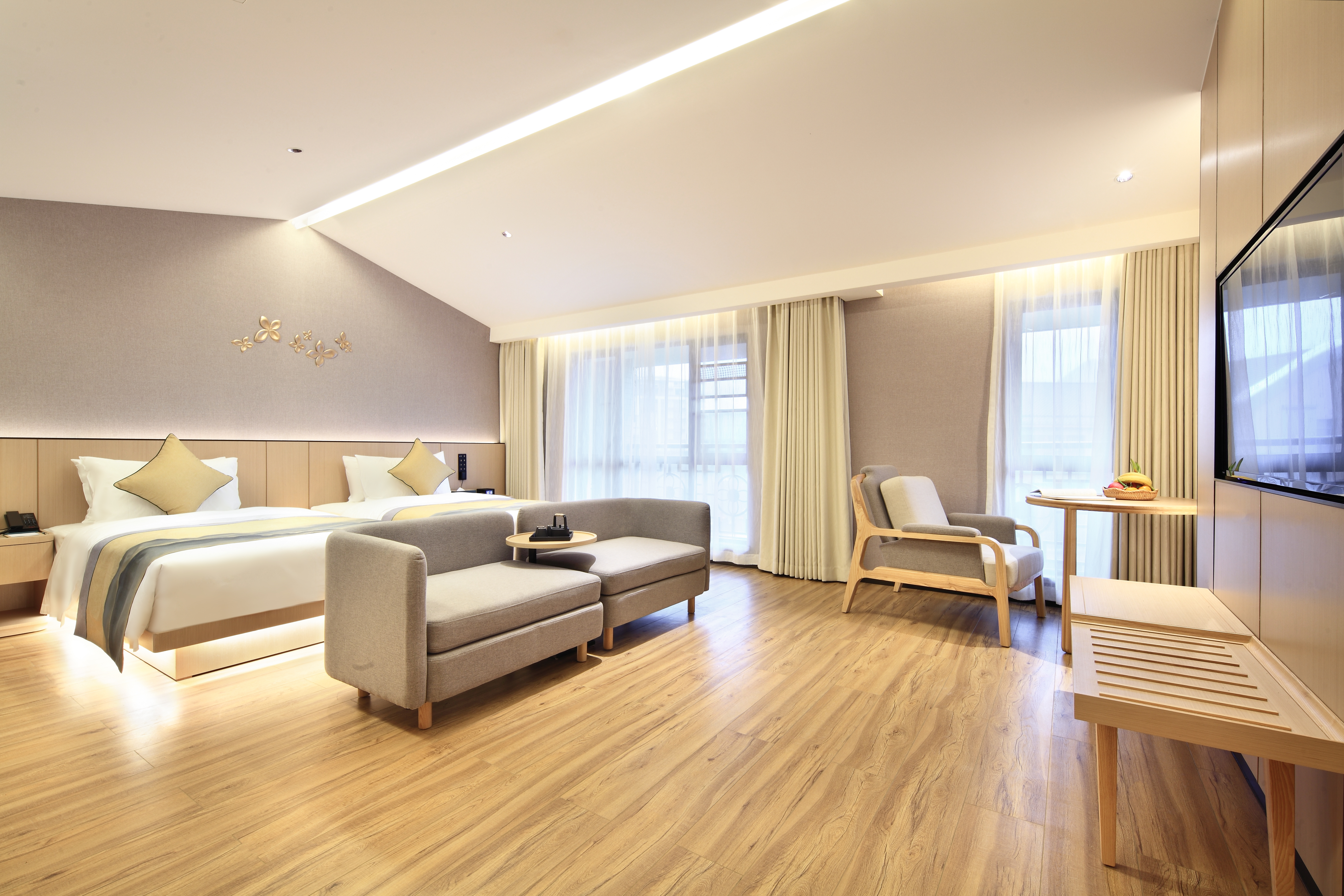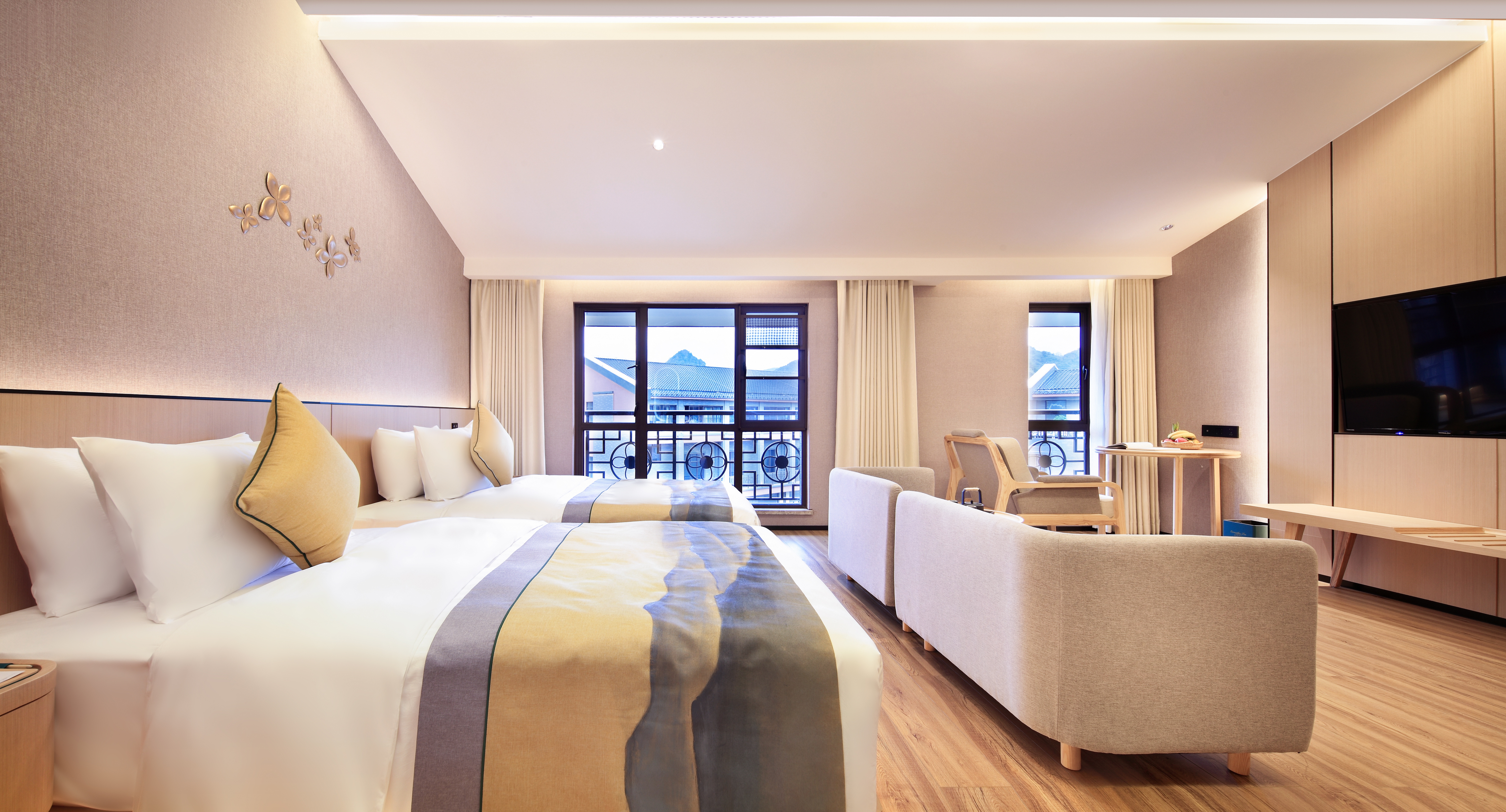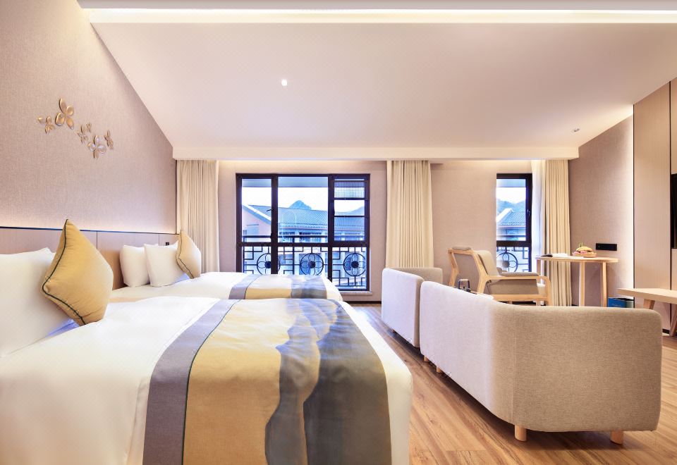 花香鸟语·静雅双床房(舒适泡浴+落地窗观景)