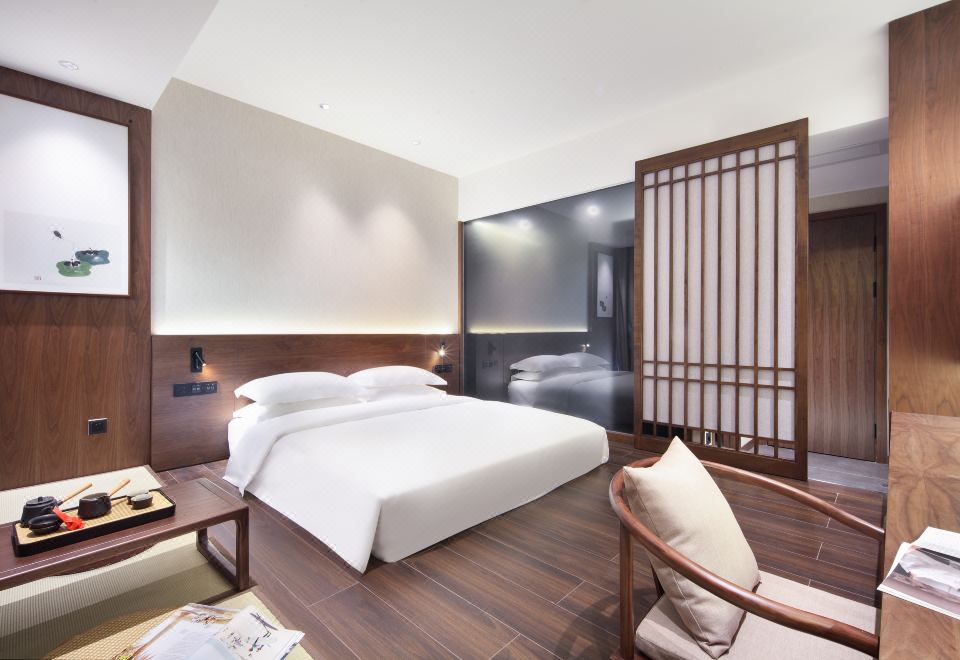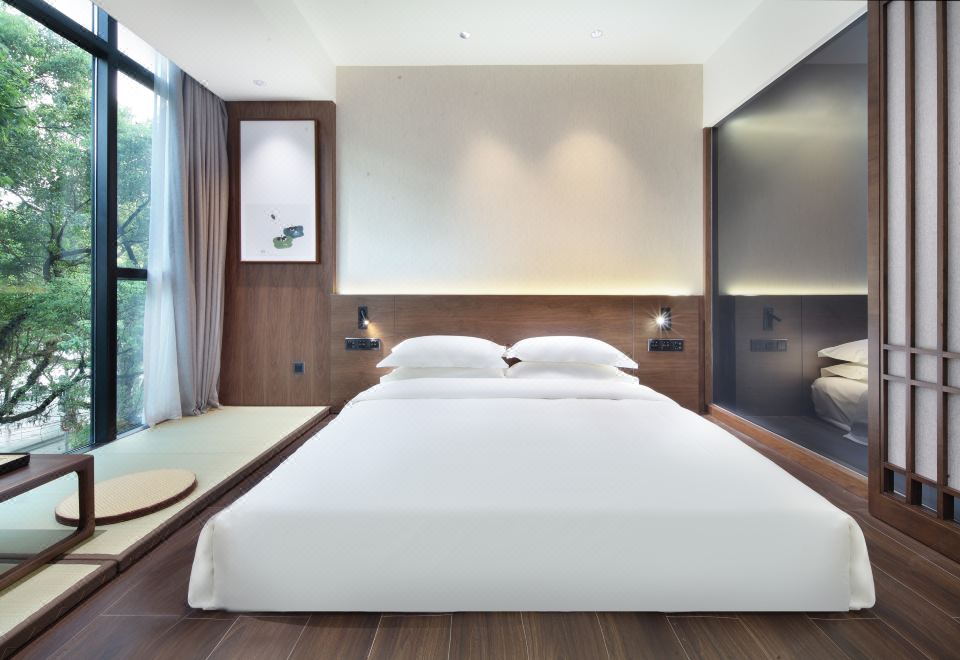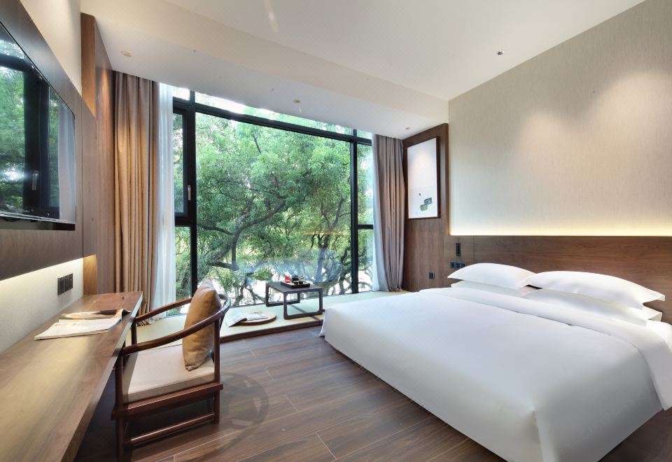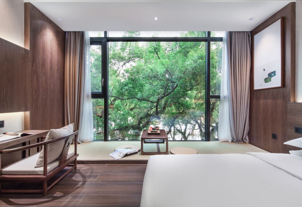江畔榕荫大床房+超大落地玻璃窗+禅意茶台