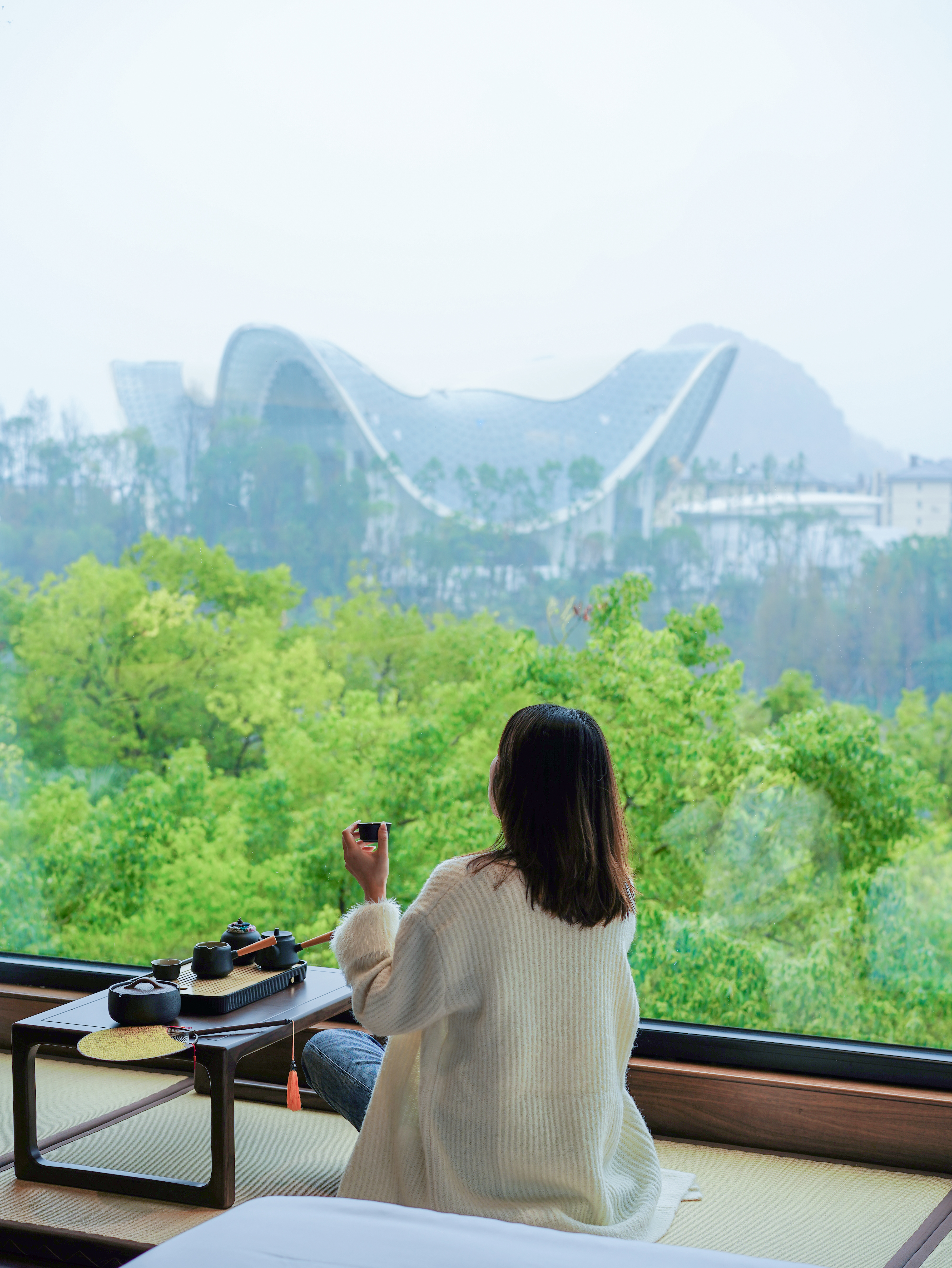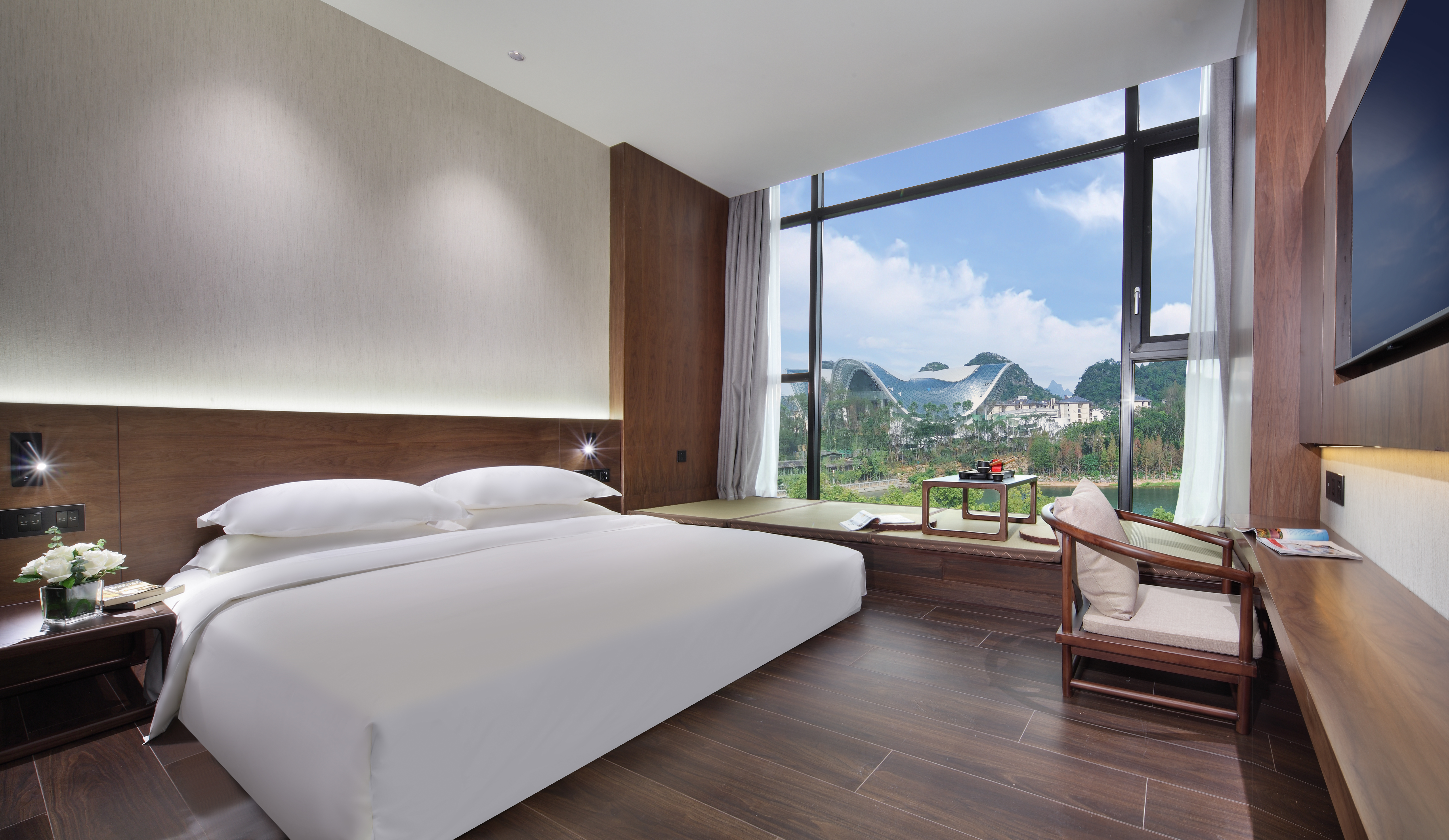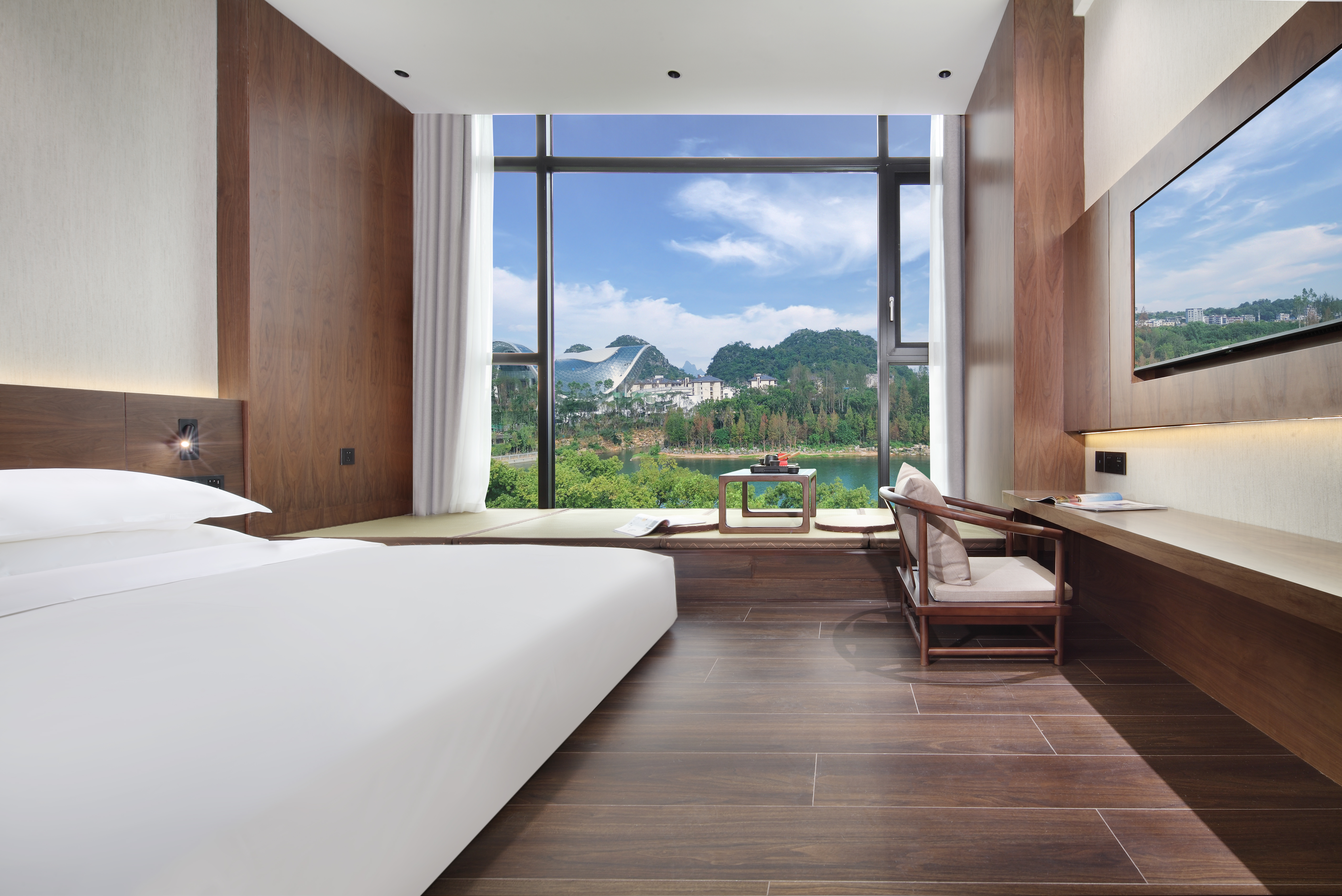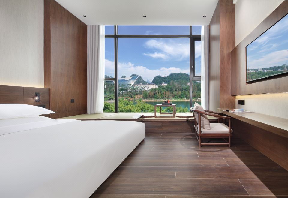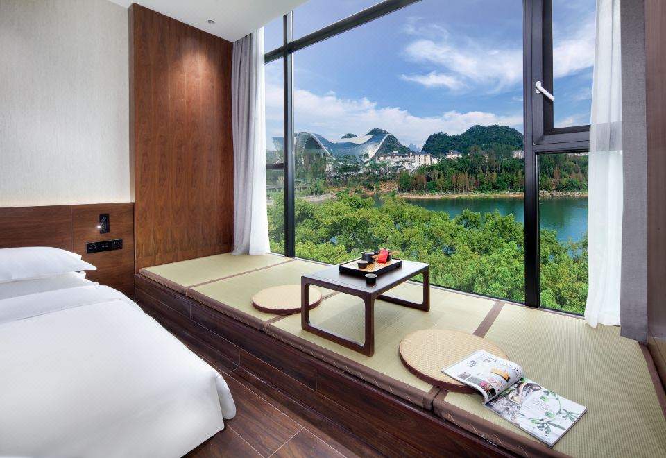 山水景观大床房+漓江风景+禅意茶台