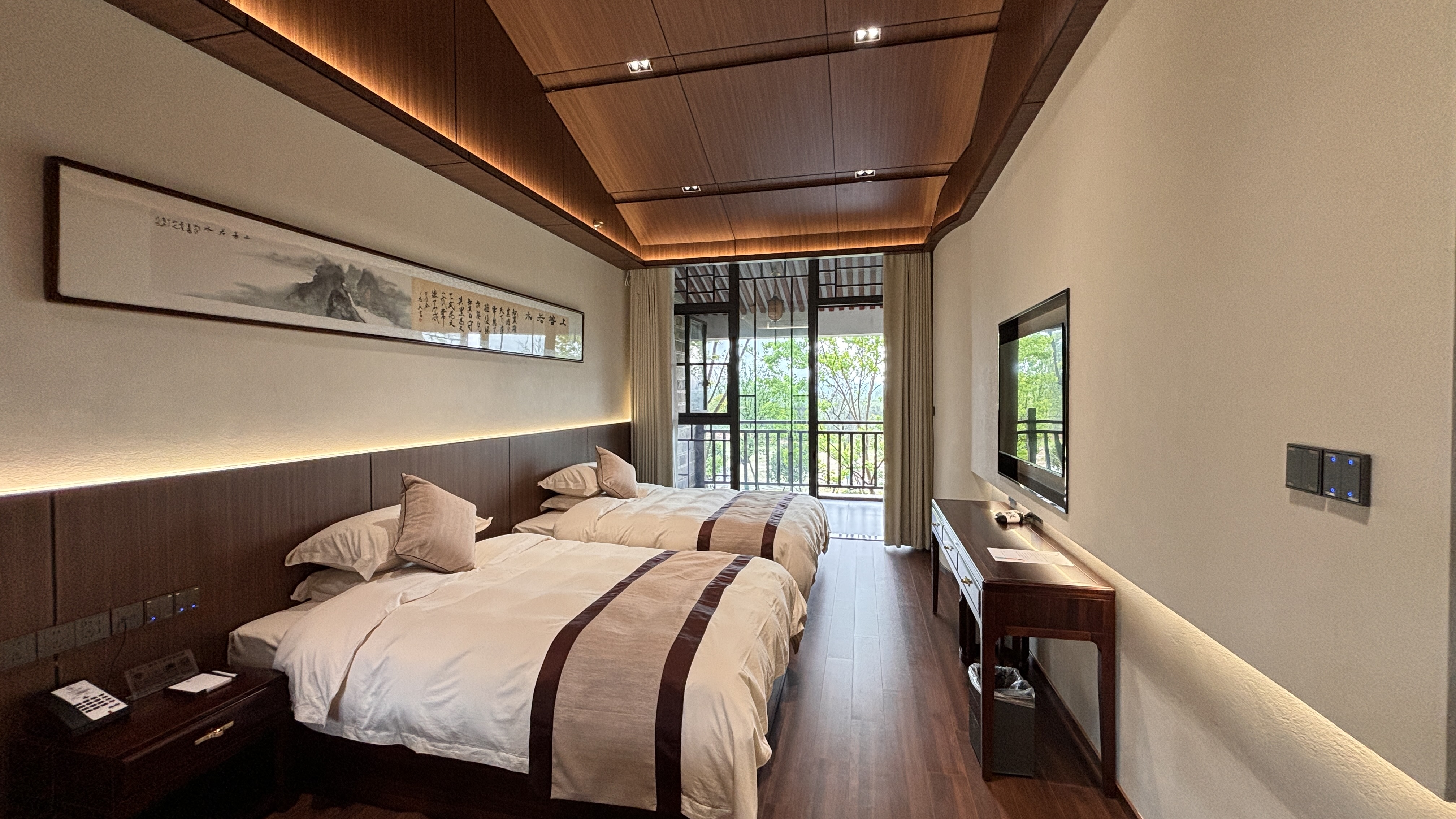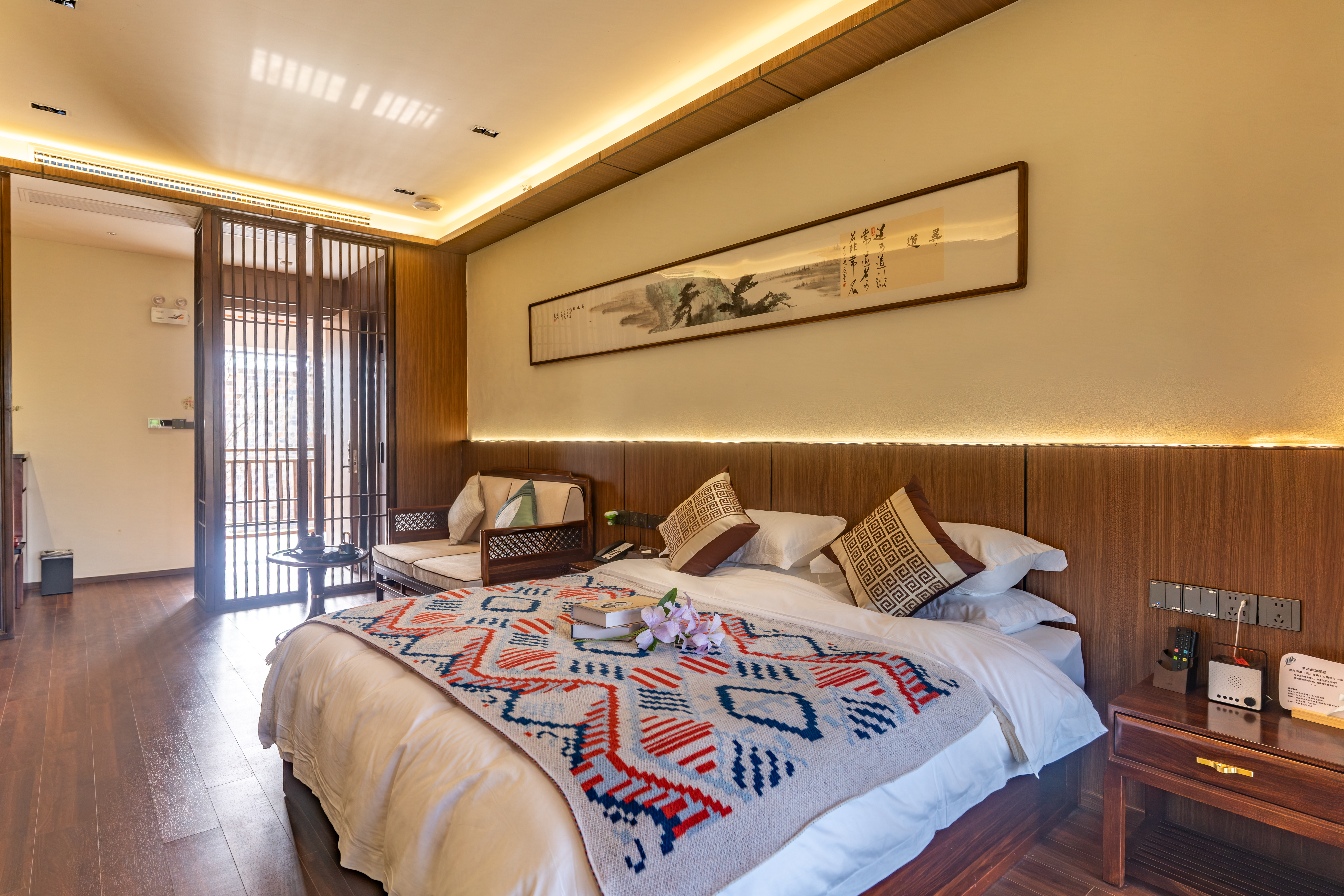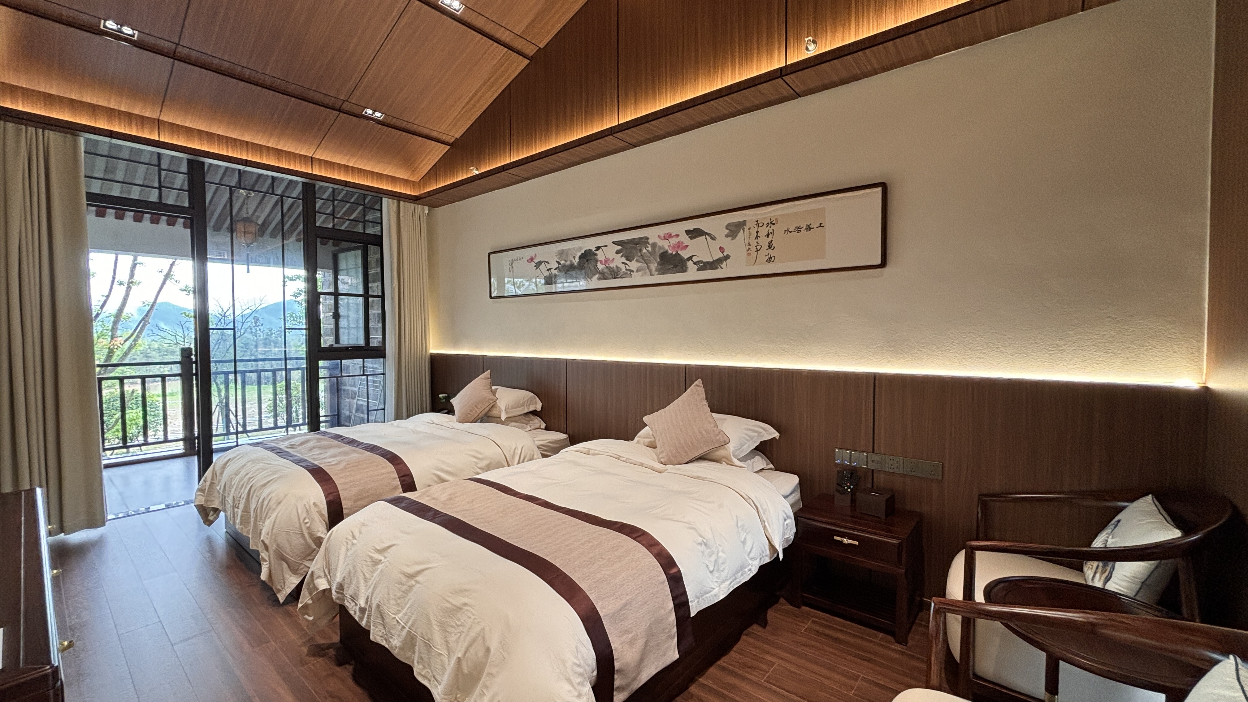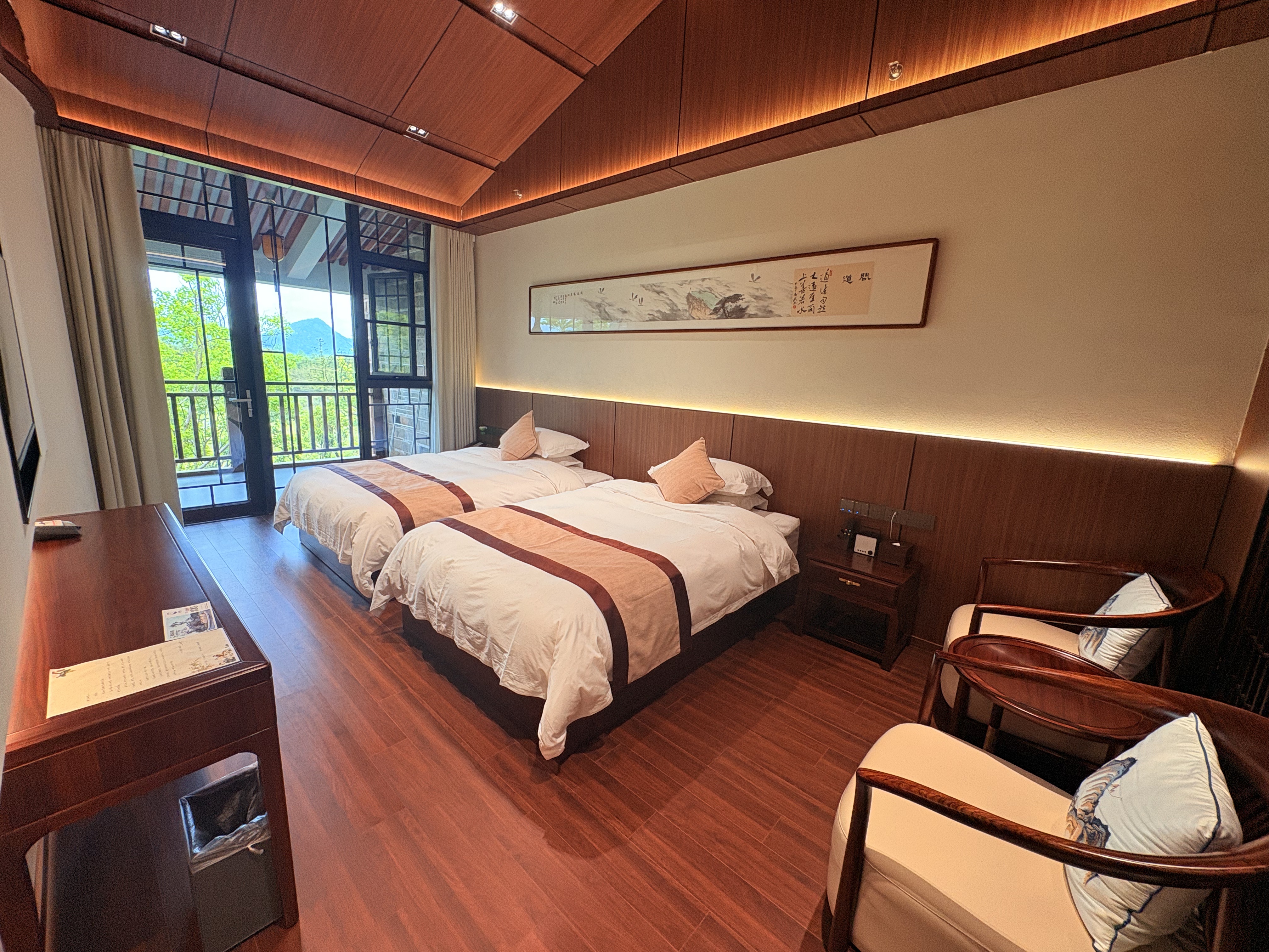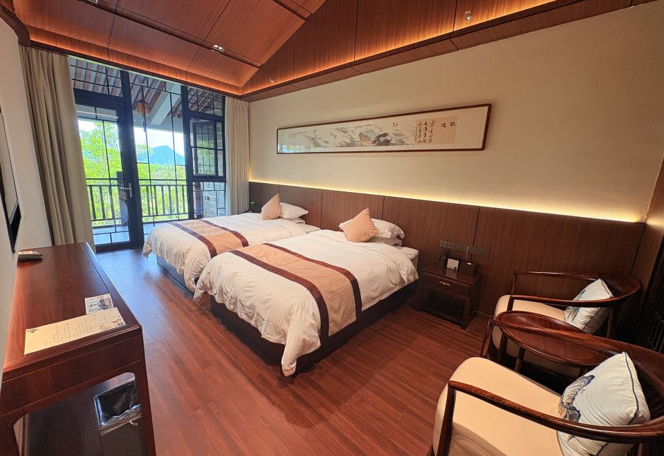坐忘居·山景阳台大床房{多种枕头·蓝牙音箱加湿器}