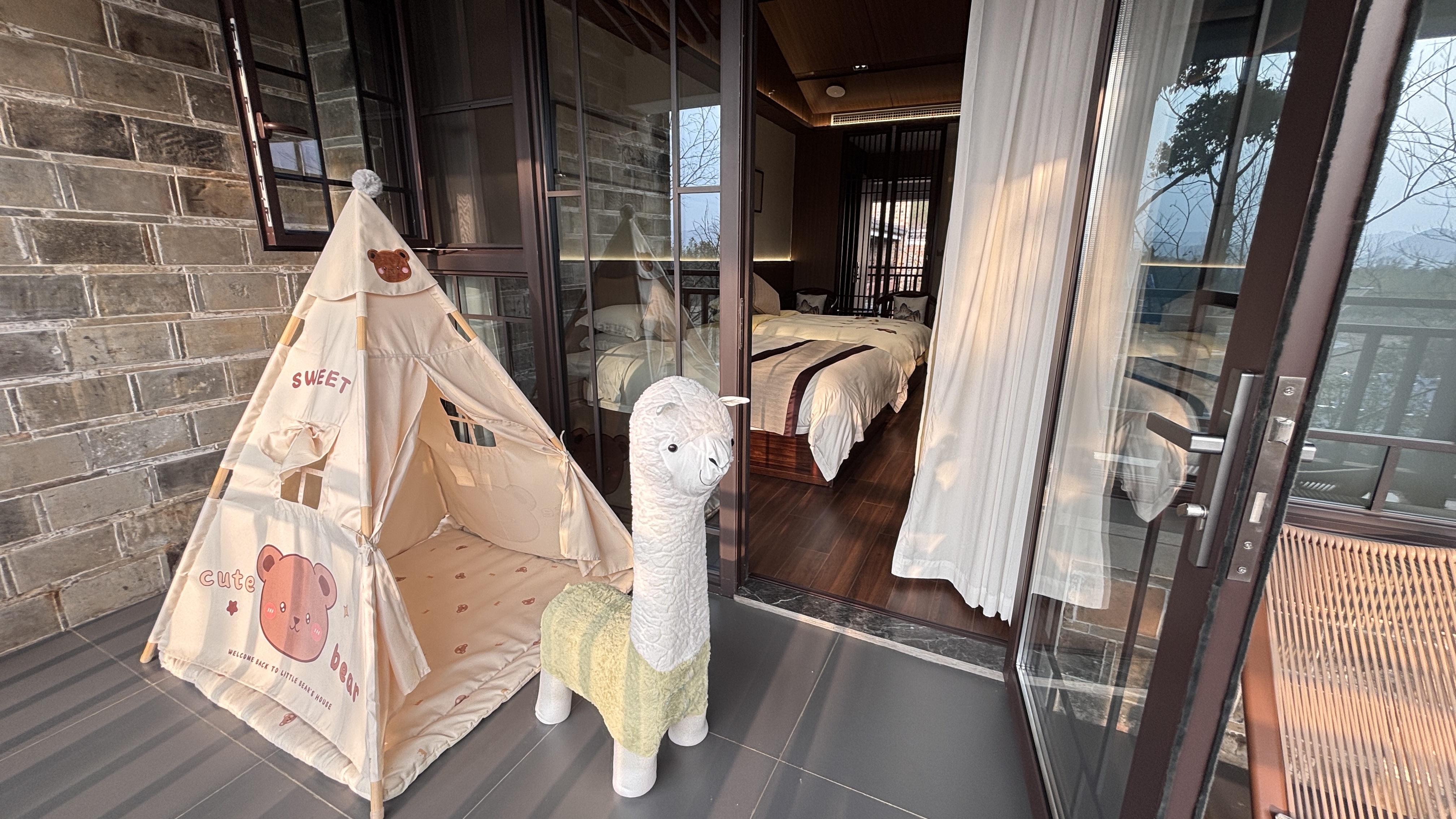 坐忘居.山景阳台亲子房{小童帐篷、羊驼凳}
