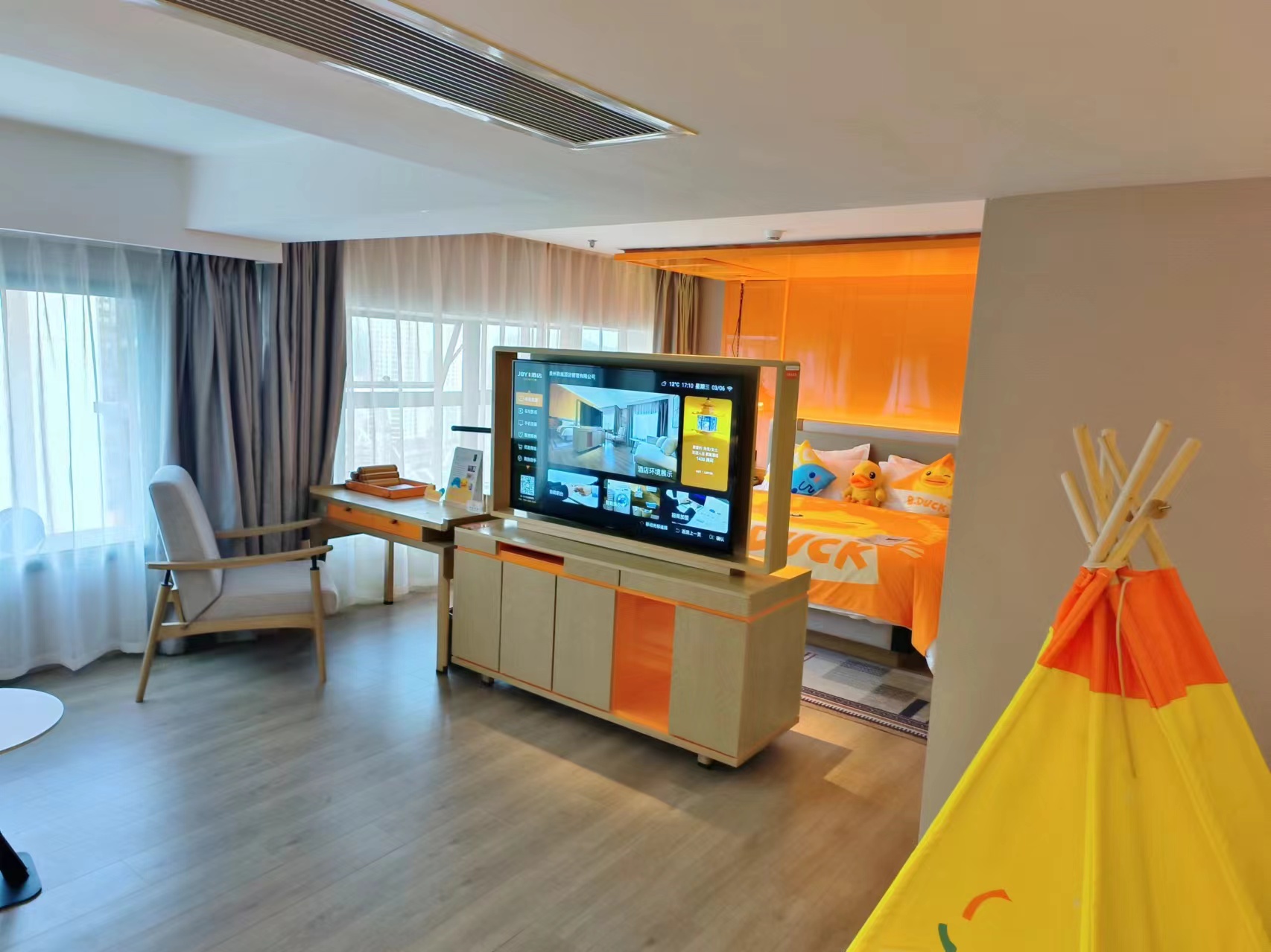 B.Duck Childlike Family Room With Xiaodu Smart Control, 55-Inch Tv, Xinjiang Cotton Linen&Breathable Luxury Duvet