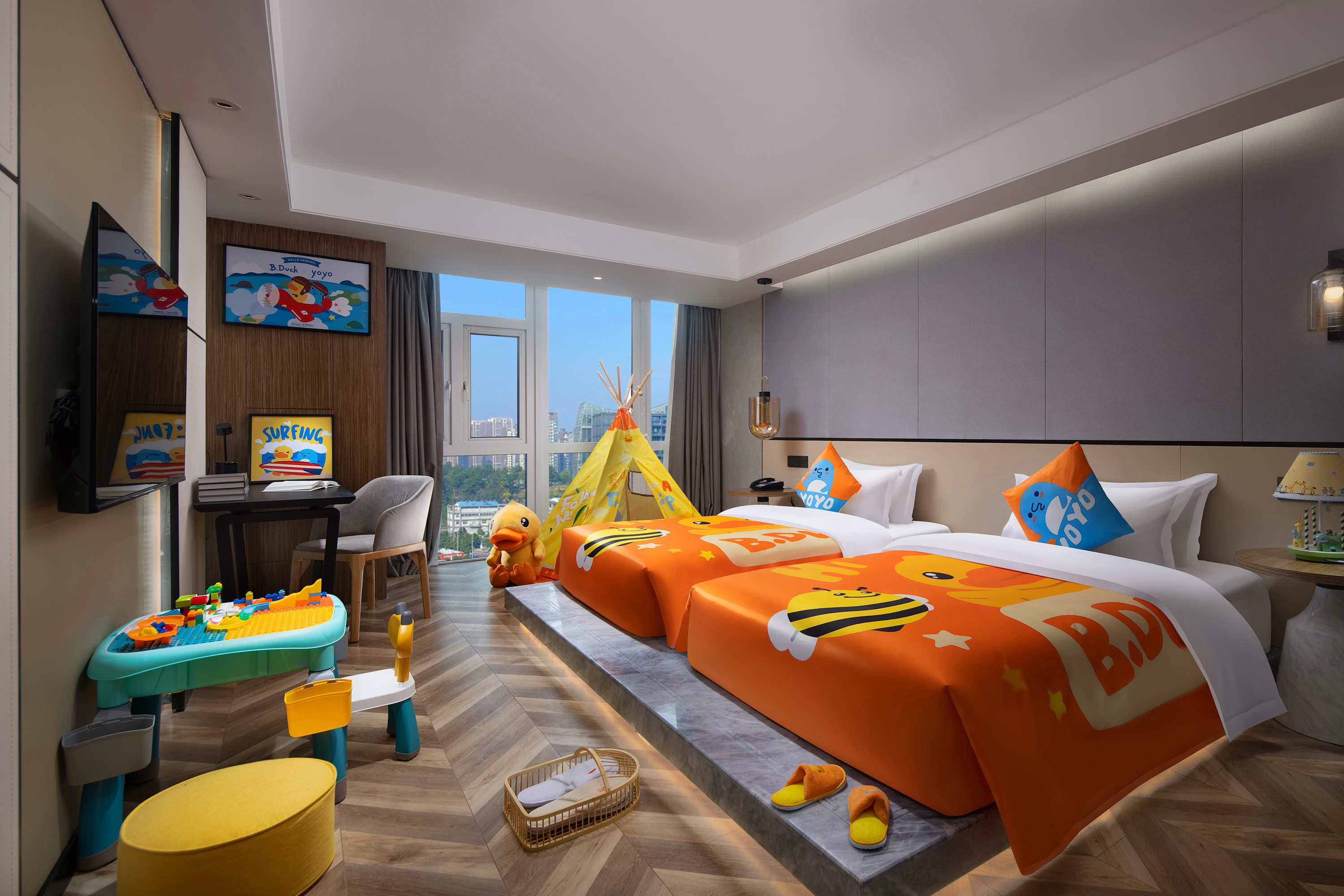 B.Duck Family Room (Full House Smart Home System + Family Themed Ip + Pressure Relief Mattress + 180 ° City View + Fridge)
