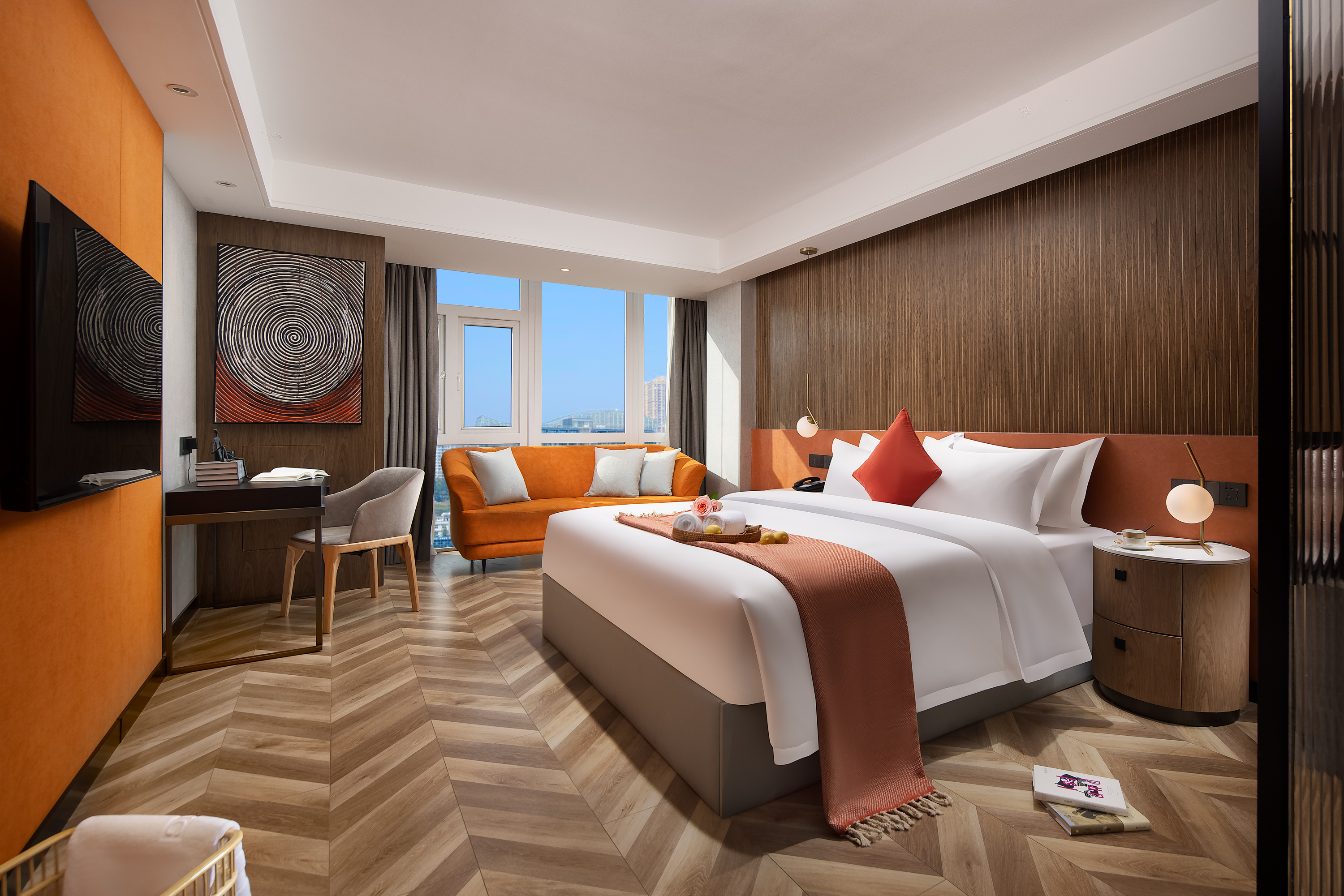 Orange Zest Double Bed Room (Full House Smart Home System + Pressure Relief Mattress + 180 ° City View)