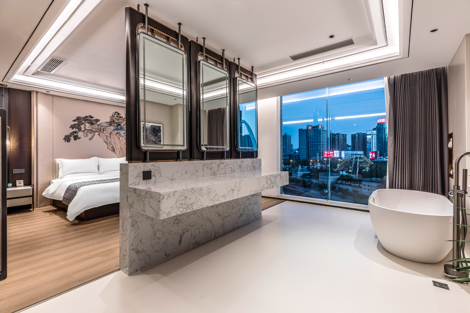 槿穹之眼-河景西式套房(智能客控+浴缸+绝美全景)