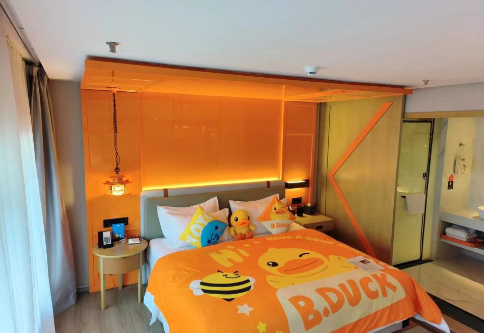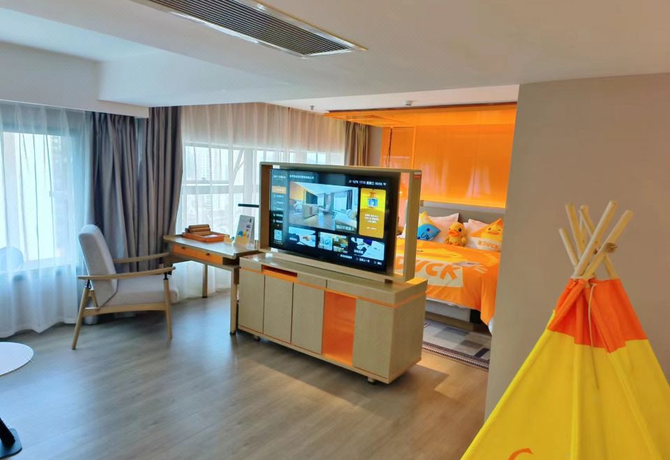 B.Duck Childlike Family Room With Xiaodu Smart Control, 55-Inch Tv, Xinjiang Cotton Linen&Breathable Luxury Duvet