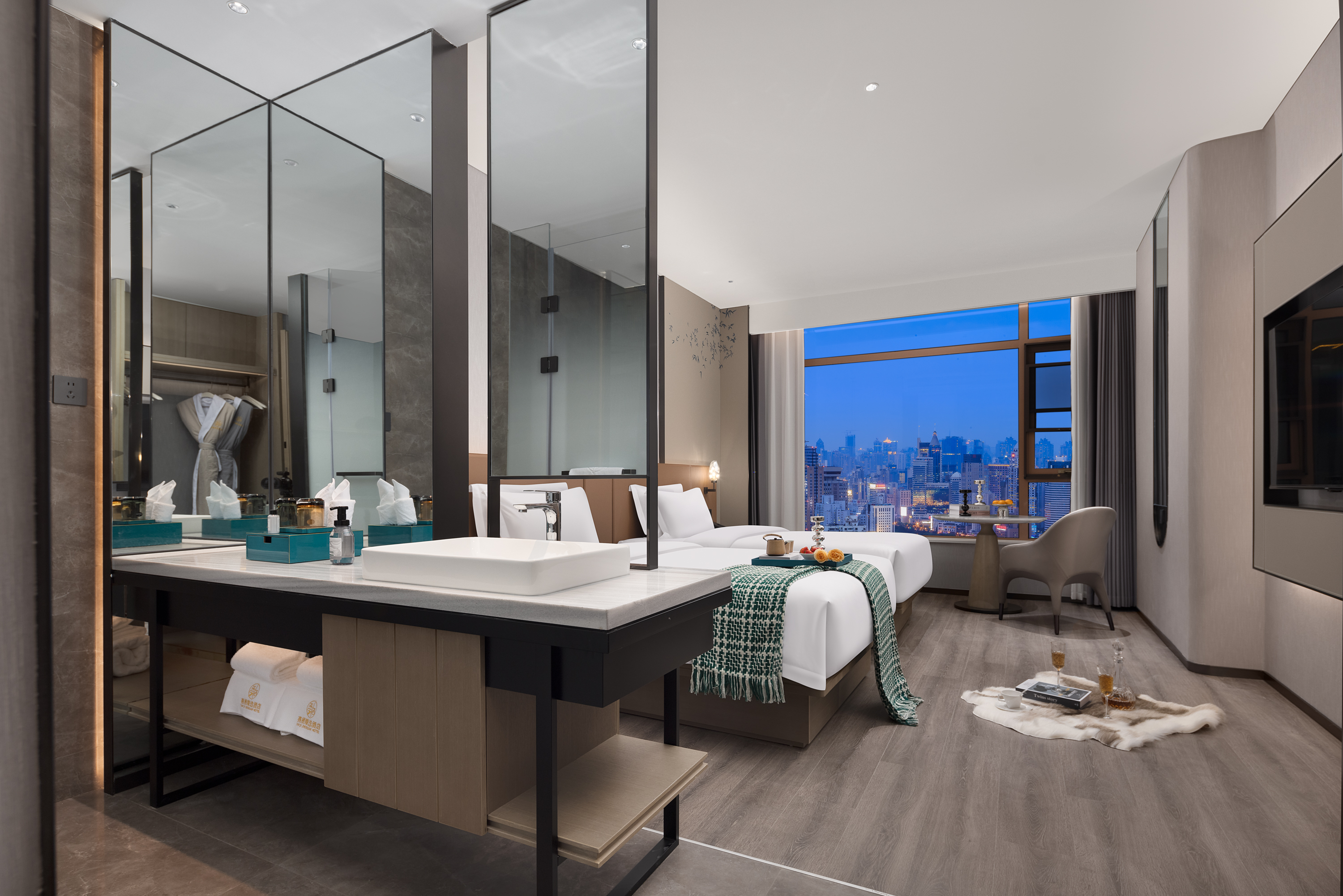 悠享双床房|智能客控+城市夜景+乾湿分离+亲肤浴袍