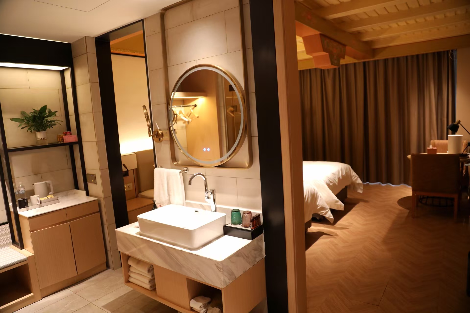 智能体验大床房(一次性马桶坐垫+藏风装饰+加湿器)