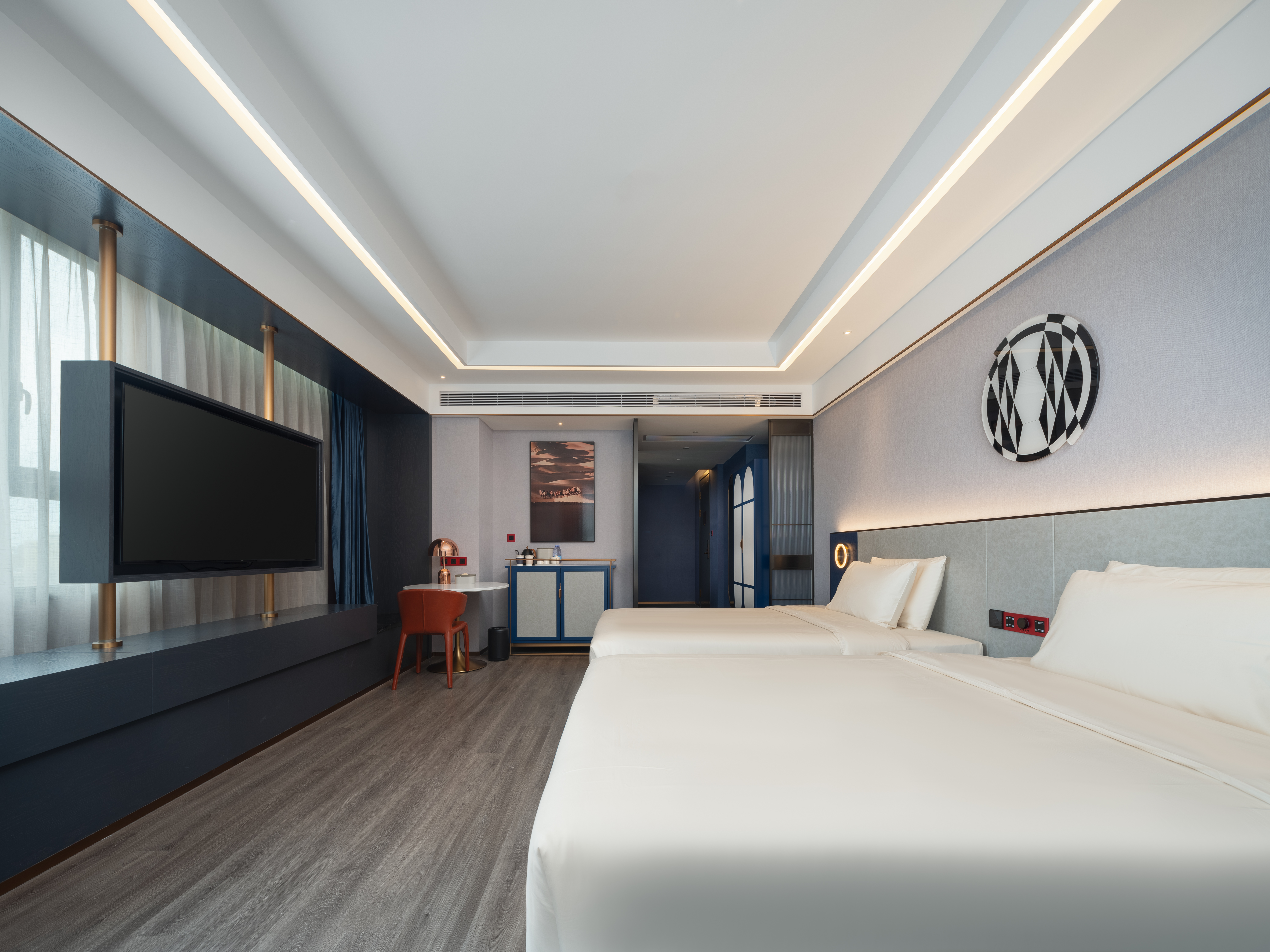 Several Wooden Twin Rooms(Deep Sleep Memory Pillow➕minibar➕ 55 Inch Projection Screen TV)