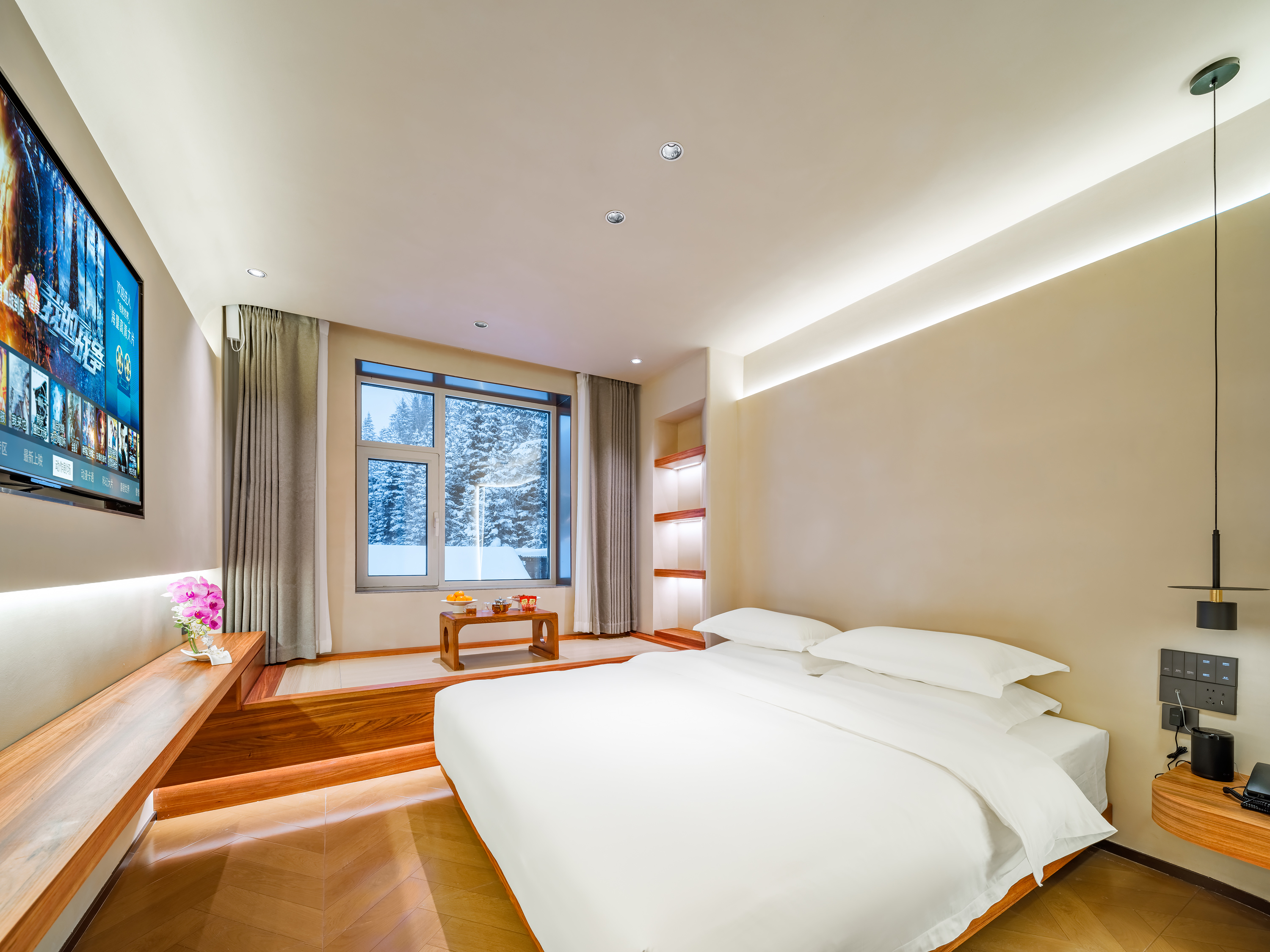 銘雪大床房(小度智能管家+温潤加濕器+智能馬桶+蓬鬆羽絲絨被+舒適護頸枕)