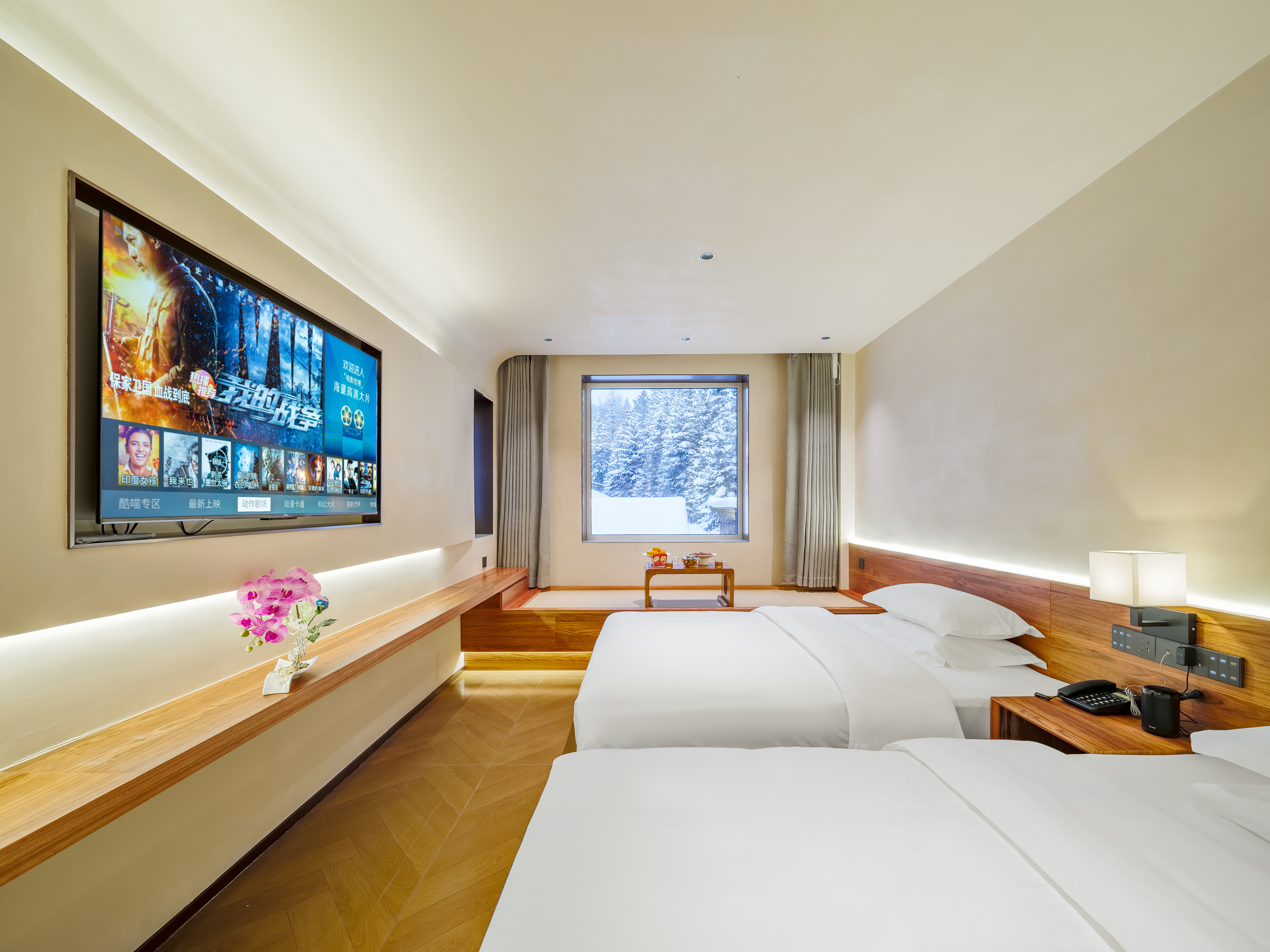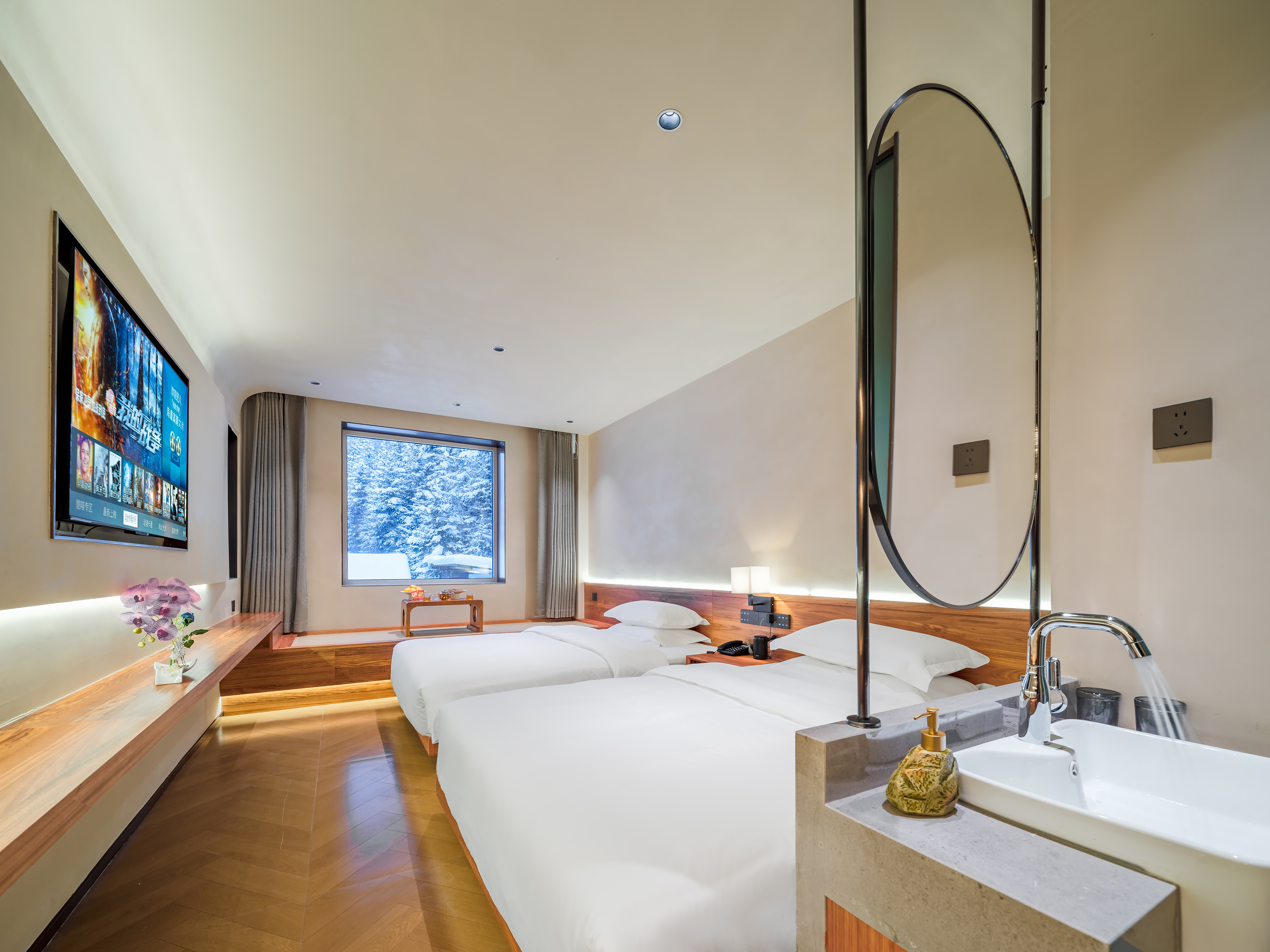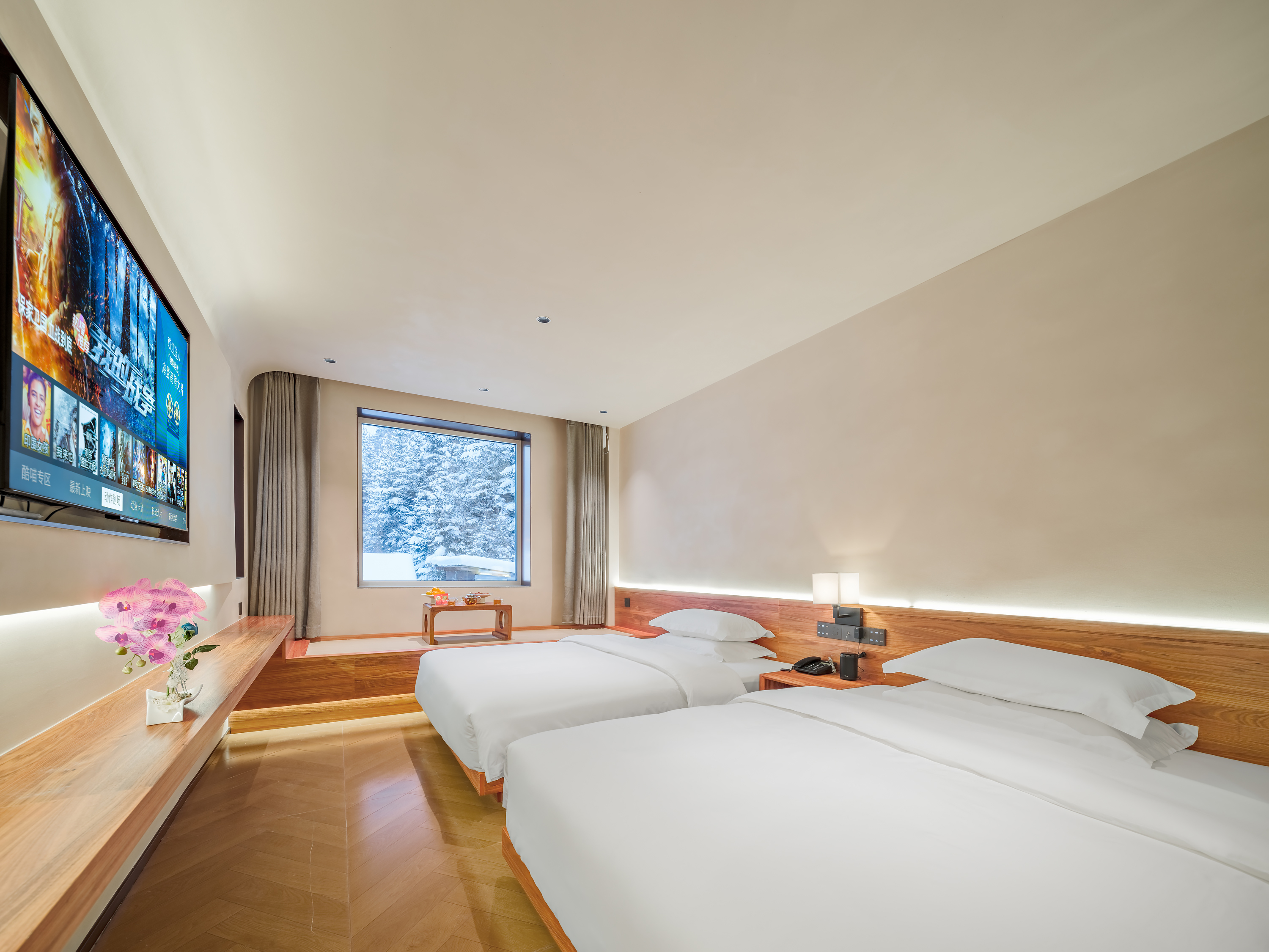 醉雪雙床房(小度智能管家+温潤加濕器+智能馬桶+蓬鬆羽絲絨被+舒適護頸枕)