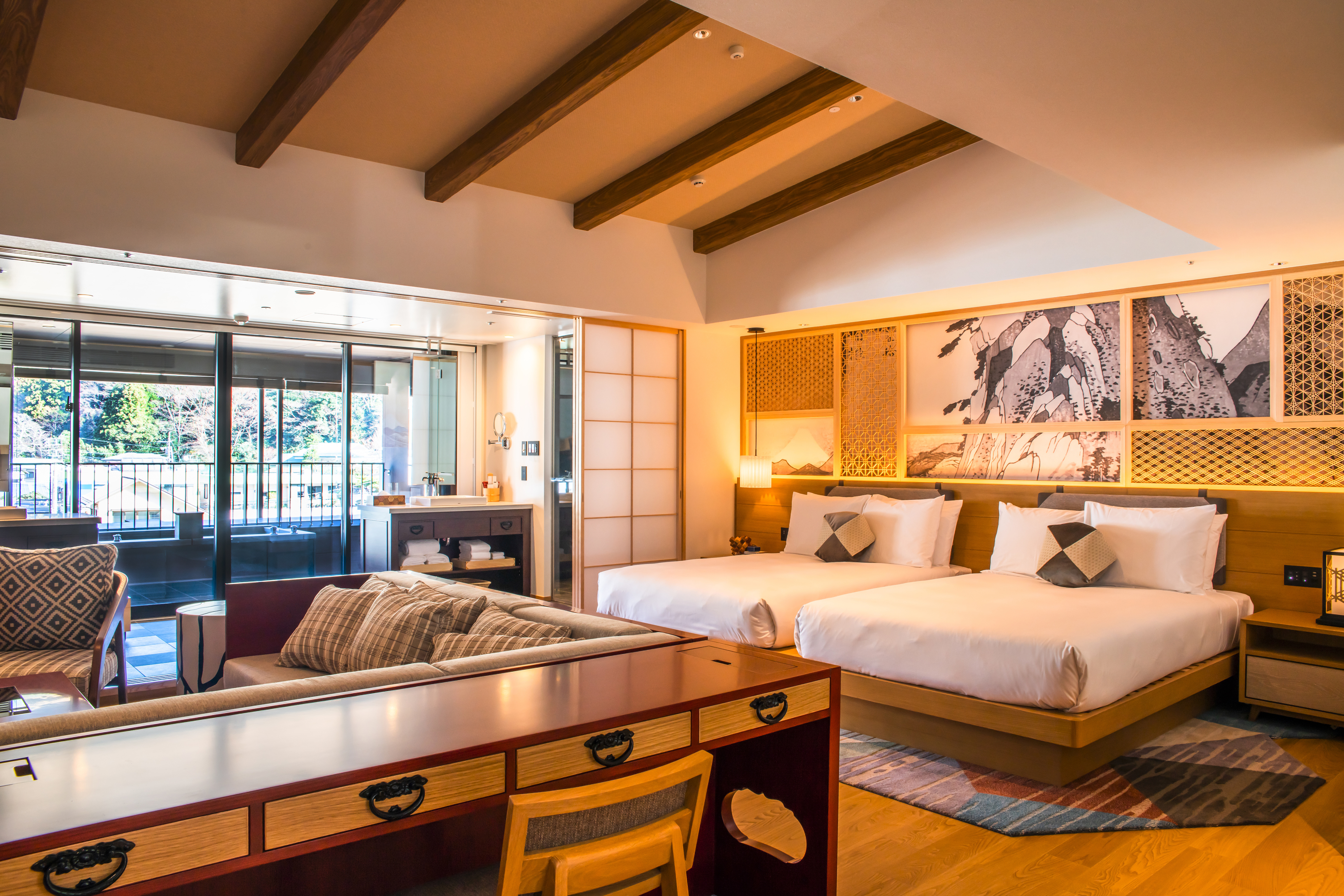 2 张单人床 河景套房(带私人温泉)