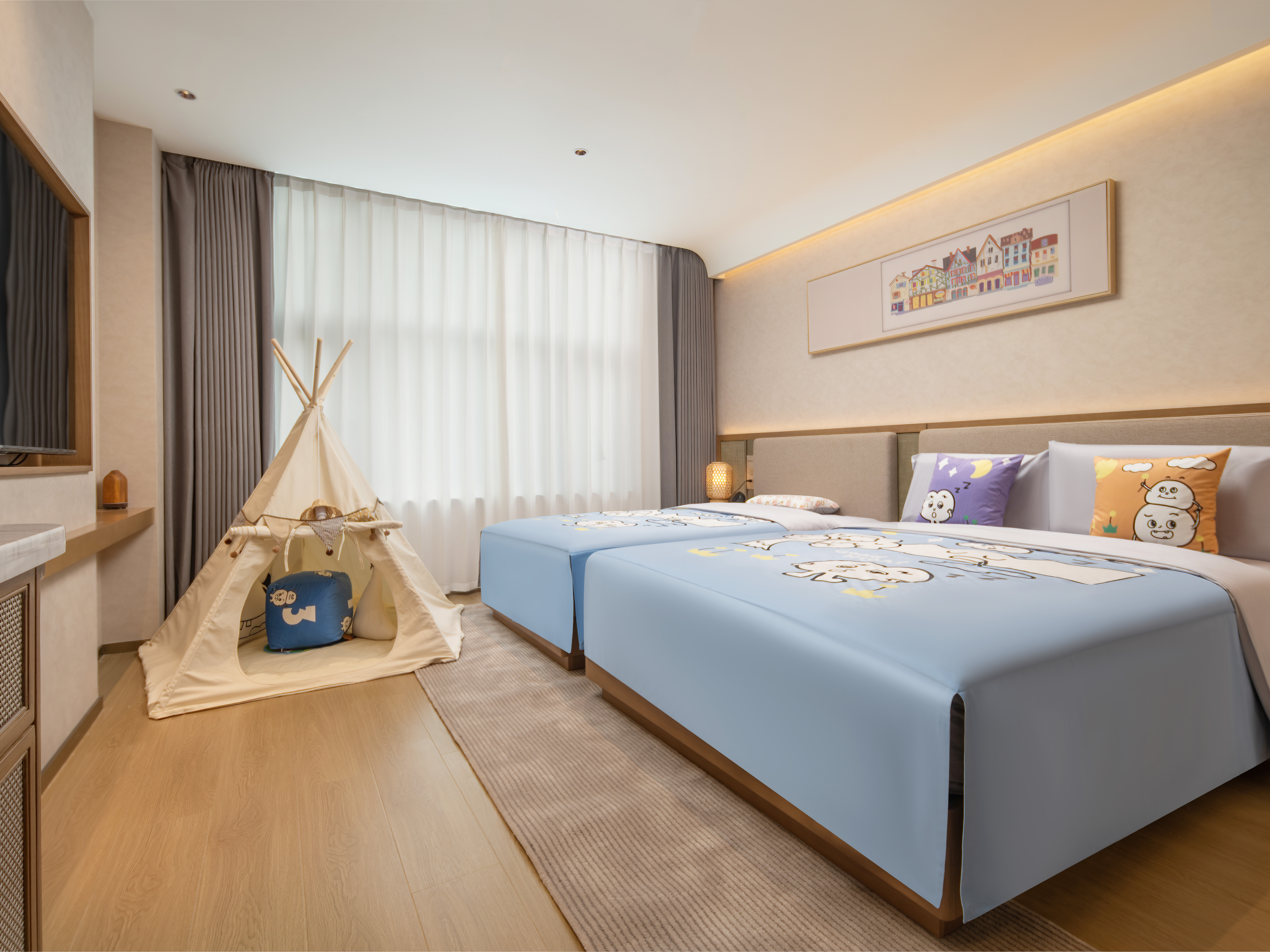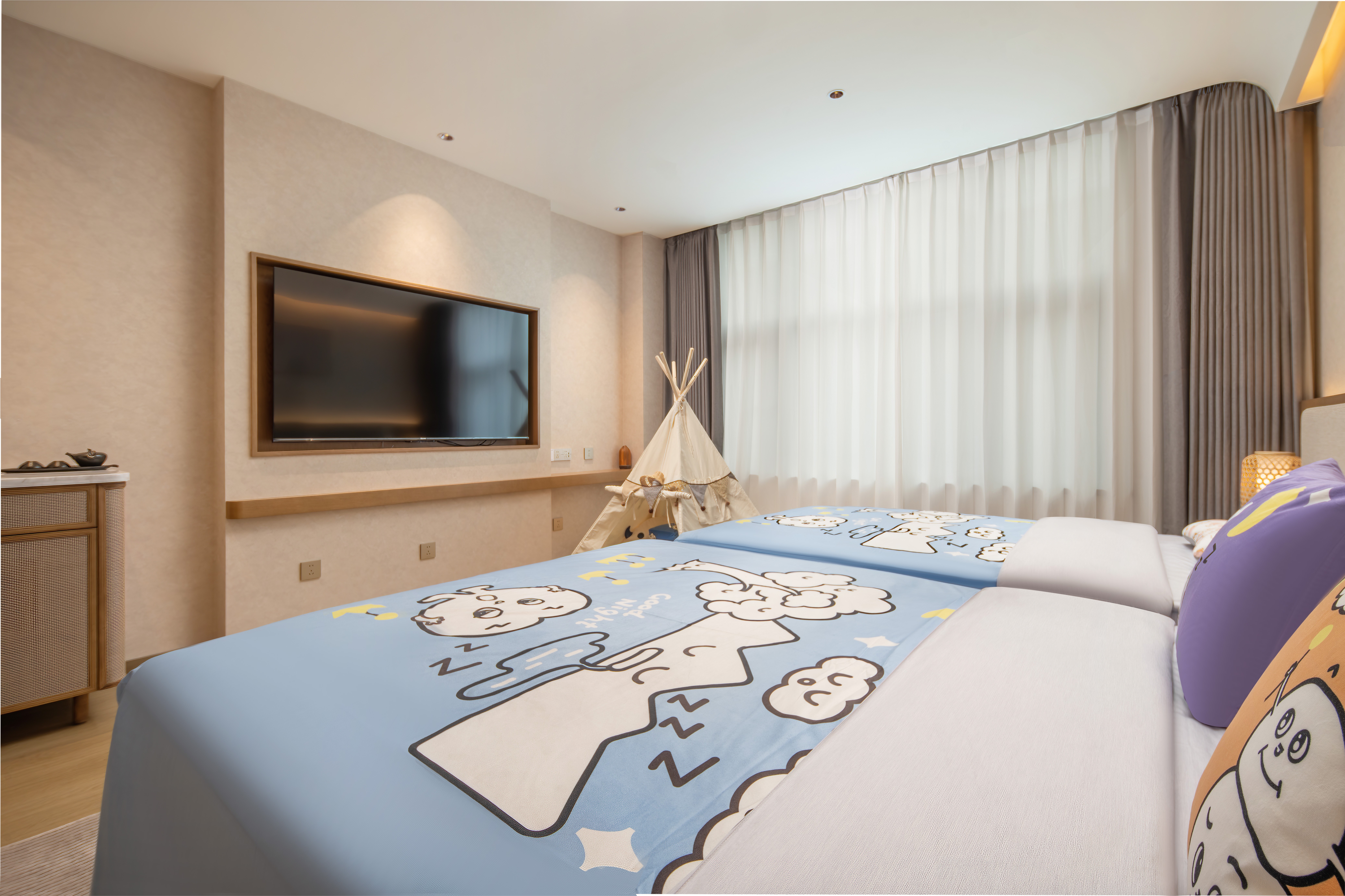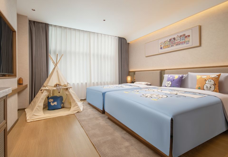 欢住·乐玩星球亲子主题房「小童洗护+丝涟床垫」