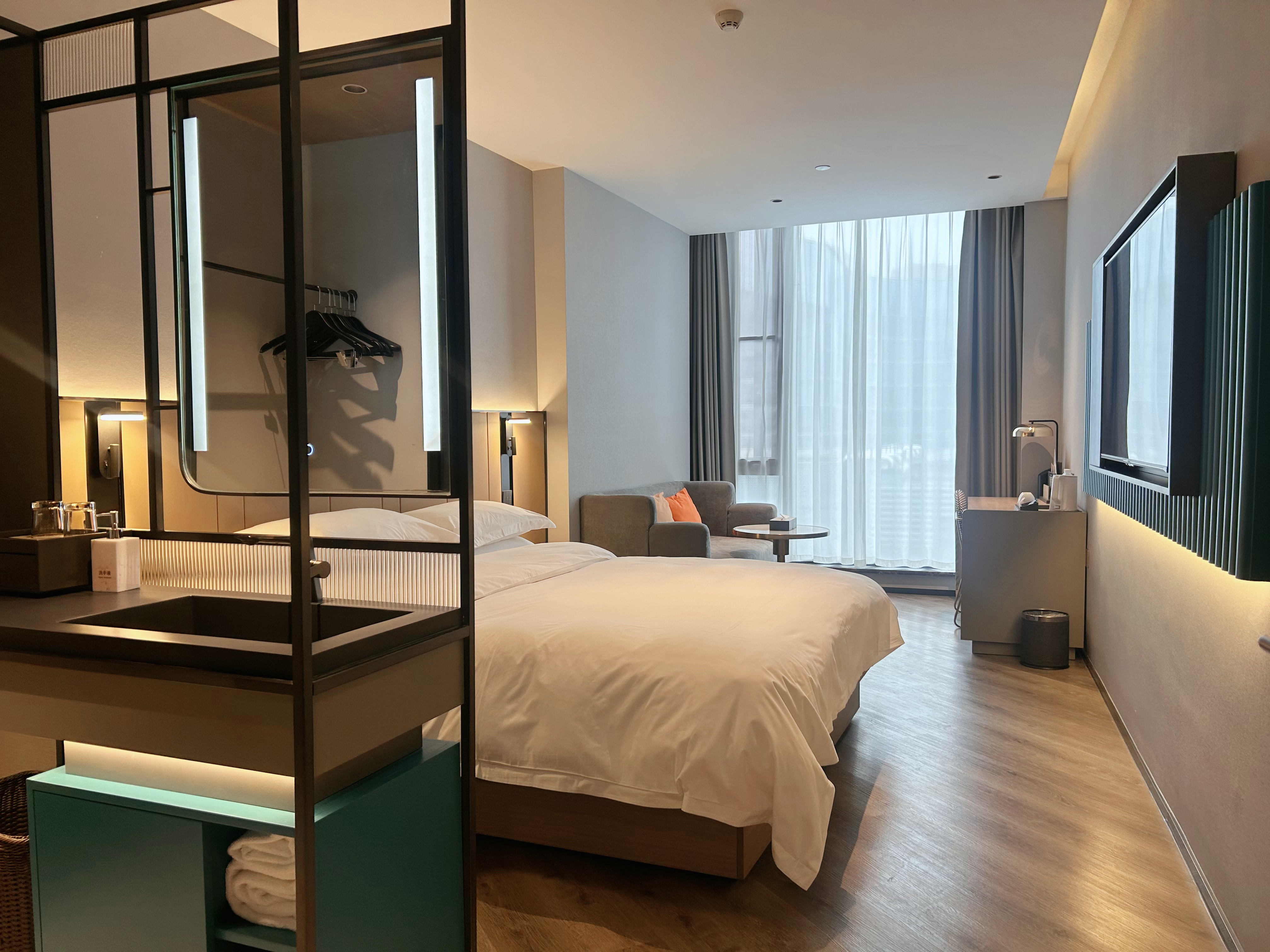 豪华家庭间(55寸私密投屏电视+小冰箱+落地窗)