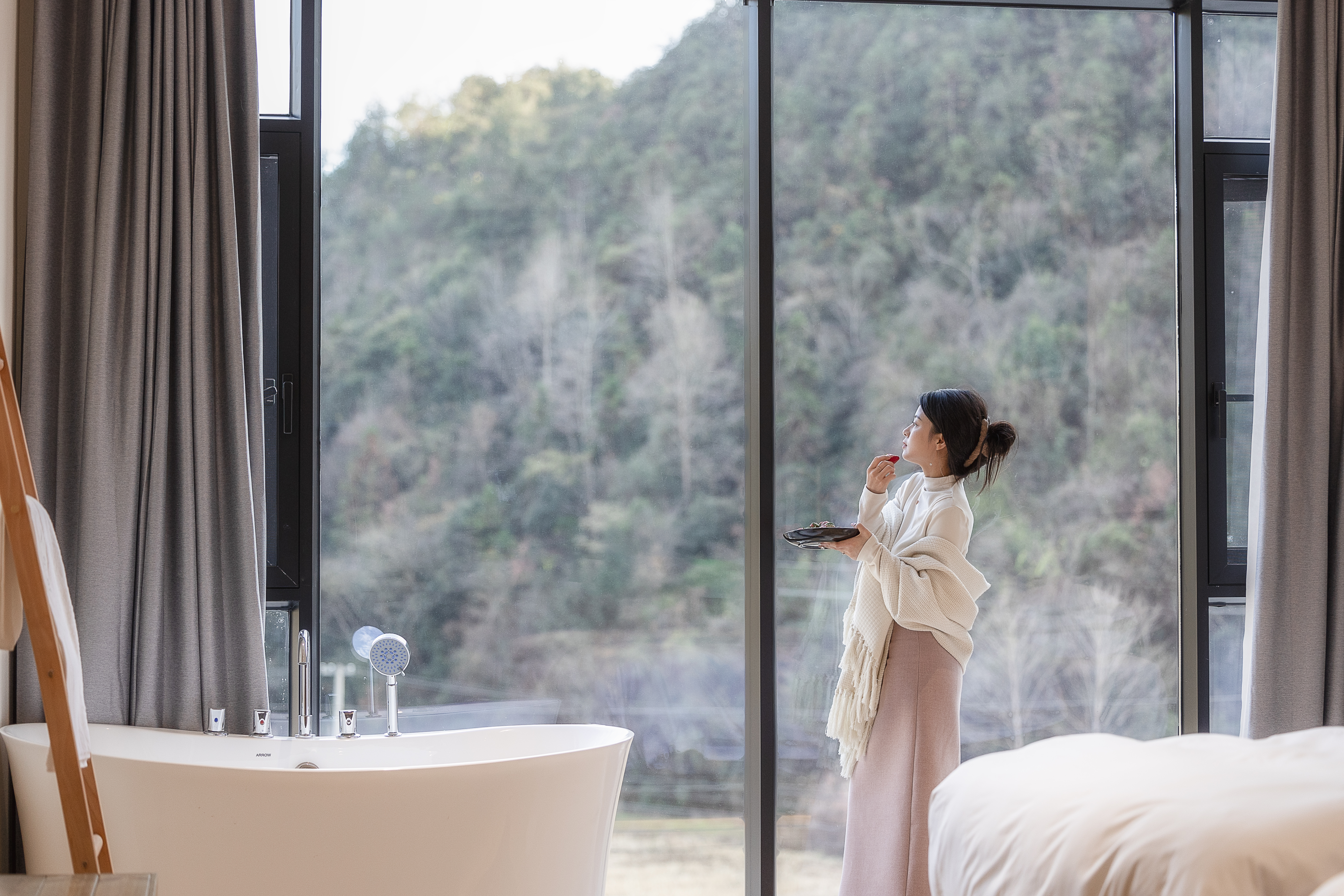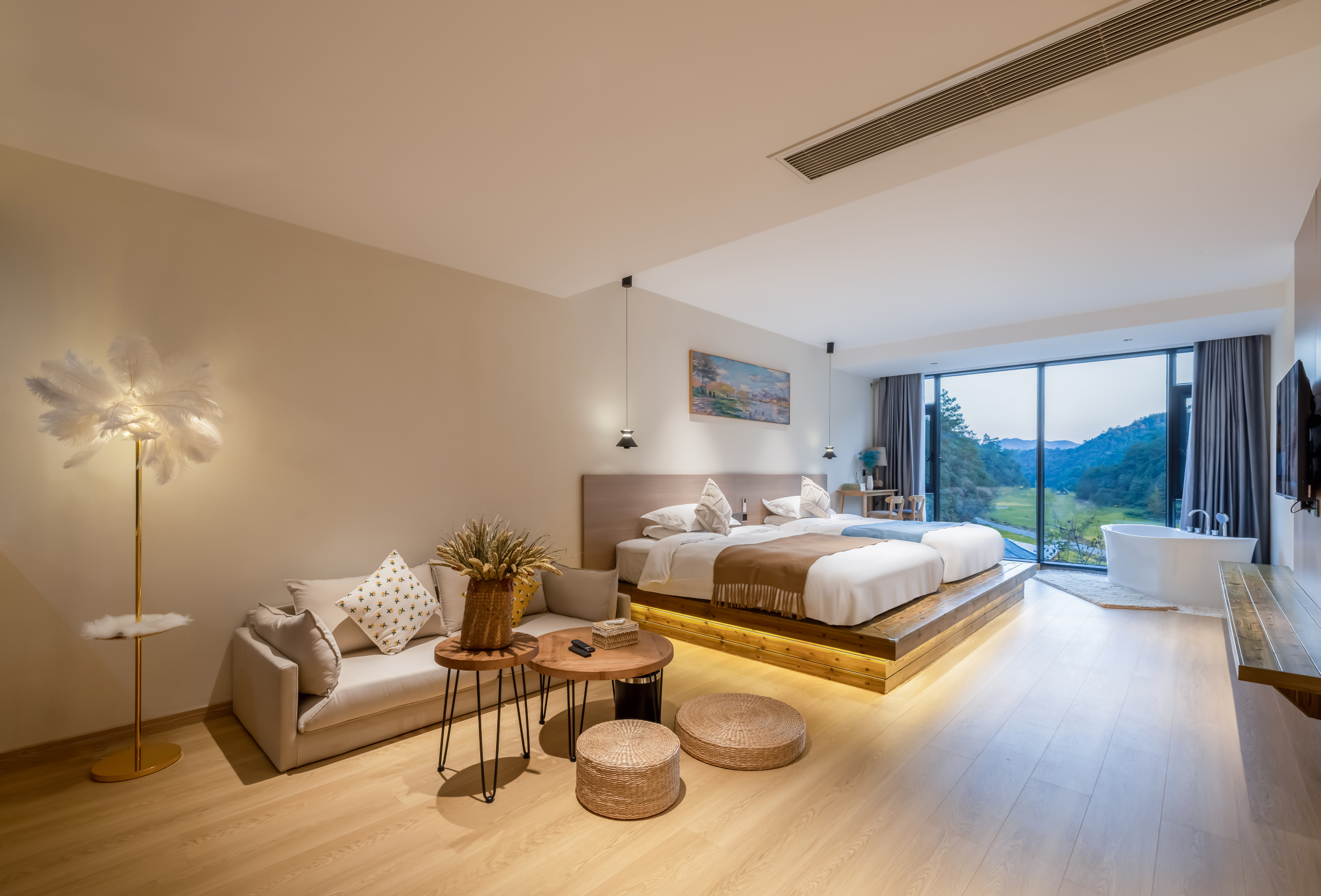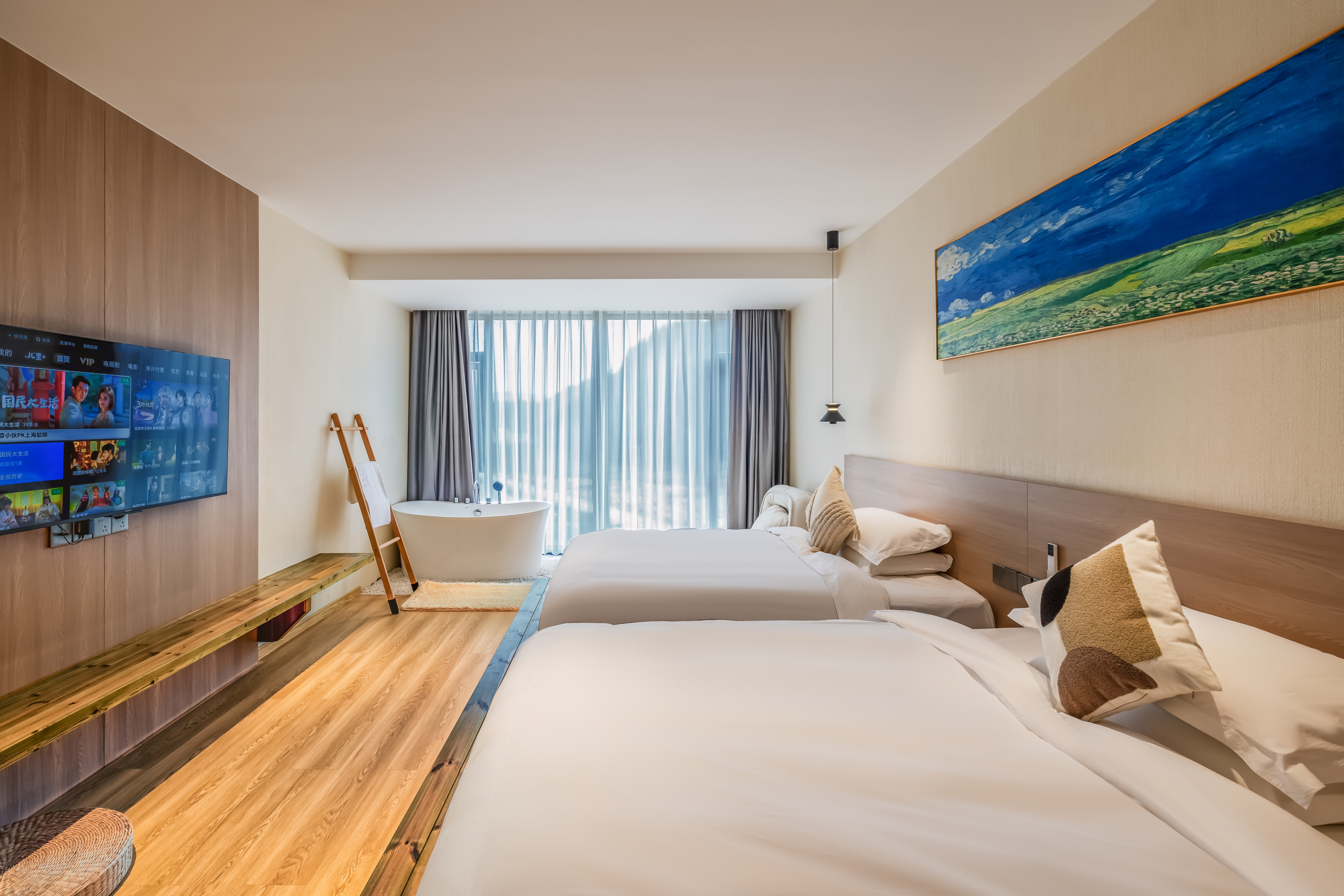寒酥-山景木桶浴缸双床房【零压乳胶床垫+私享躺椅】