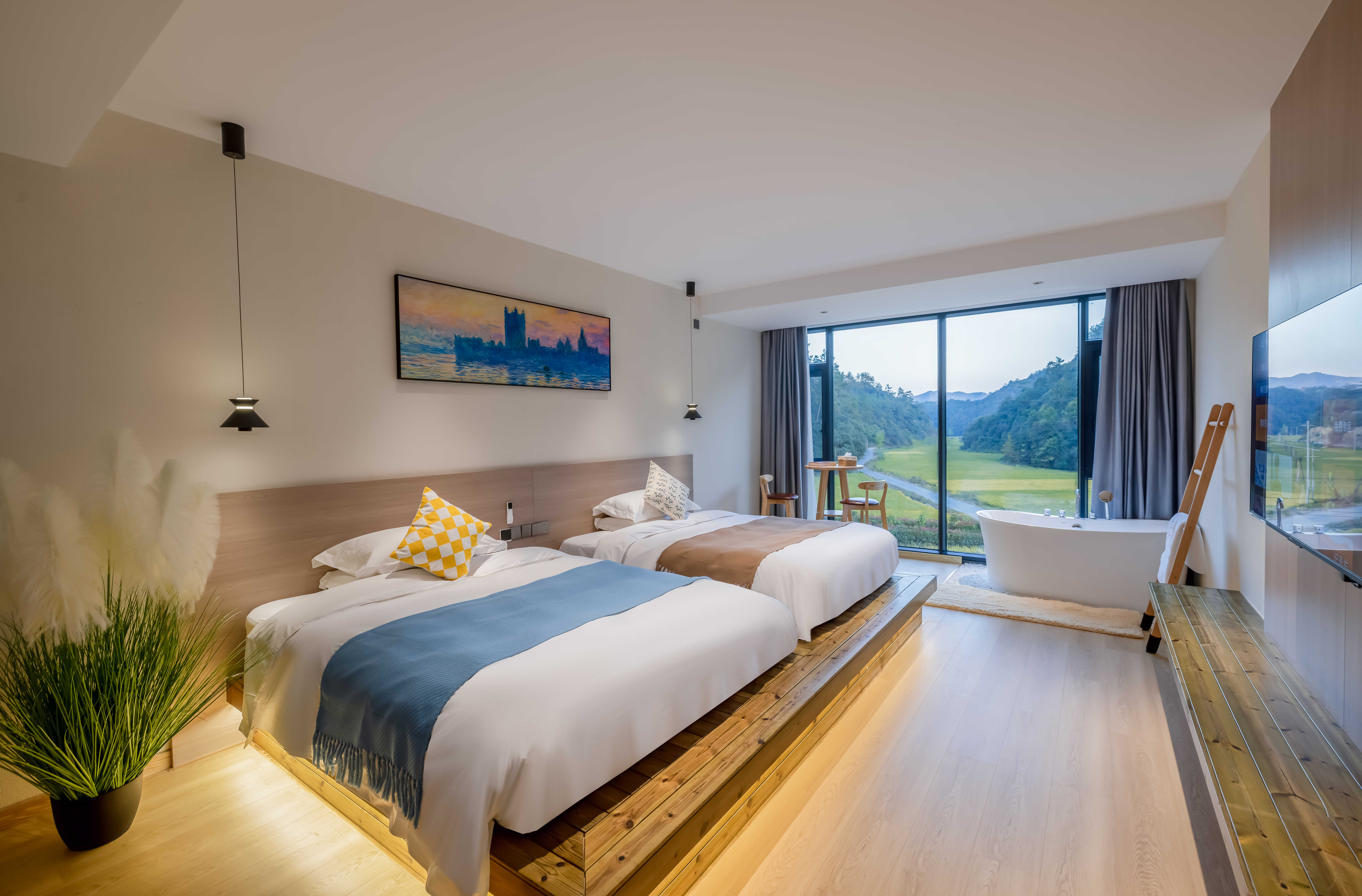 灵泽-山景双床房【高清影视+零压乳胶床垫+智能马桶】