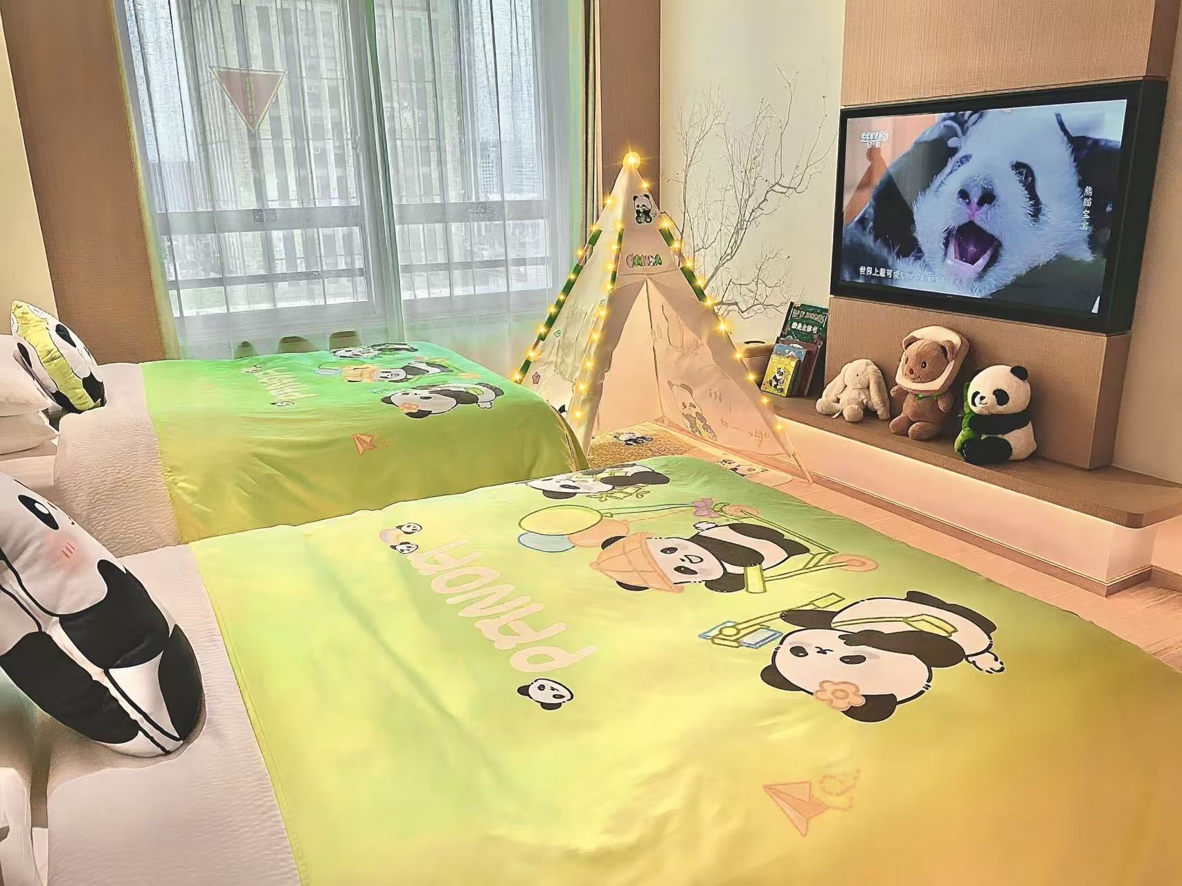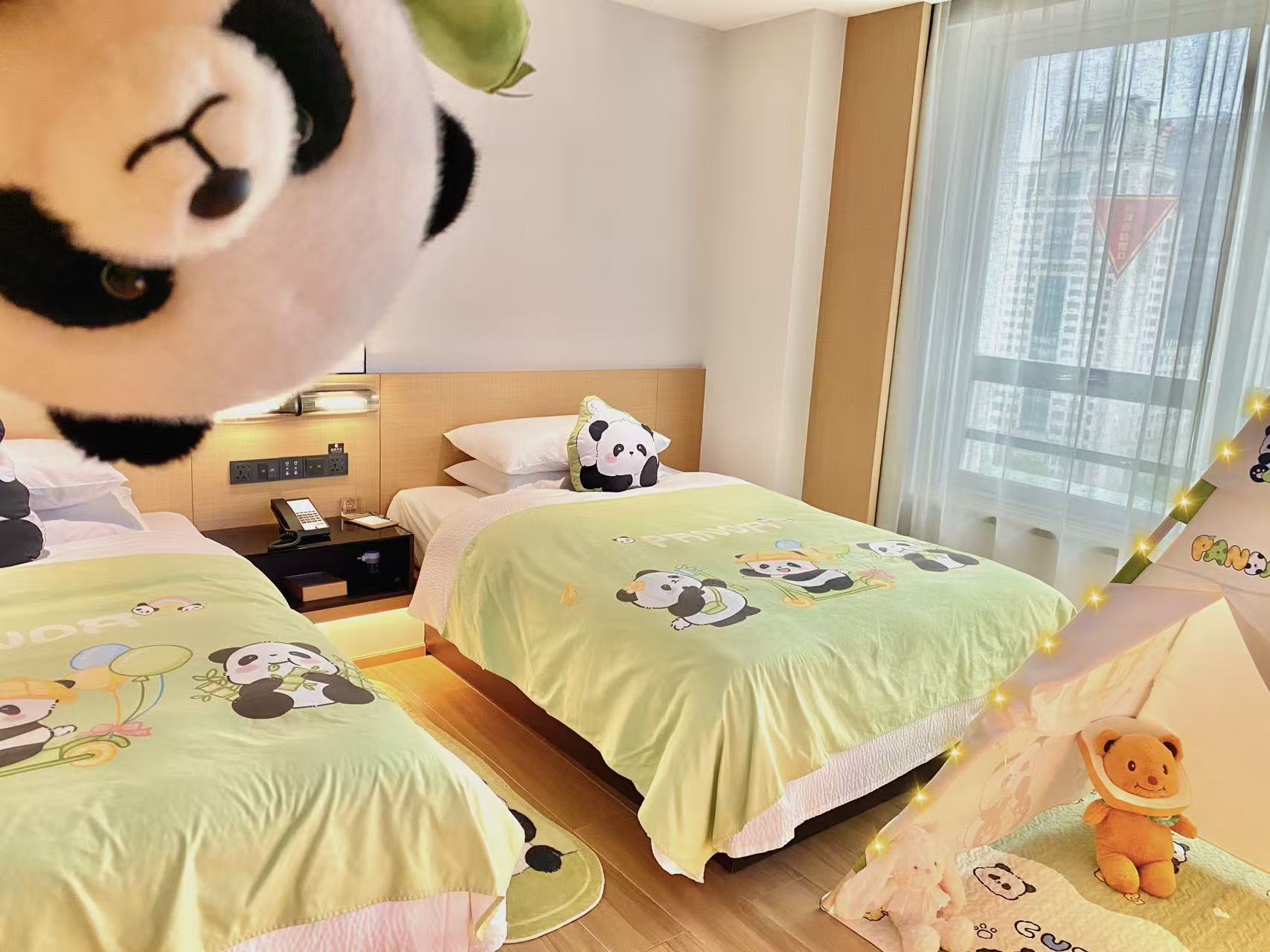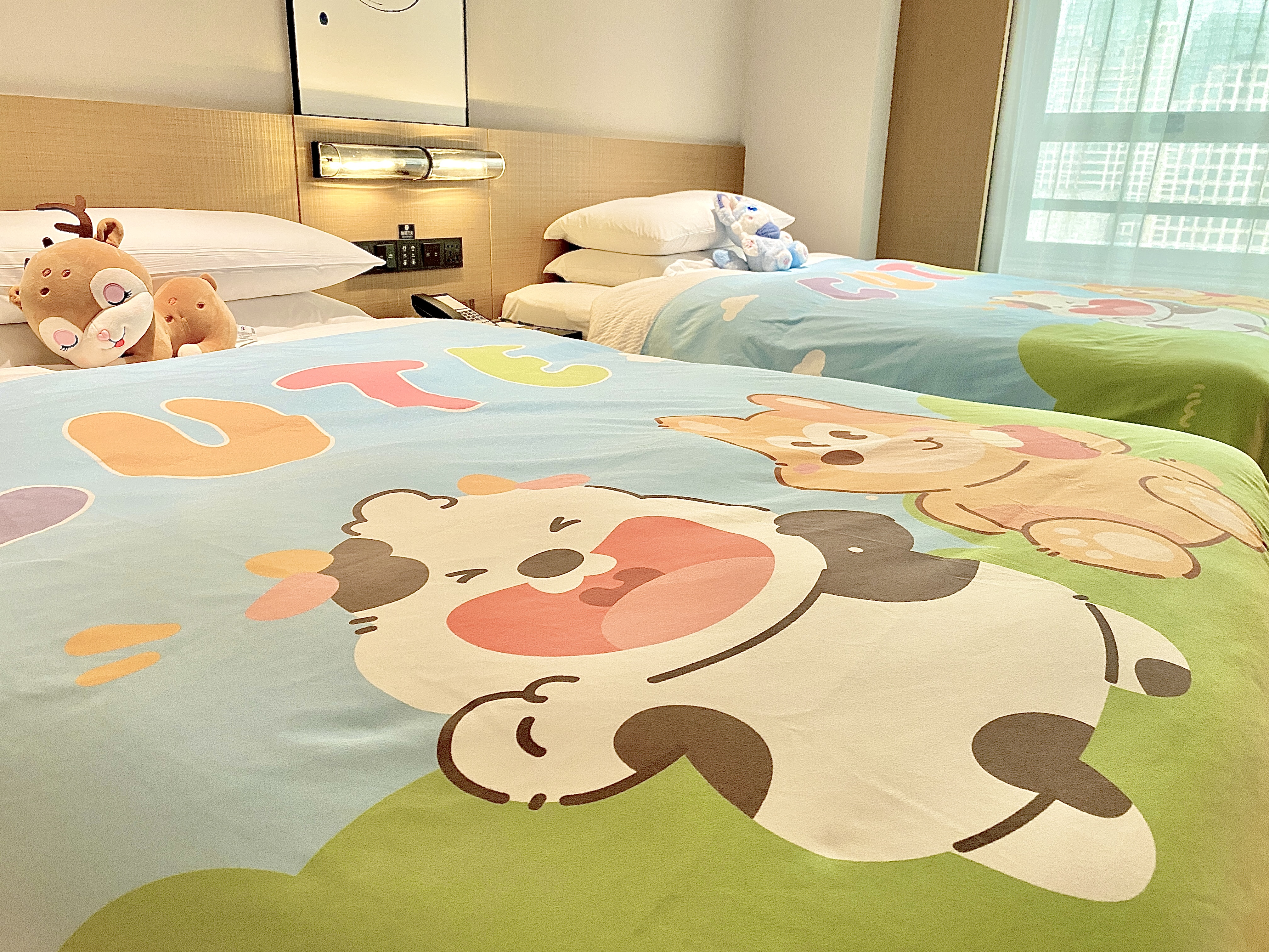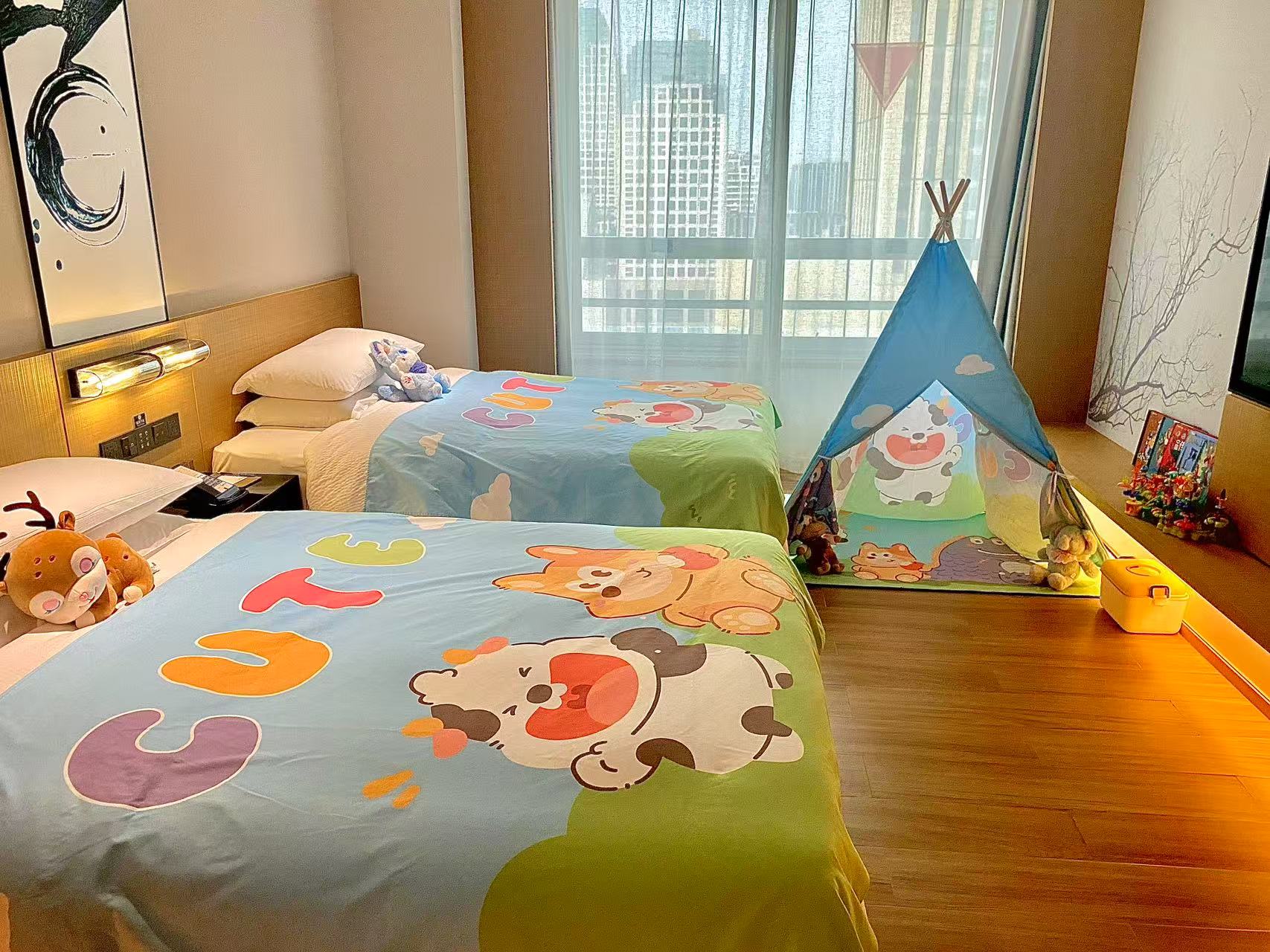 ??阳光小牛亲子双床房(小冰箱+熨烫机+落地窗)