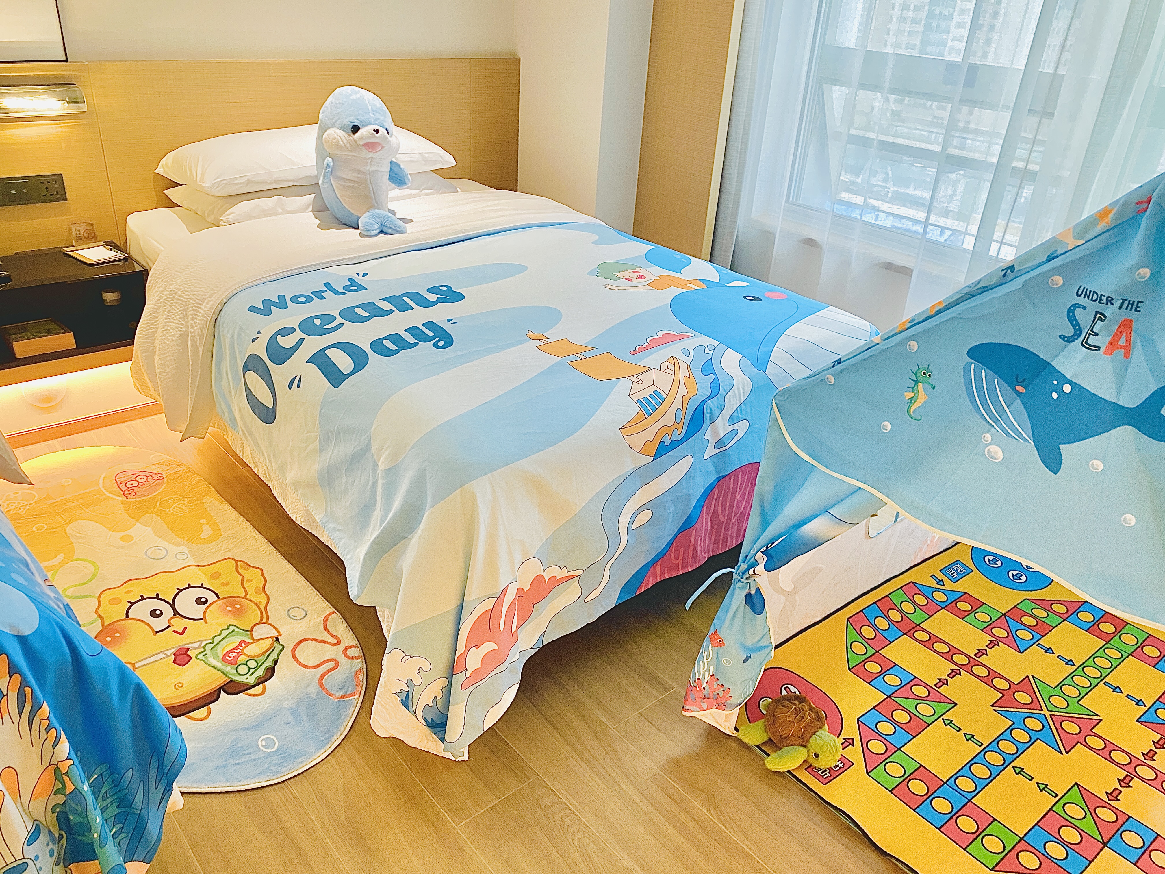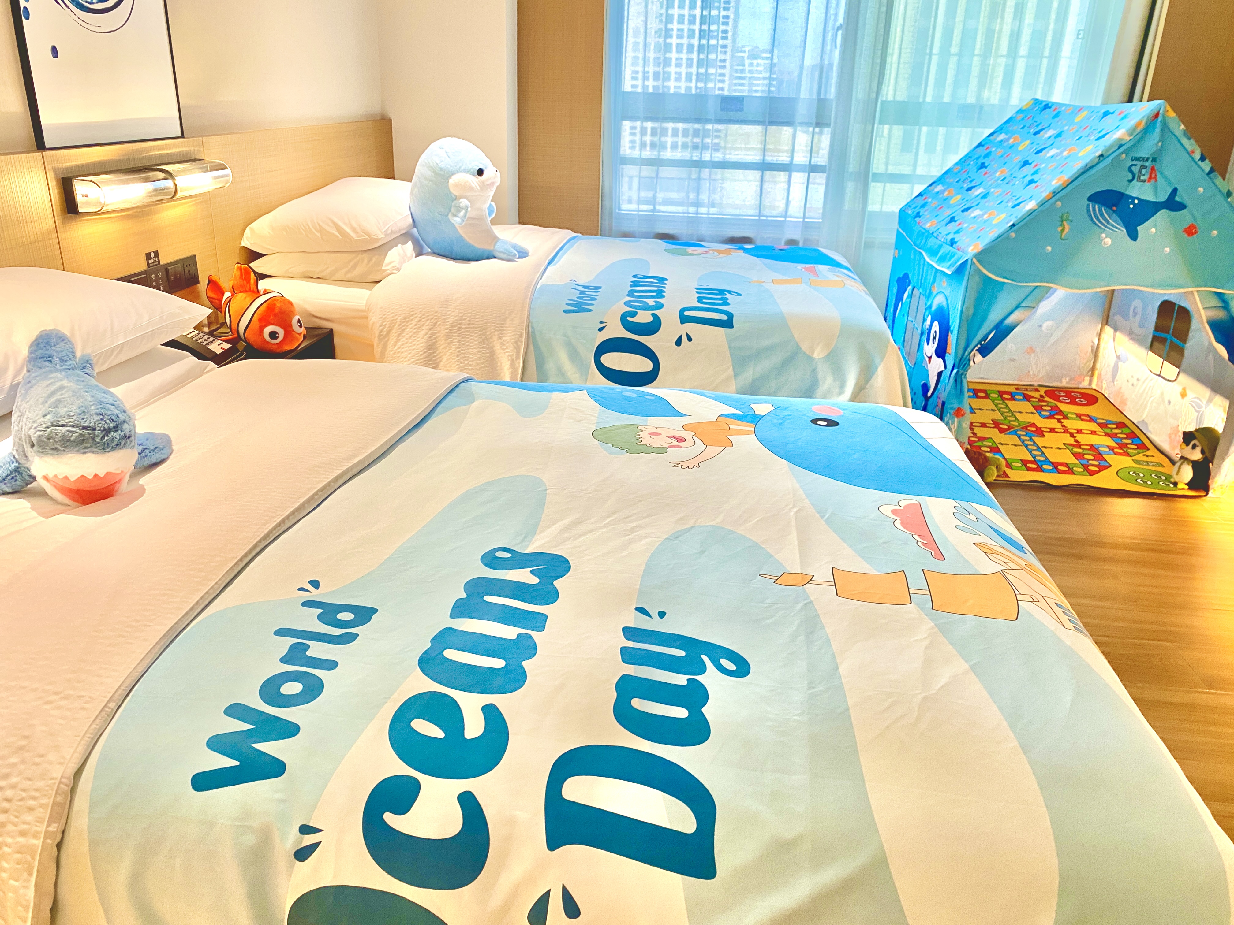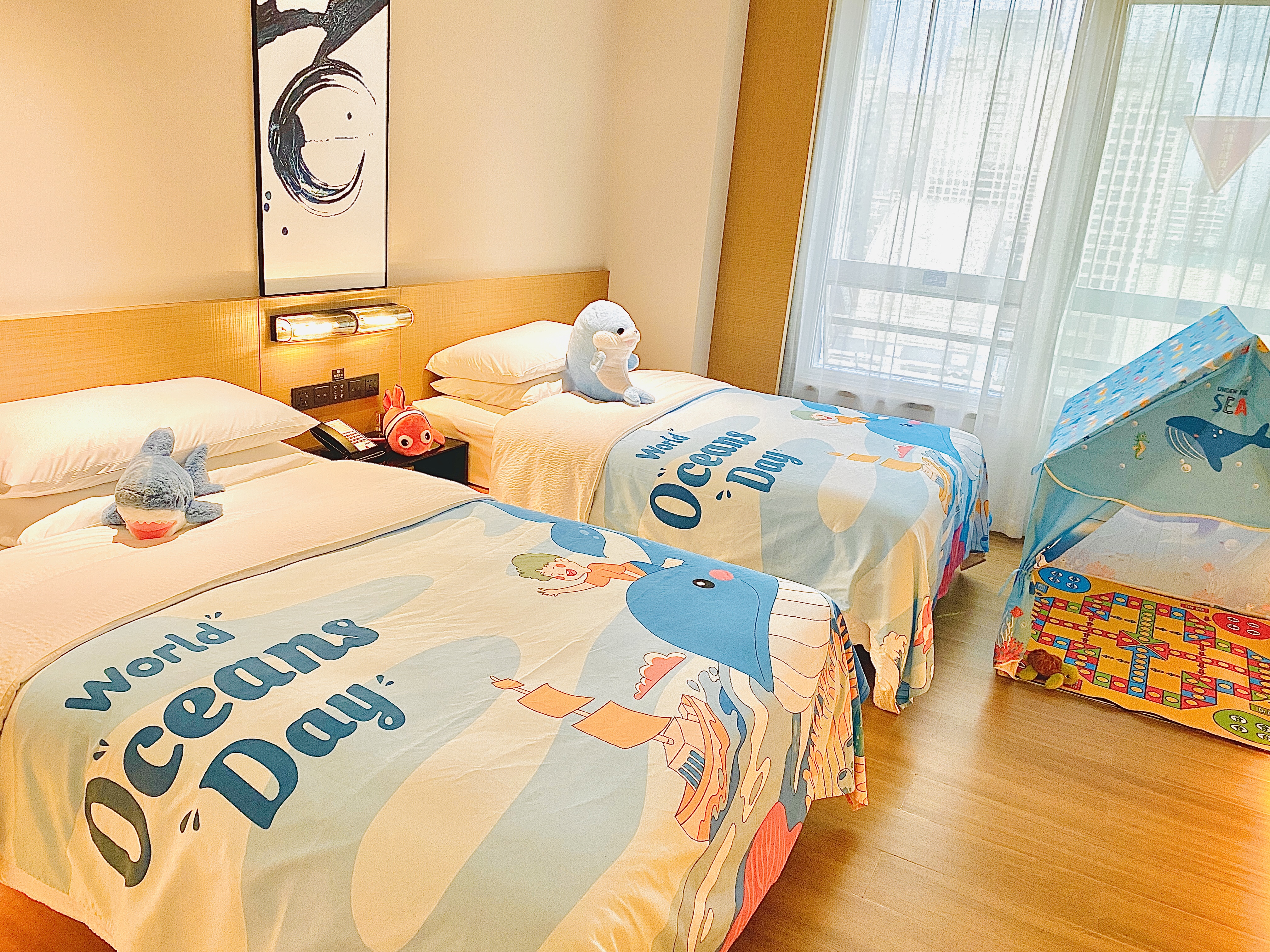 白鲸之梦亲子双床房(小冰箱+熨烫机+落地窗)
