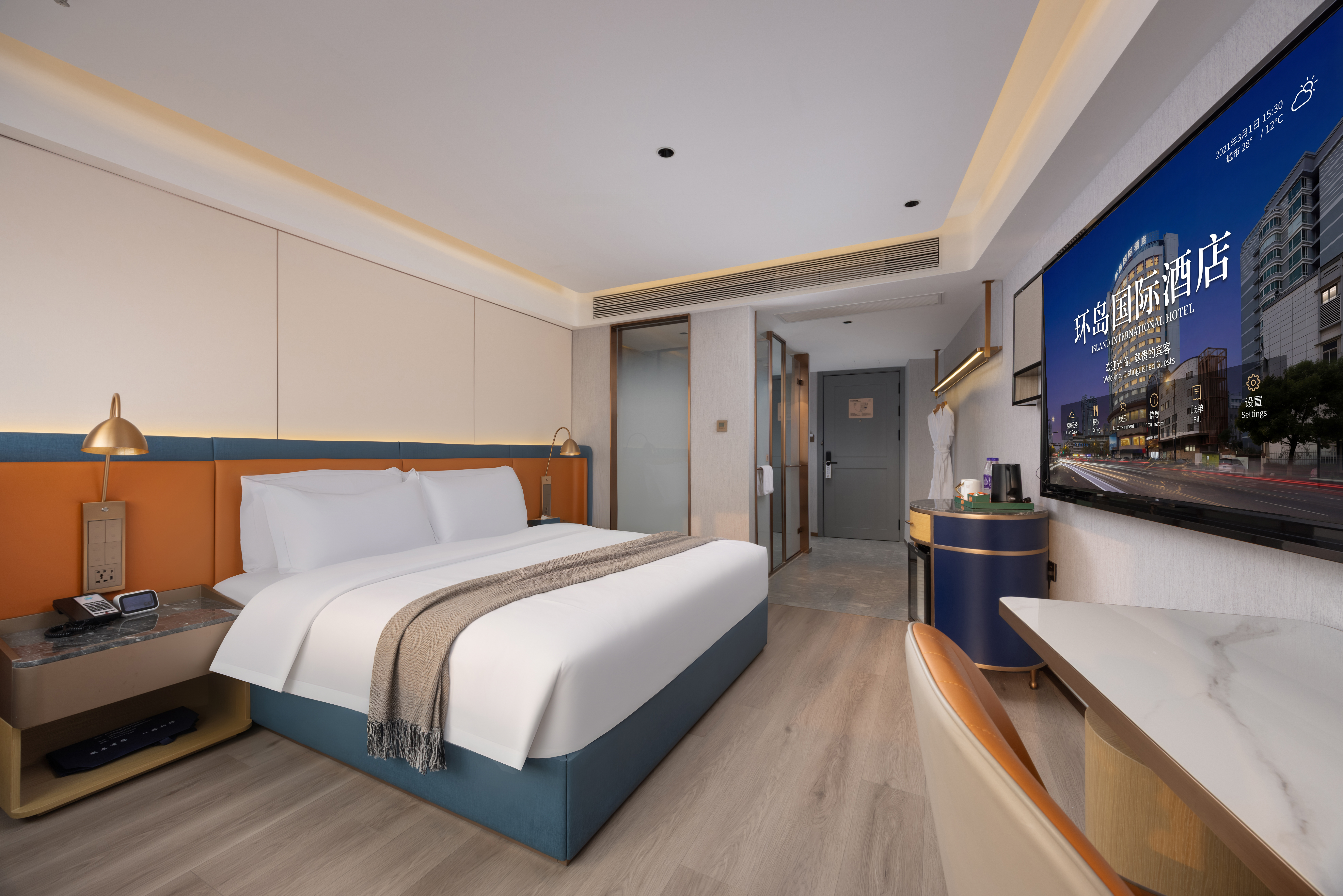 270°湖景行政套房「全景落地窗+浴缸+浴袍+幕布投影」