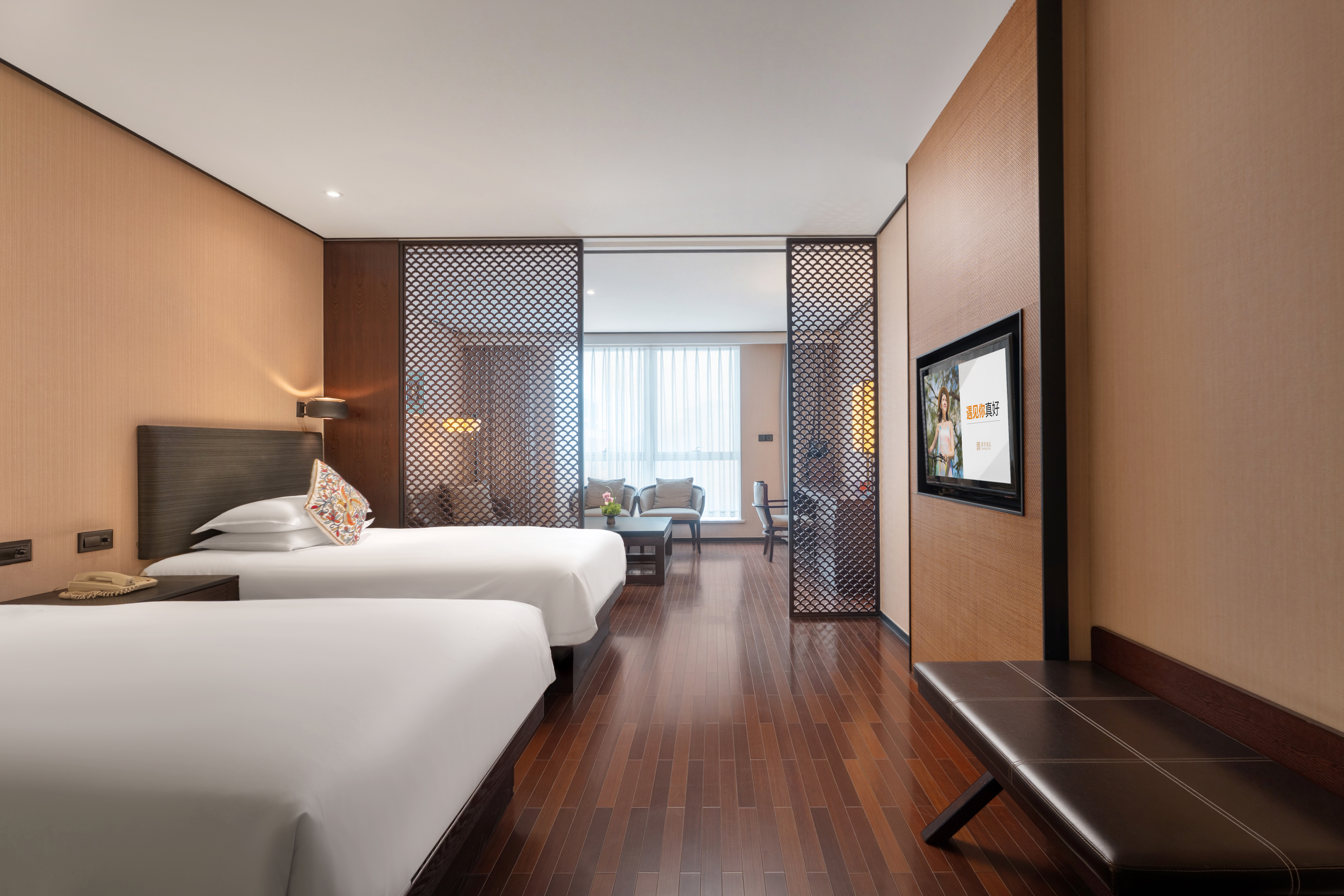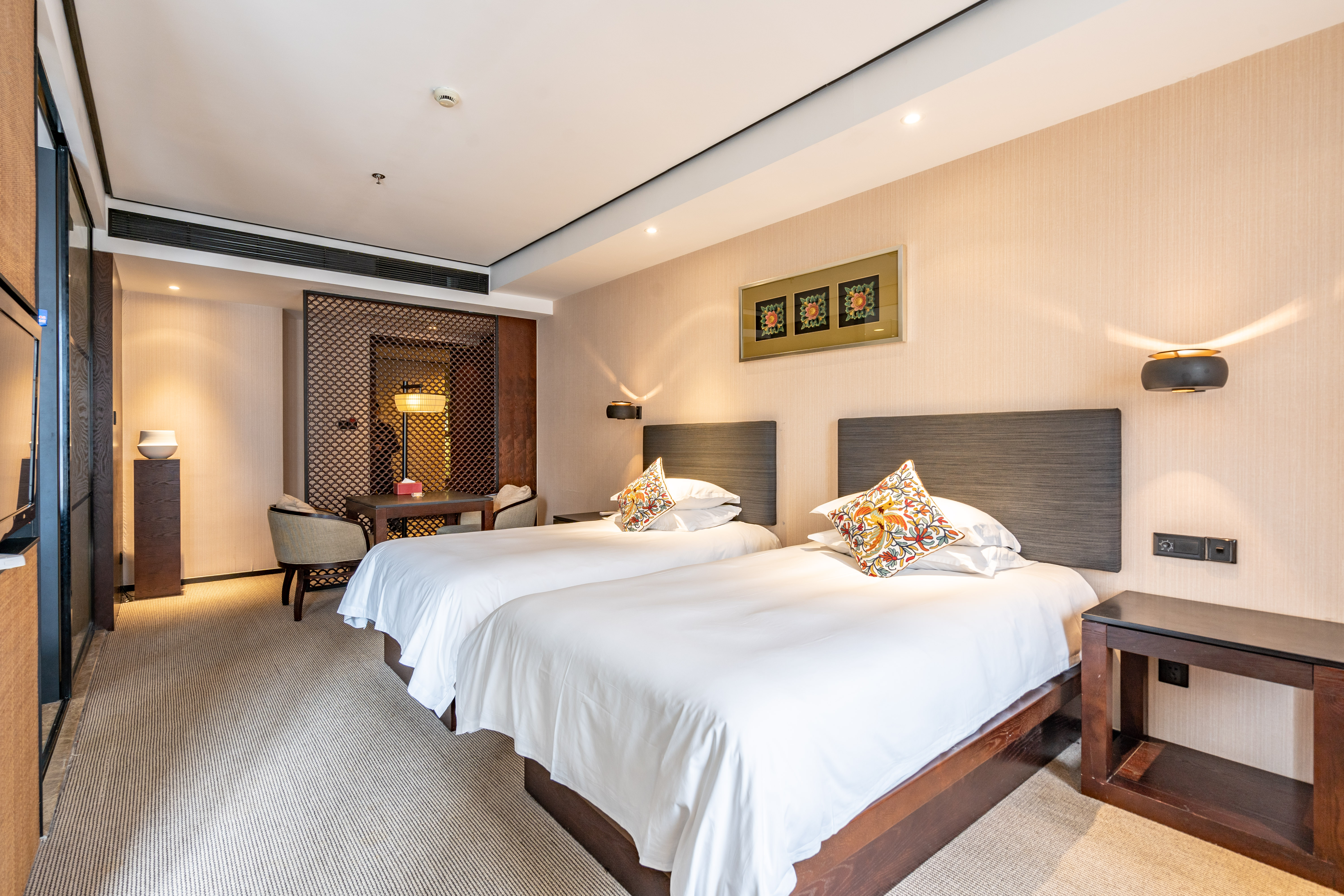 四季都市双床房(独立会客区+落地玻璃+东南亚风格)