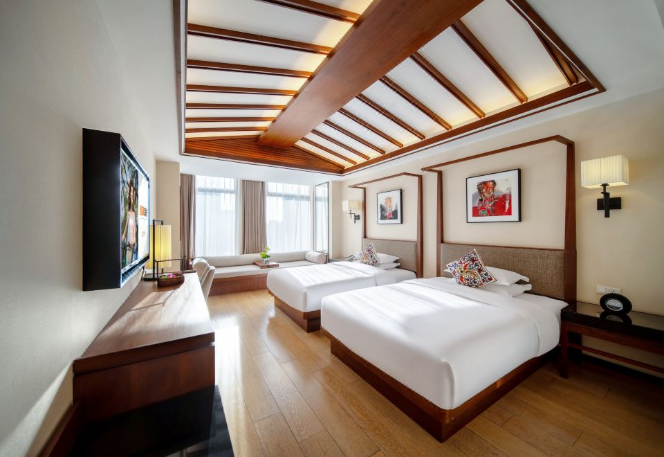 君亭双床套房(空间感两室小型会客厅+浴缸+电动窗户+双洗手盆)