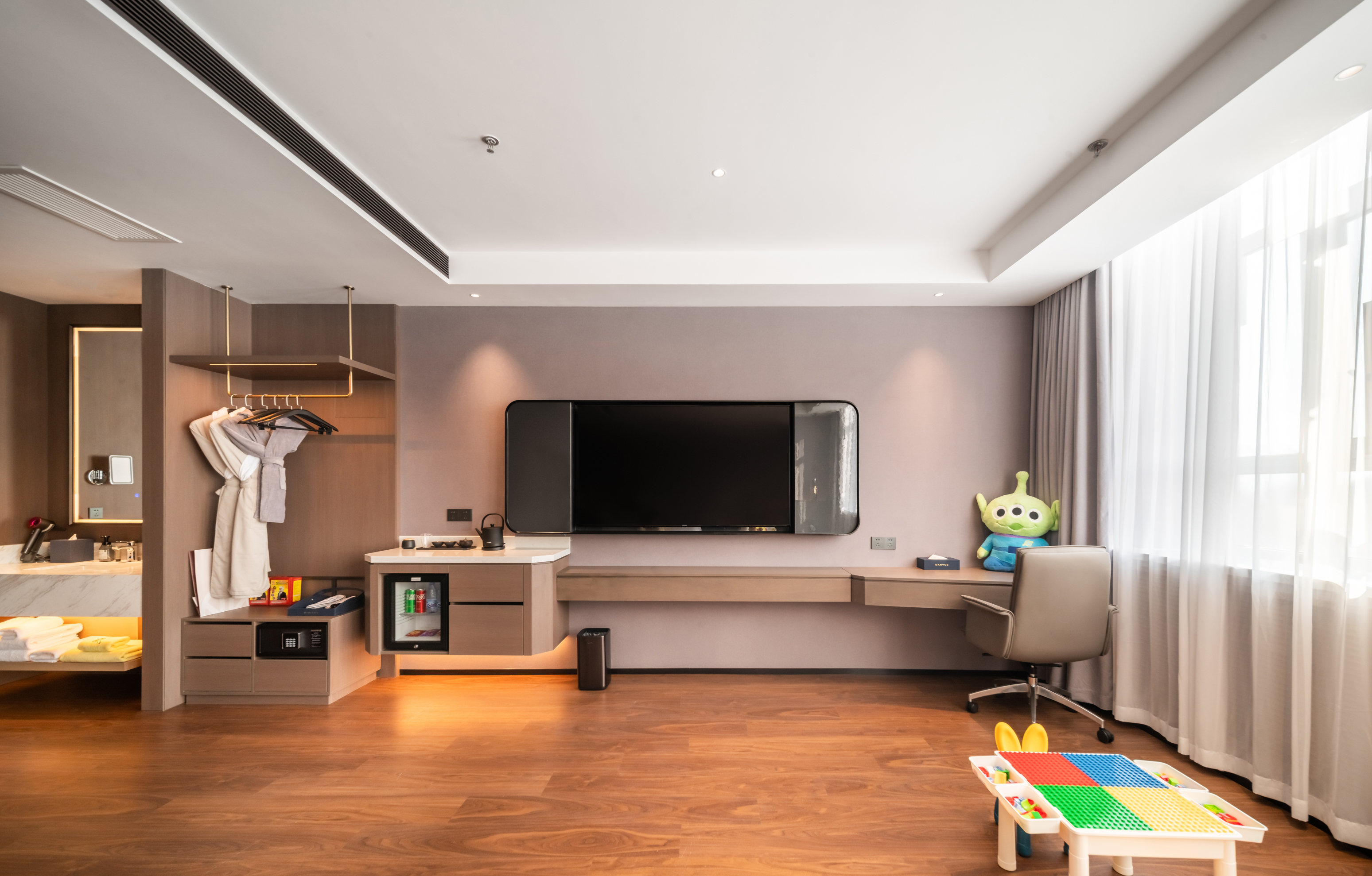 亲子家庭房(金可儿床垫+电动窗帘+小童玩具+水吧)