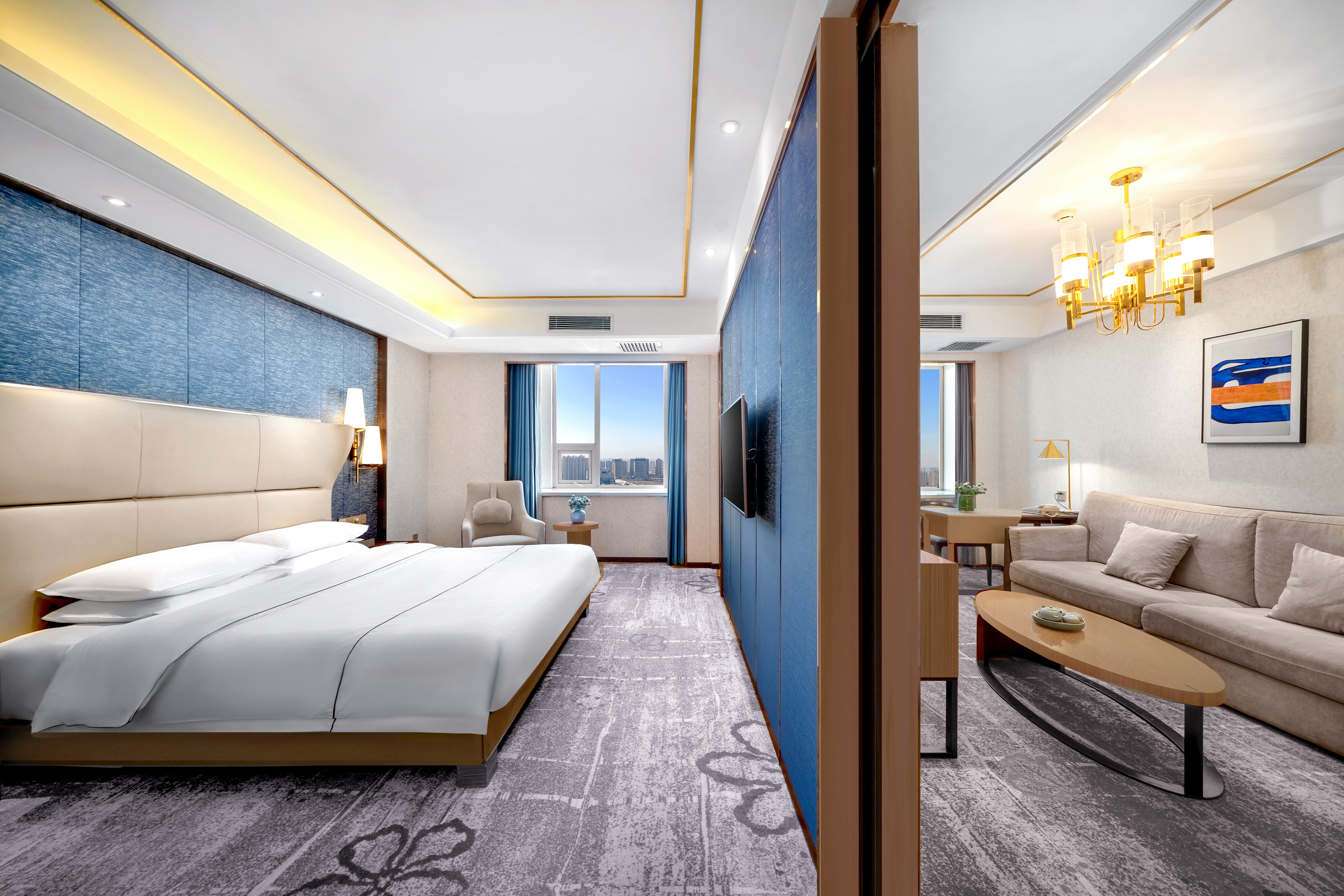 高空观景大床套房(会客厅+沙发茶几+小冰箱+浴缸)