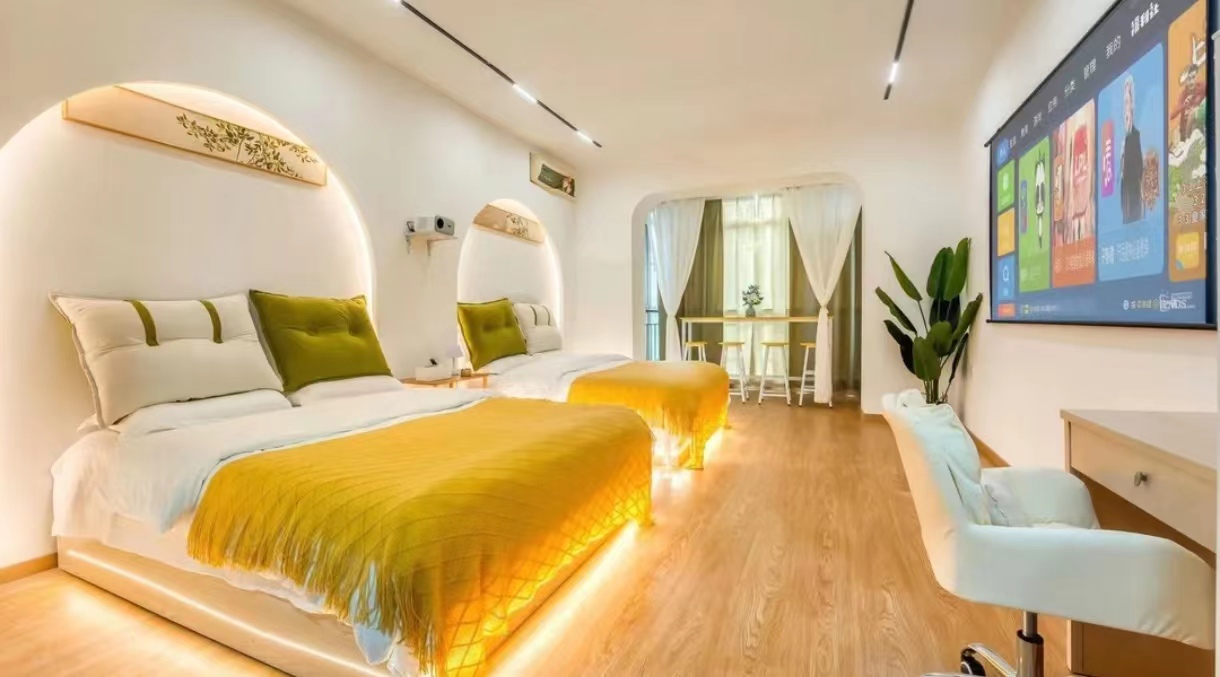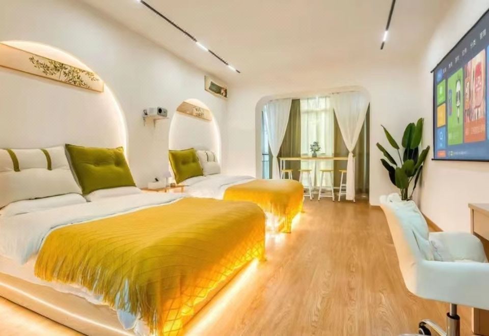 金谷拾光江畔观景投影双床房(城景+洗衣机)