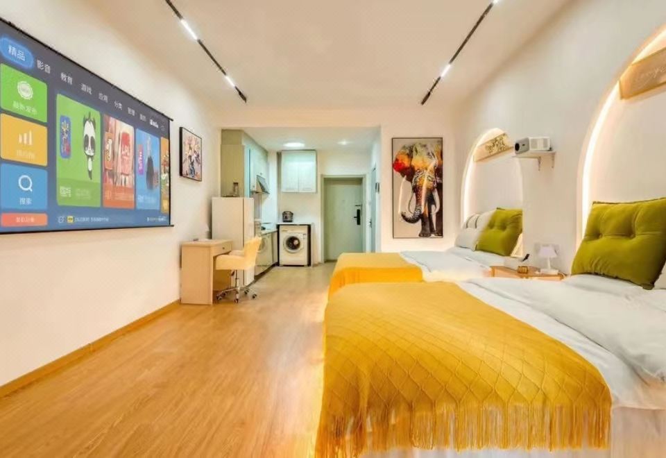 金谷拾光江畔观景投影大床房(城景+洗衣机)