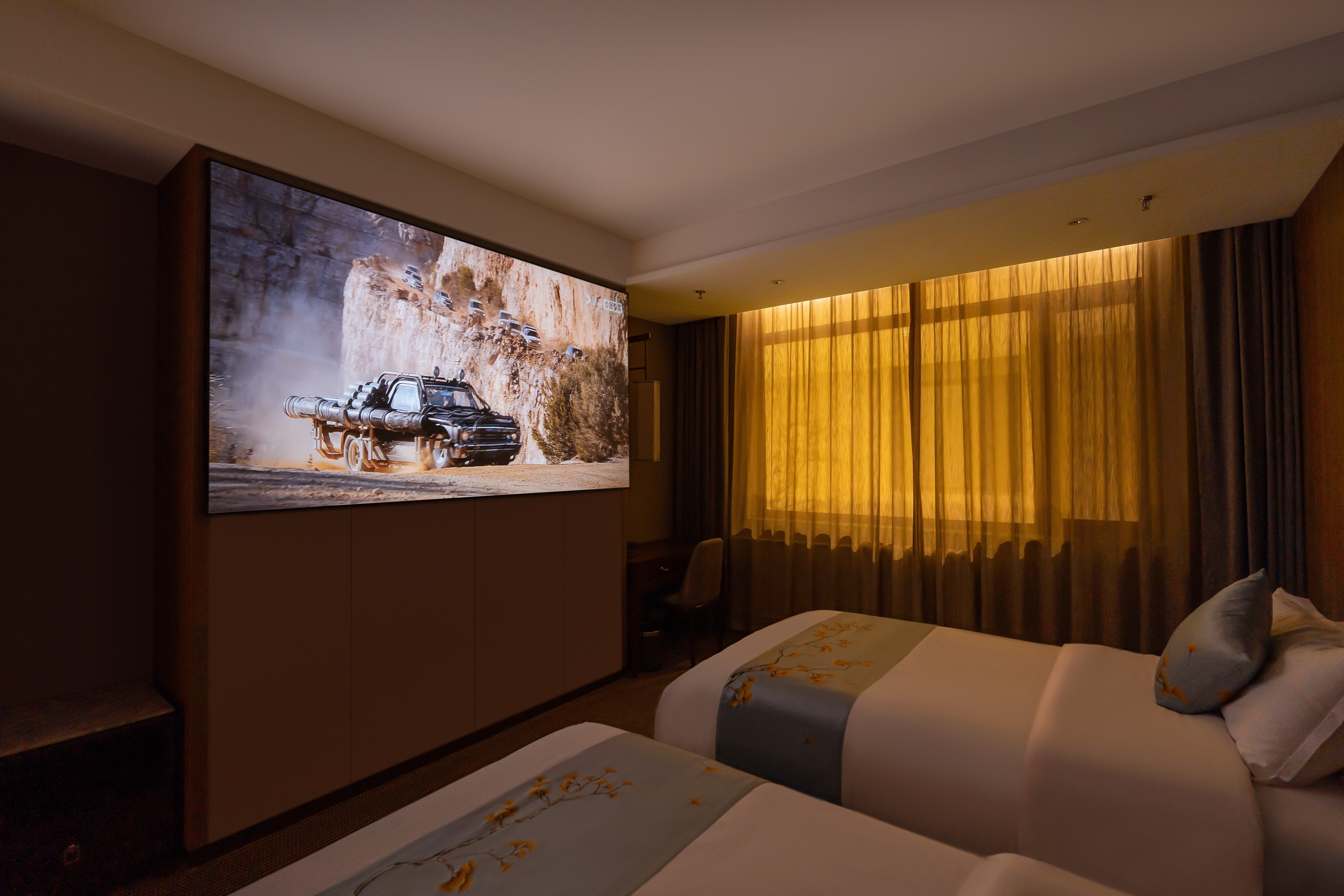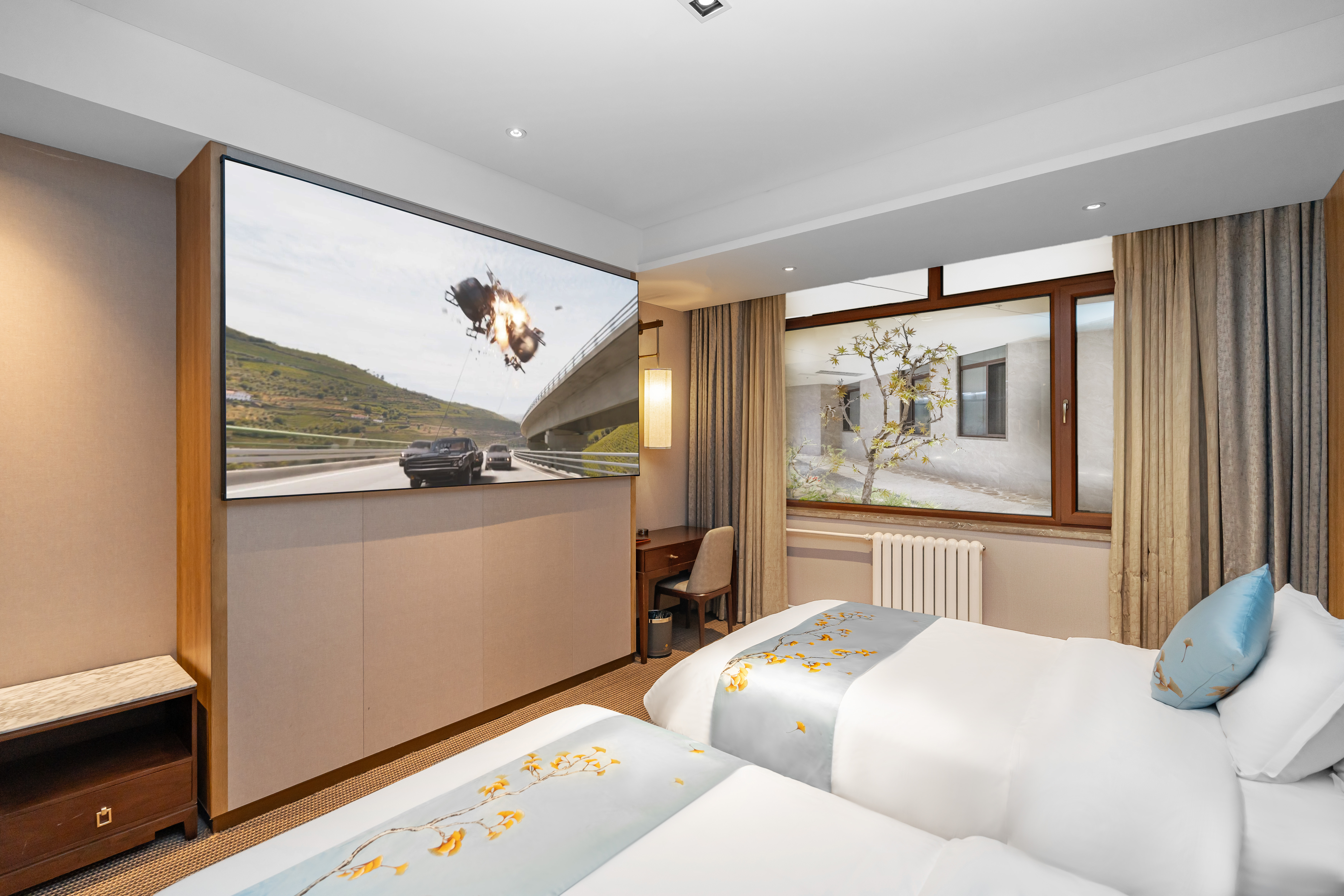 100寸沉浸式巨幕影音双床房.加湿器