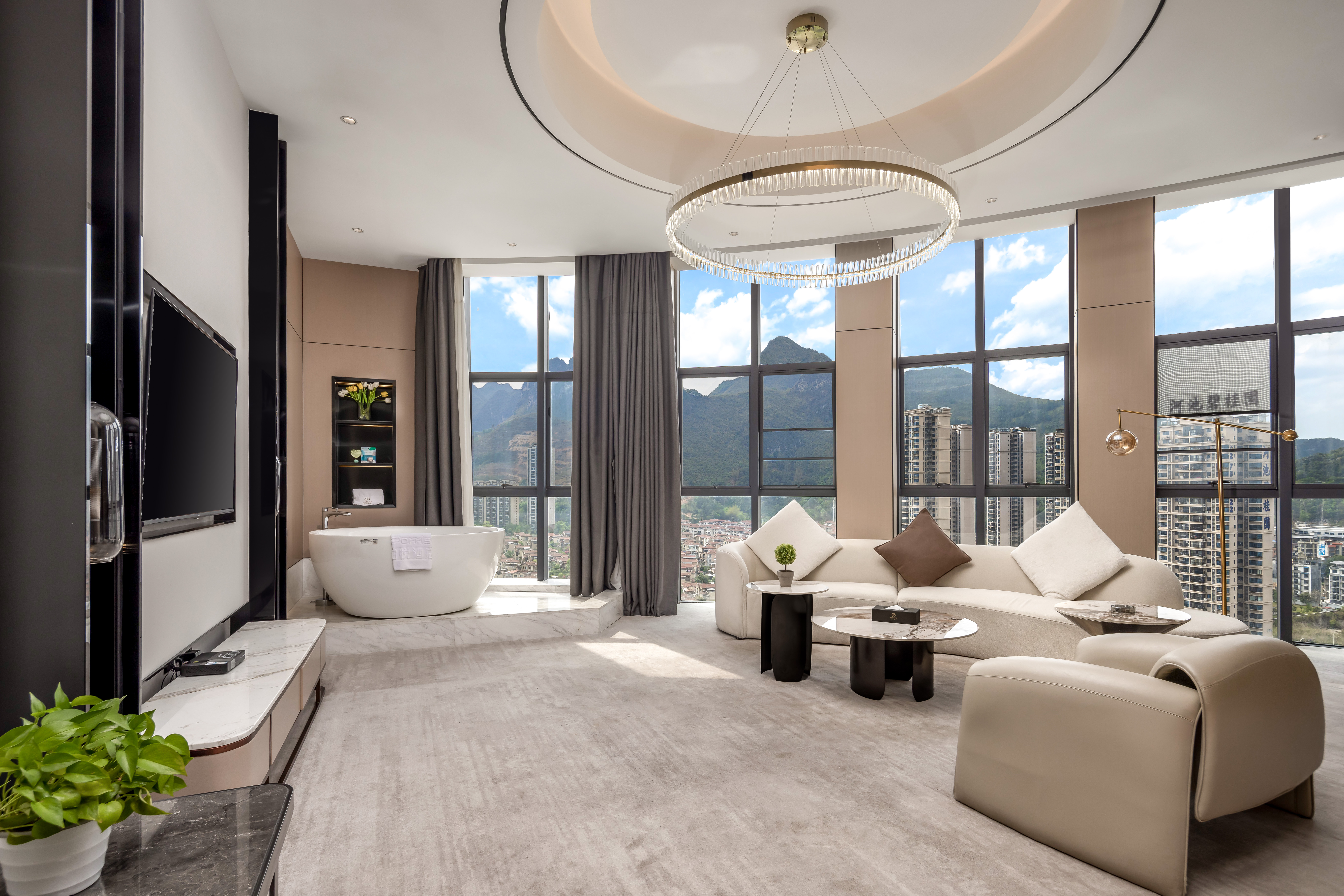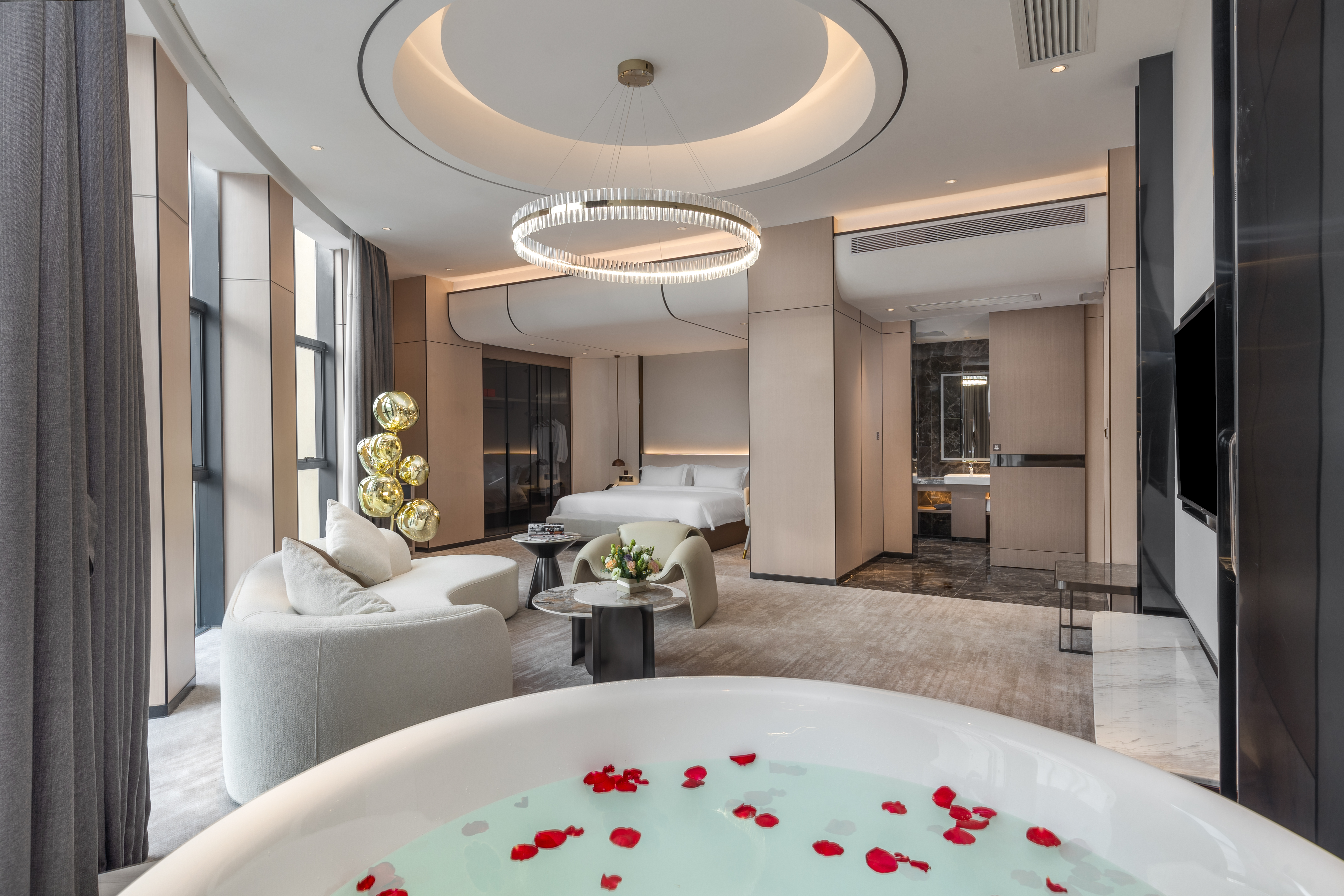 芳华网红全景浴缸套房(180°环幕窗+观景泡浴打卡)