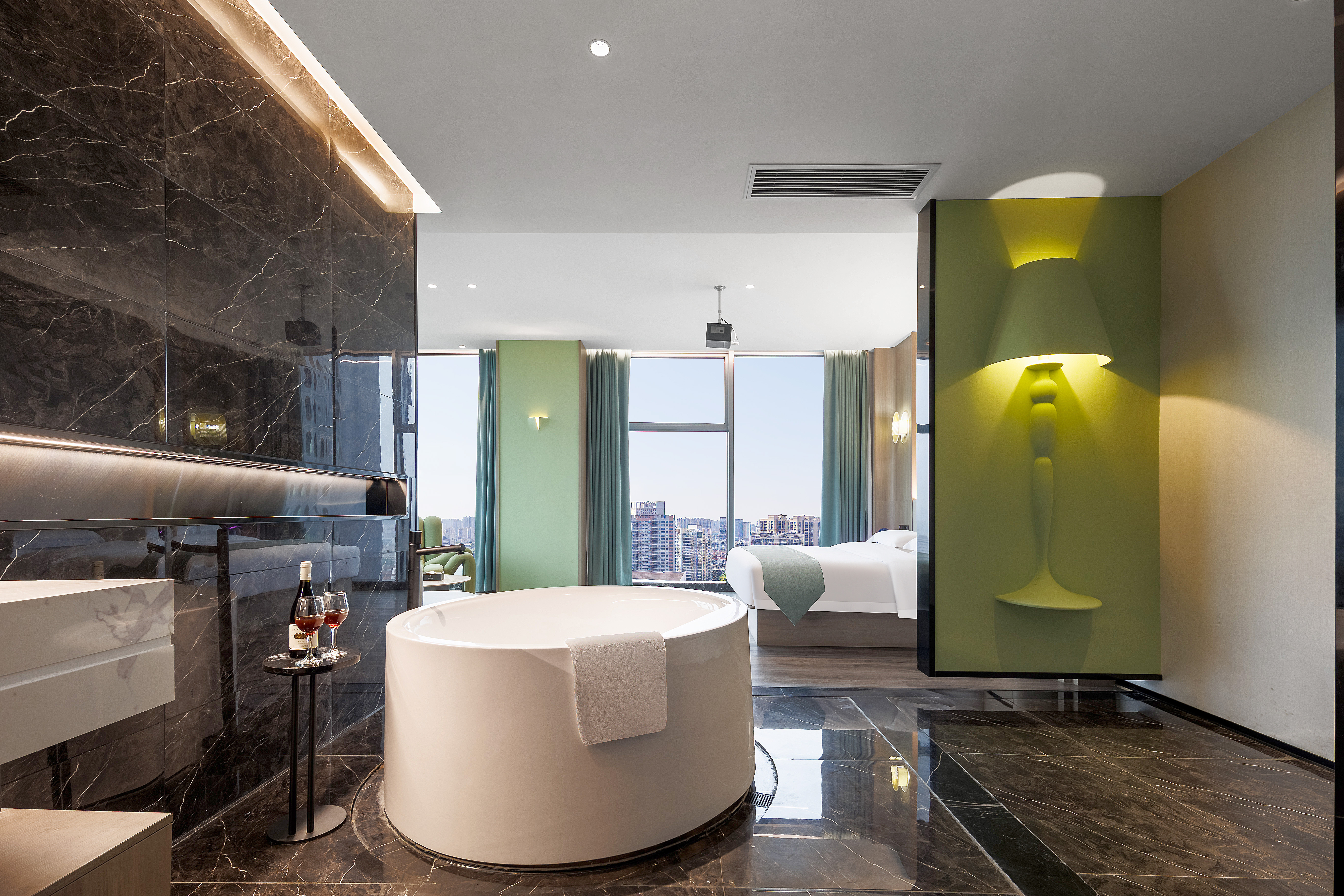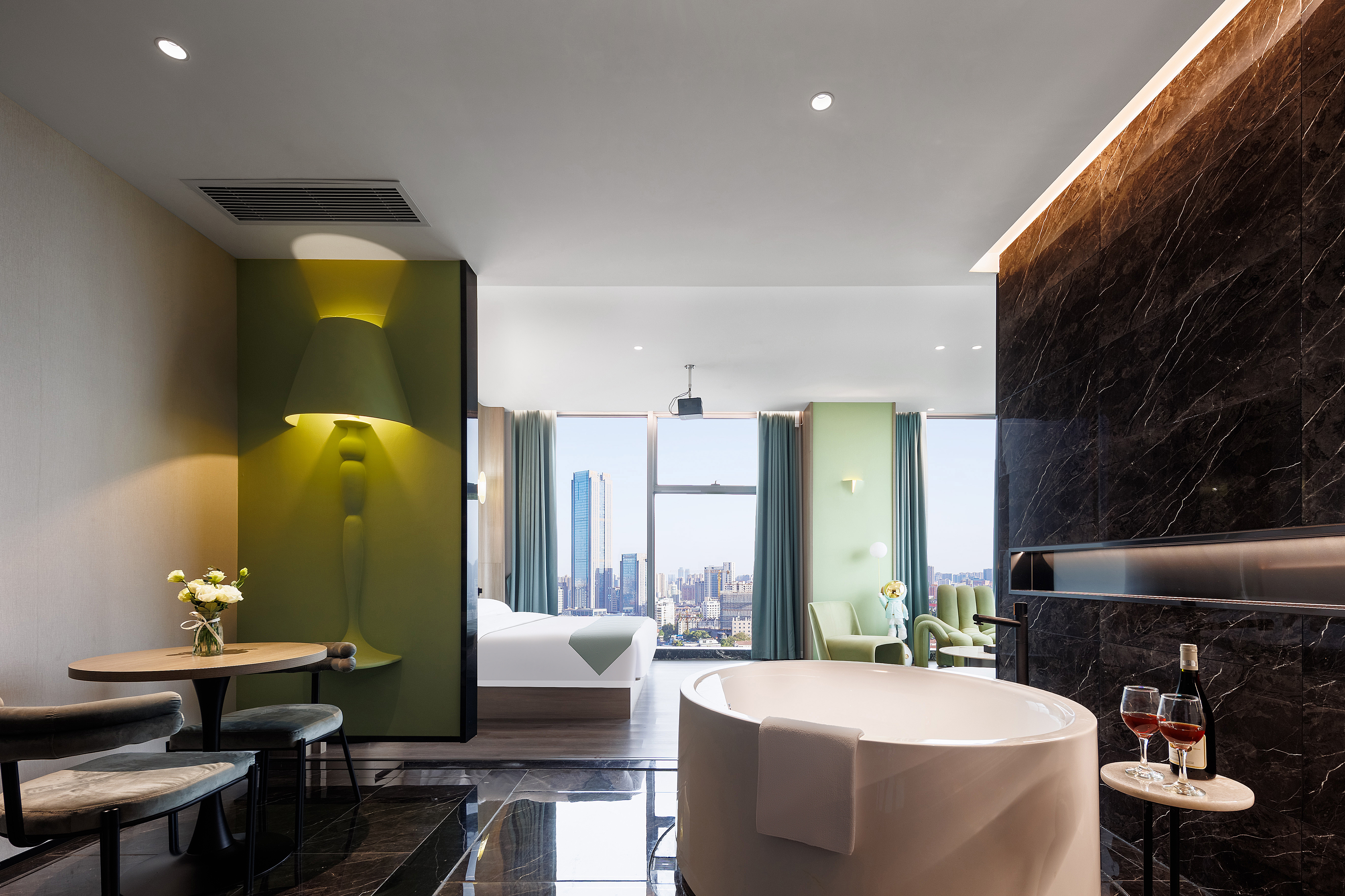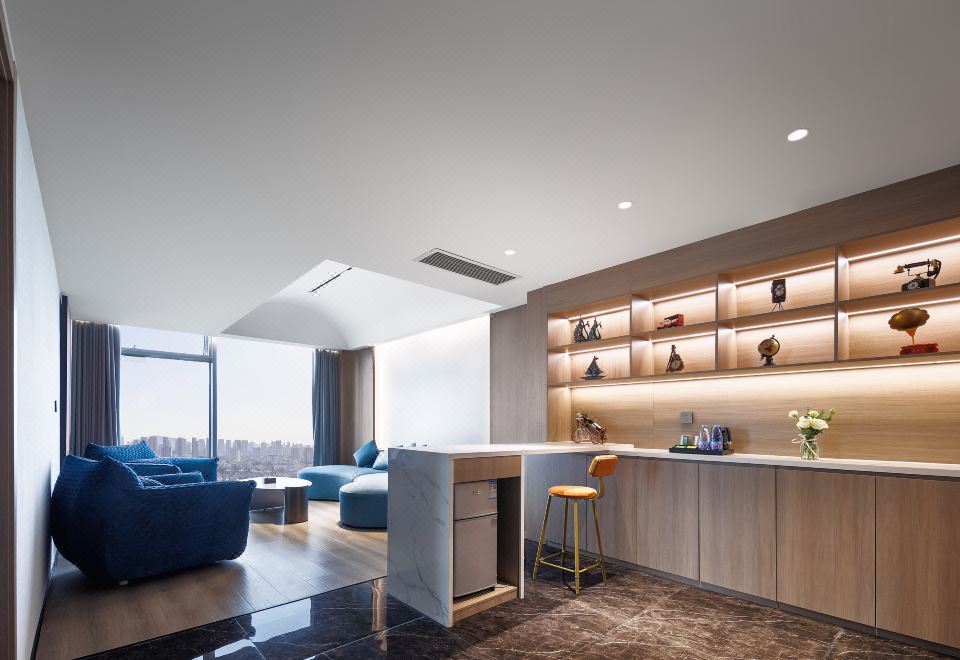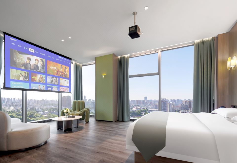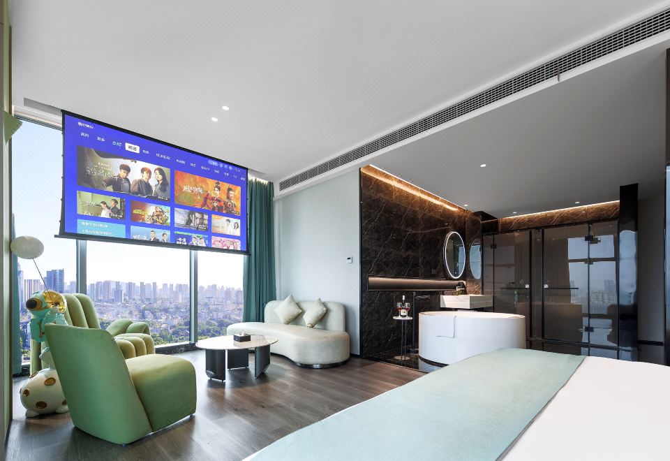 Panoramic Presidential Suite With Movie Viewing (Voice-Activated Smart Control + Separate Living Area + Private Tub + 120-Inch Large Screen Projection + 270 ° City Night View)