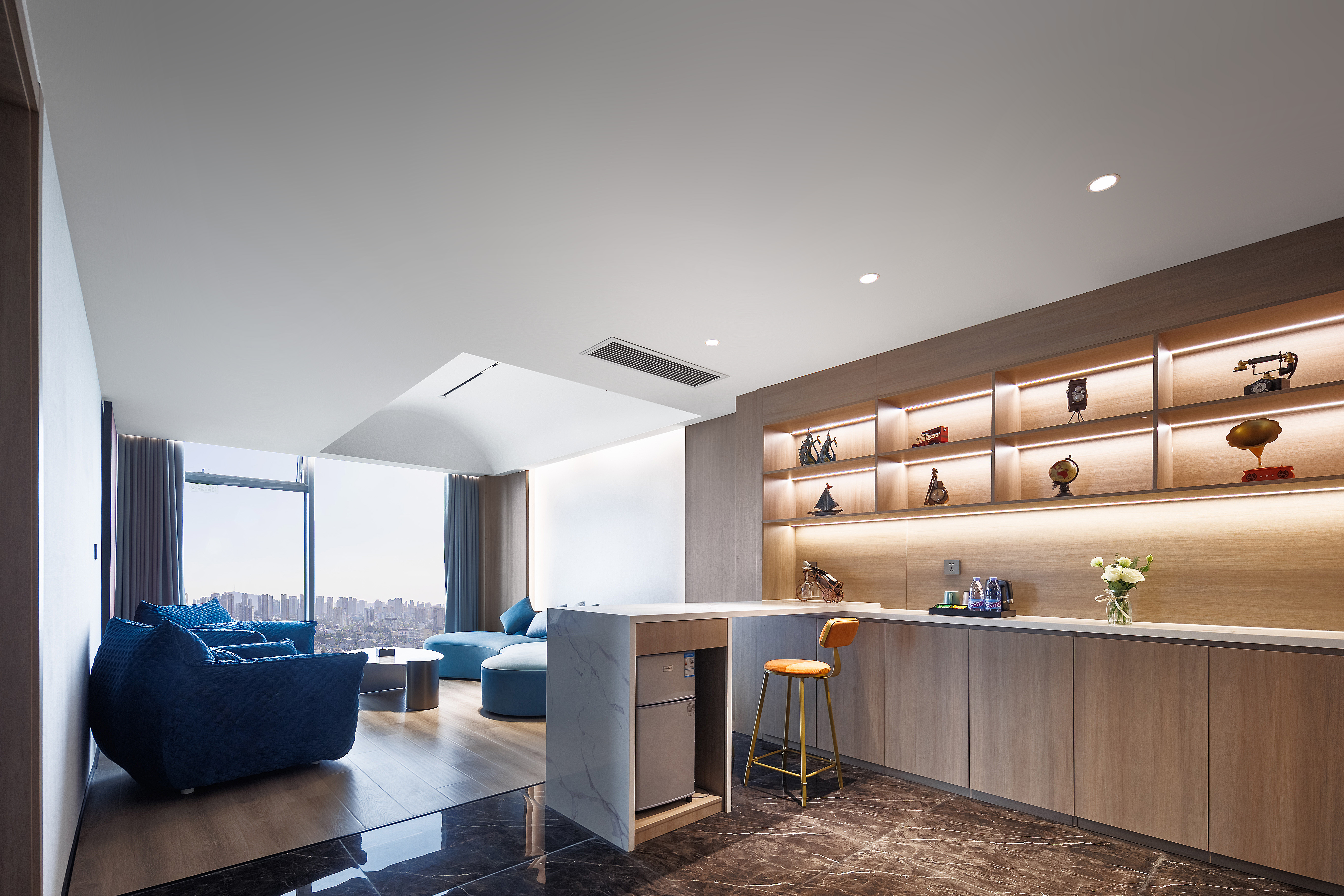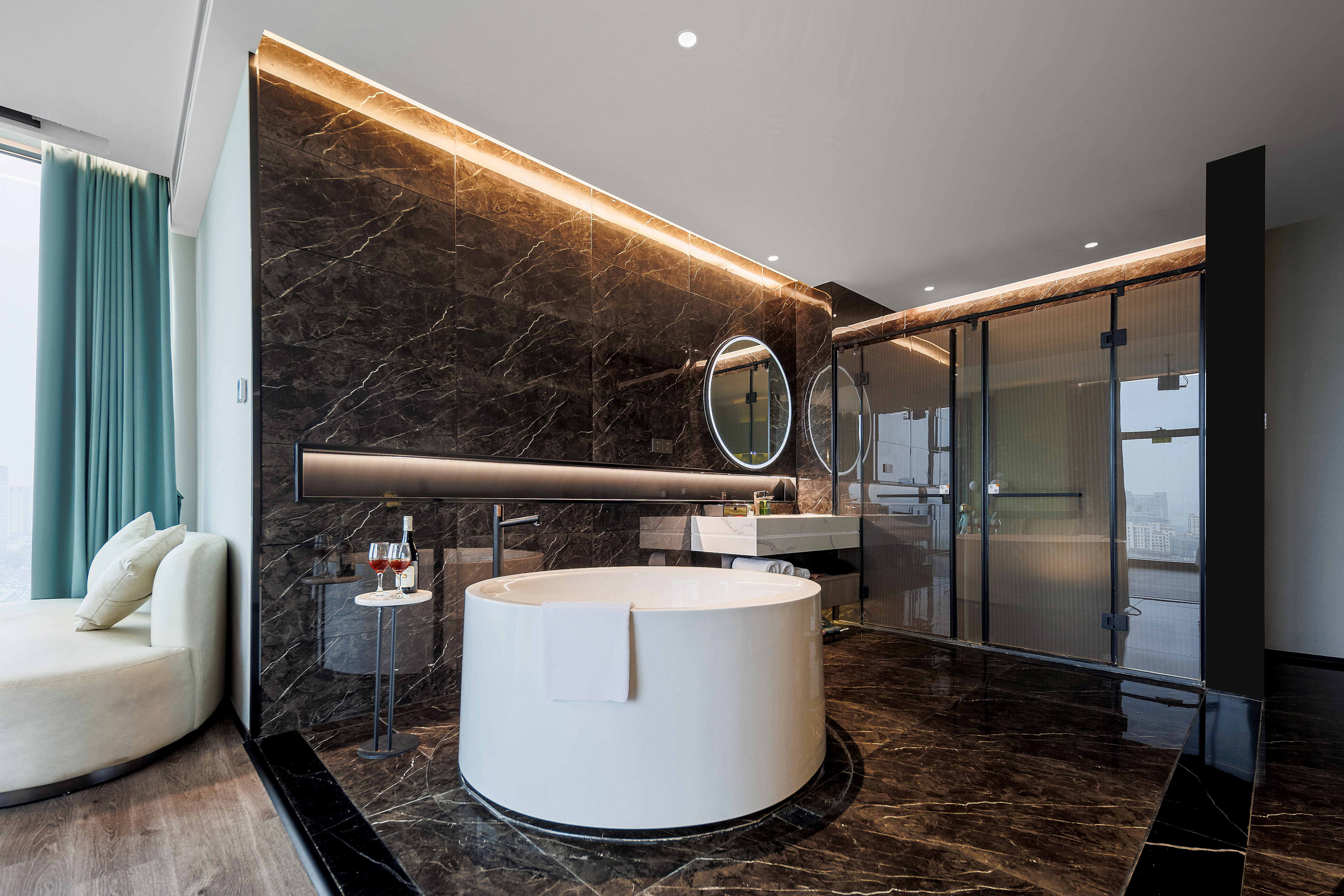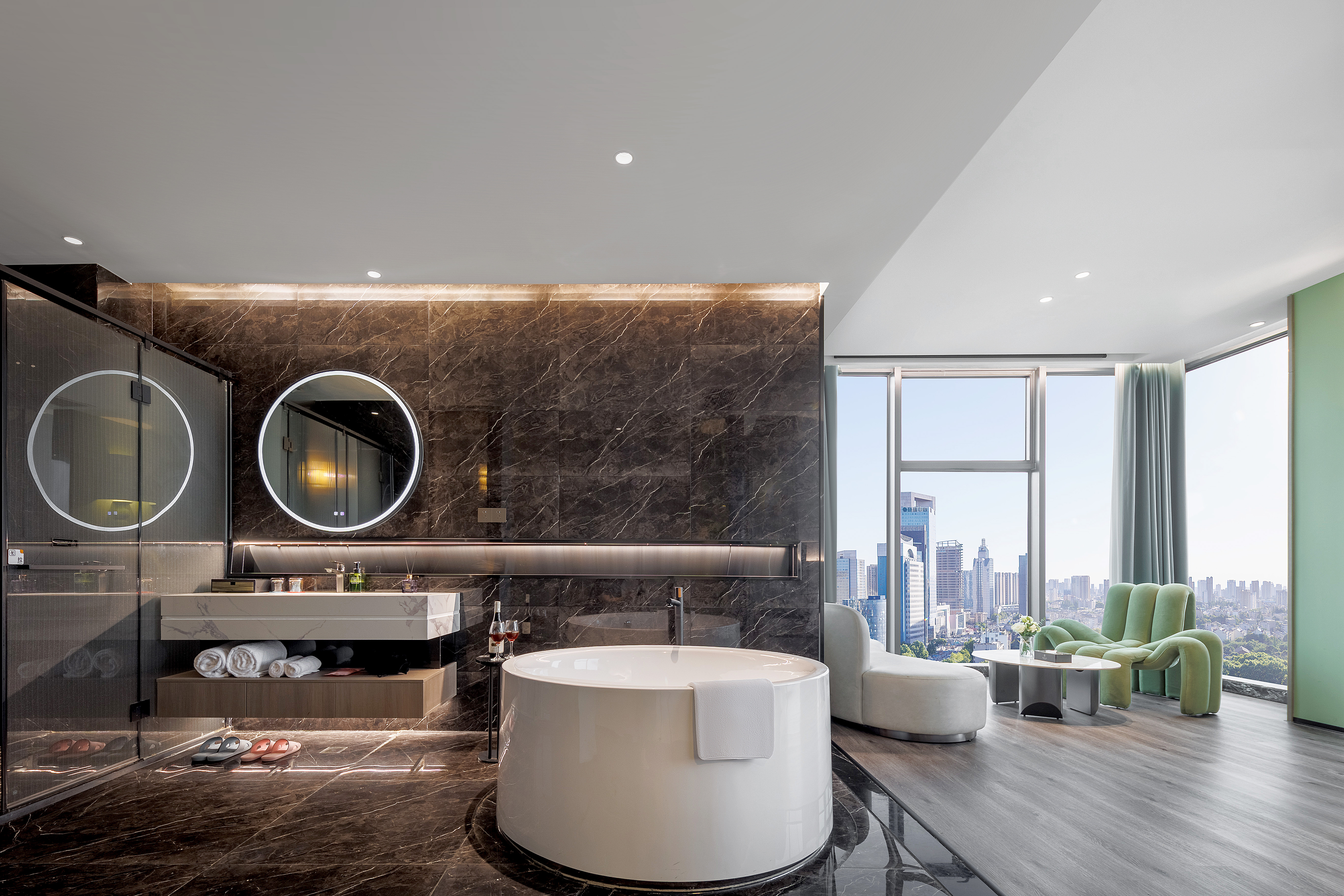 Panoramic Presidential Suite With Movie Viewing (Voice-Activated Smart Control + Separate Living Area + Private Tub + 120-Inch Large Screen Projection + 270 ° City Night View)