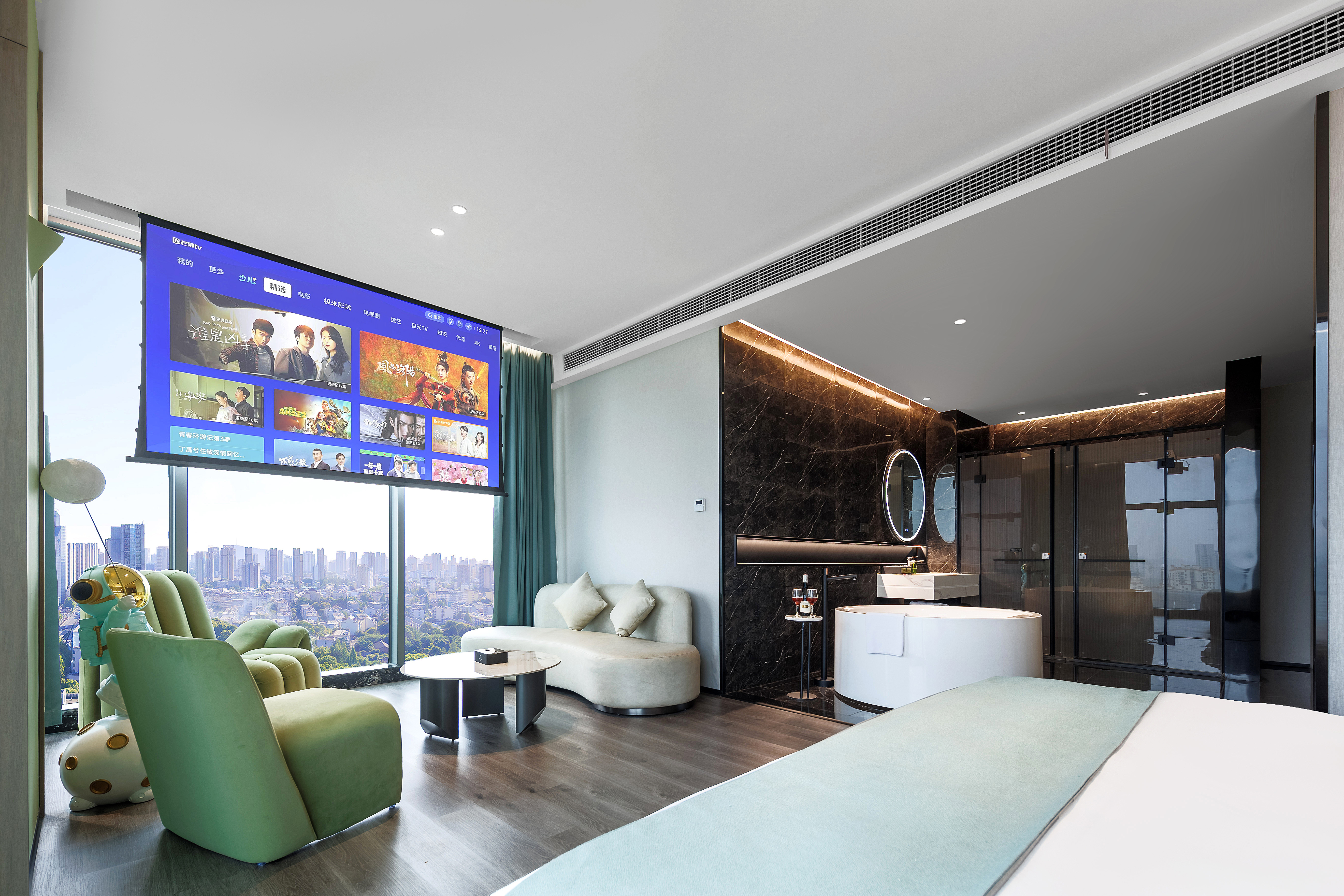 Executive Handpicked Movie Viewing Suite (Voice-Activated Smart Control + 120-Inch Large Screen Projection + Private Tub + 270 ° City Night View)