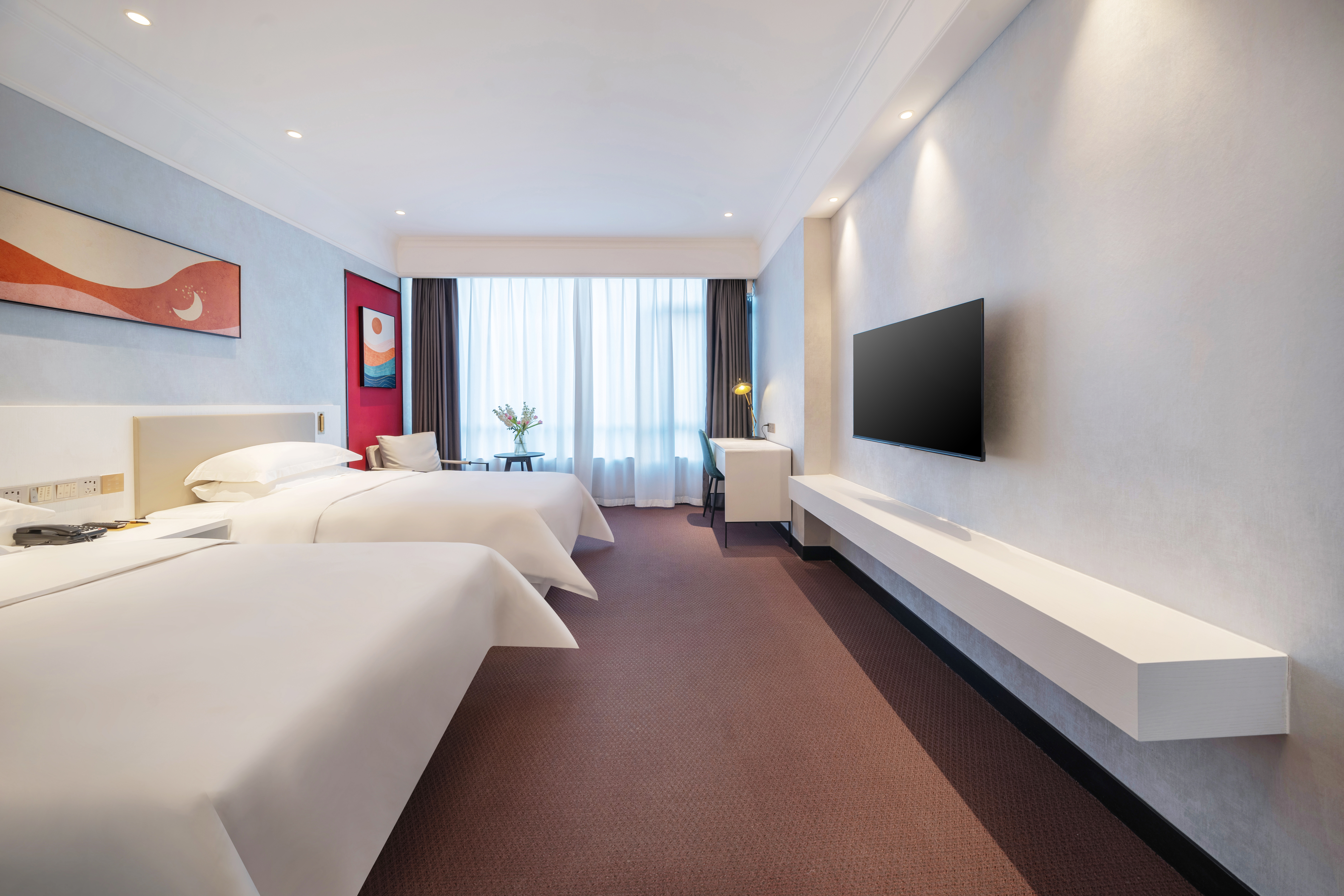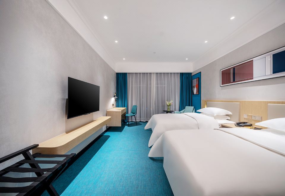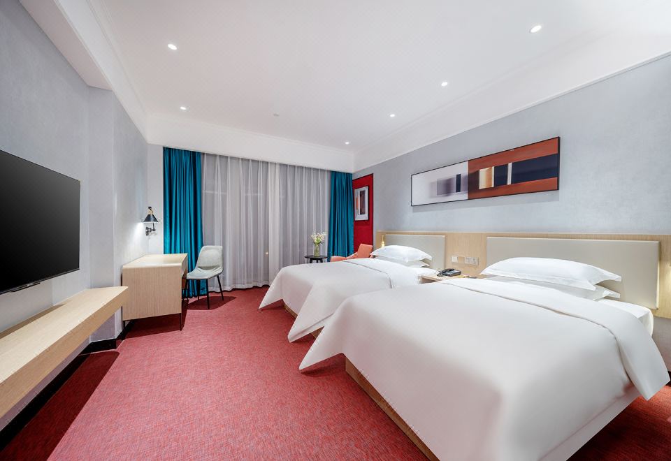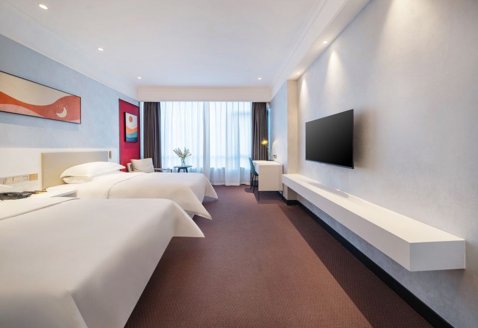 欣悦雙床房【零壓床墊+舒睡好眠+可投屏電視+電動窗簾+小冰箱+電磁爐】