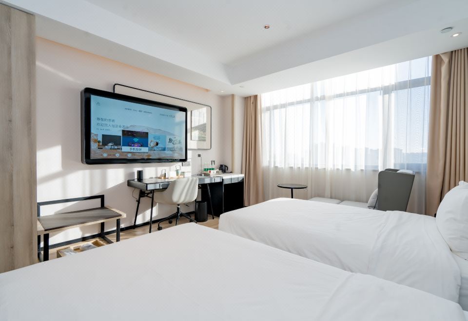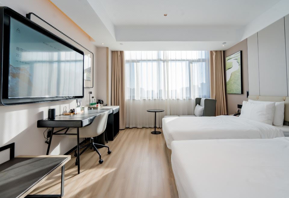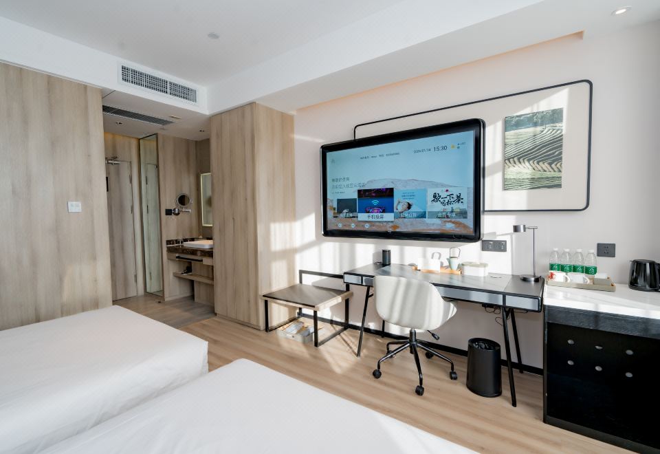 高级双床房(智能小度+电动窗帘+可投屏65寸电视)