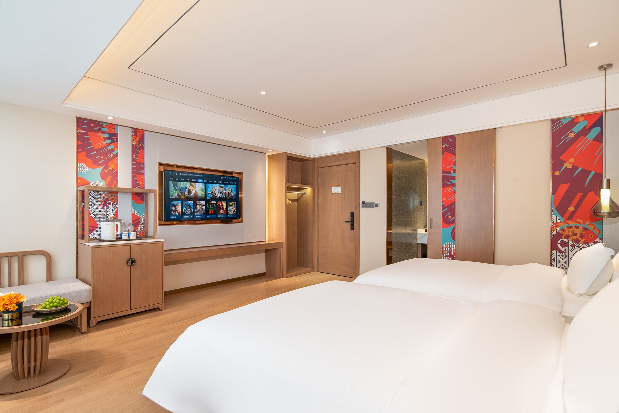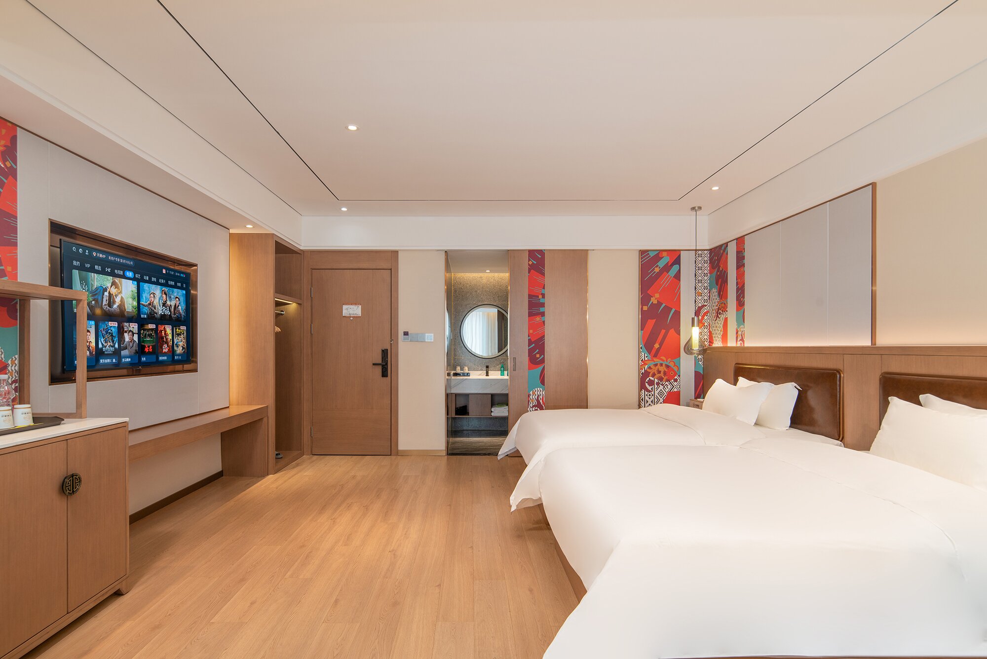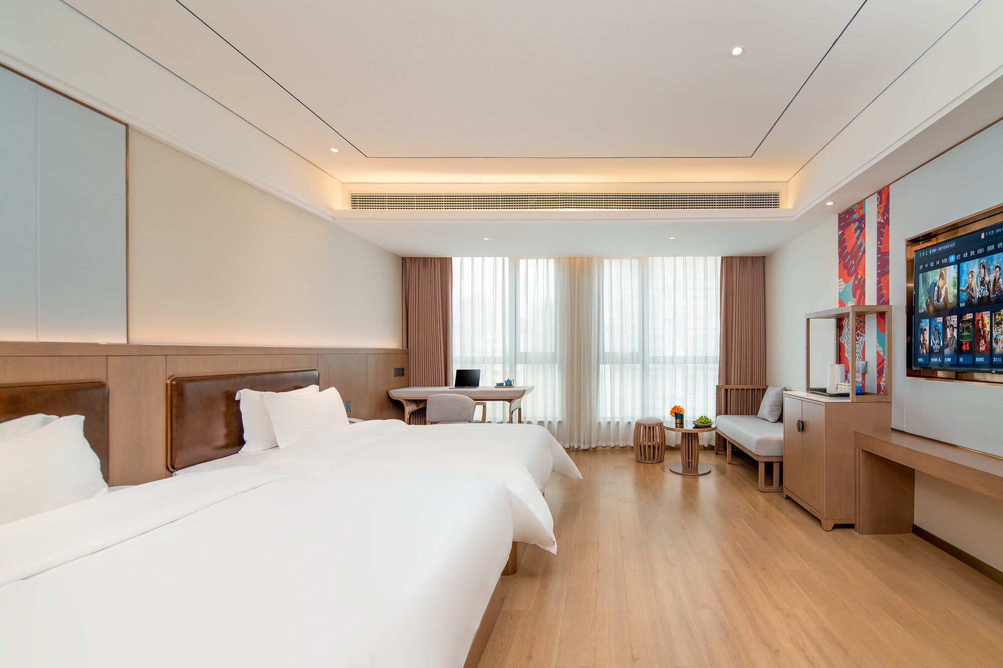 花涧城韵双床房丨乳胶枕丨羽绒被丨智能马桶