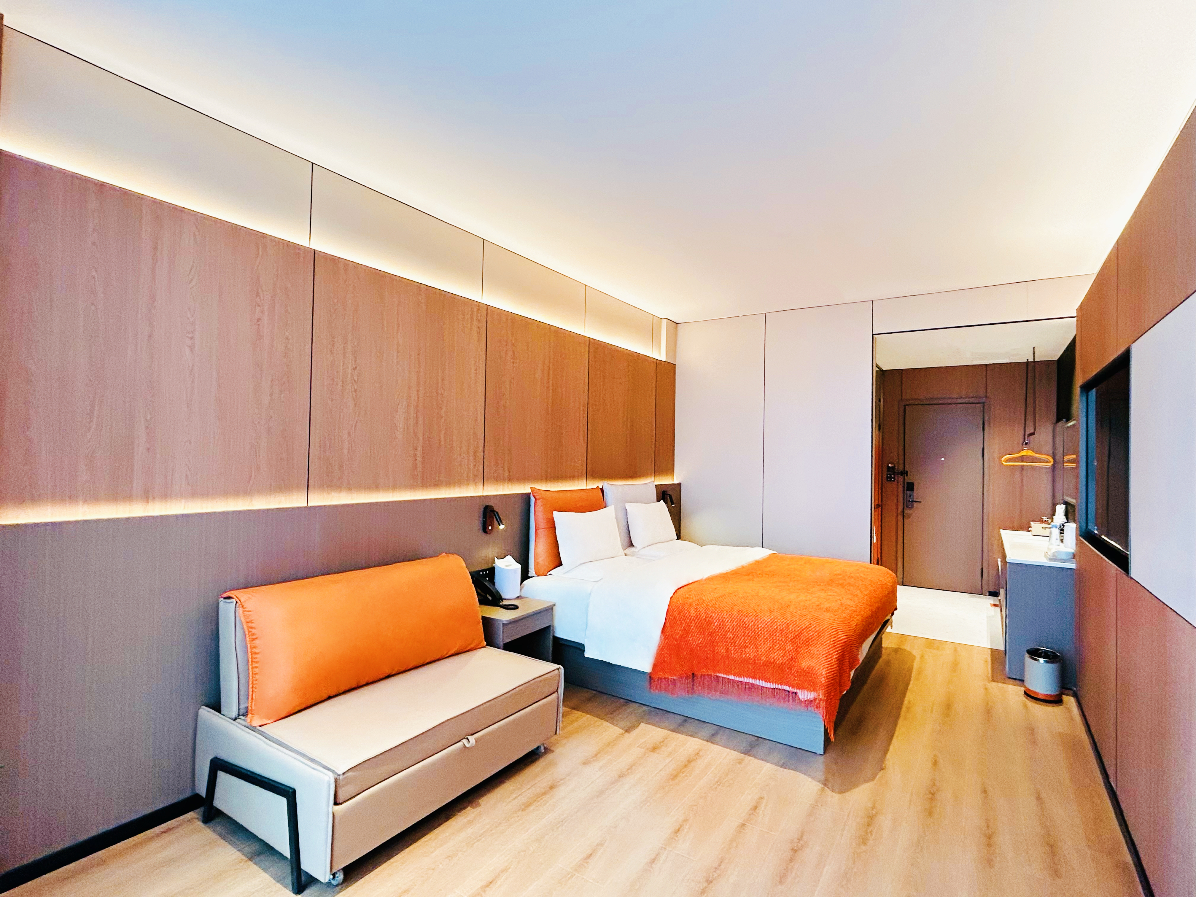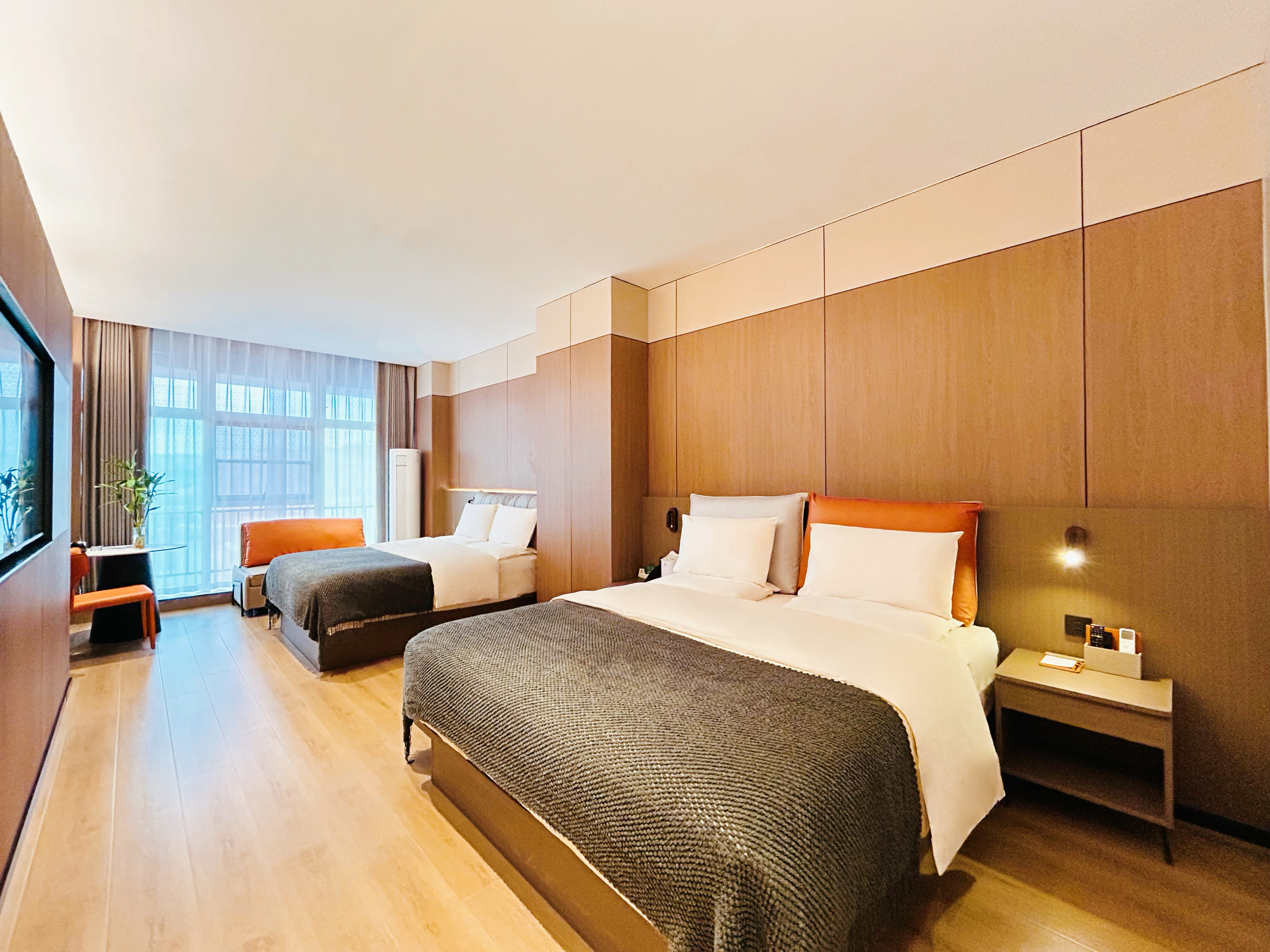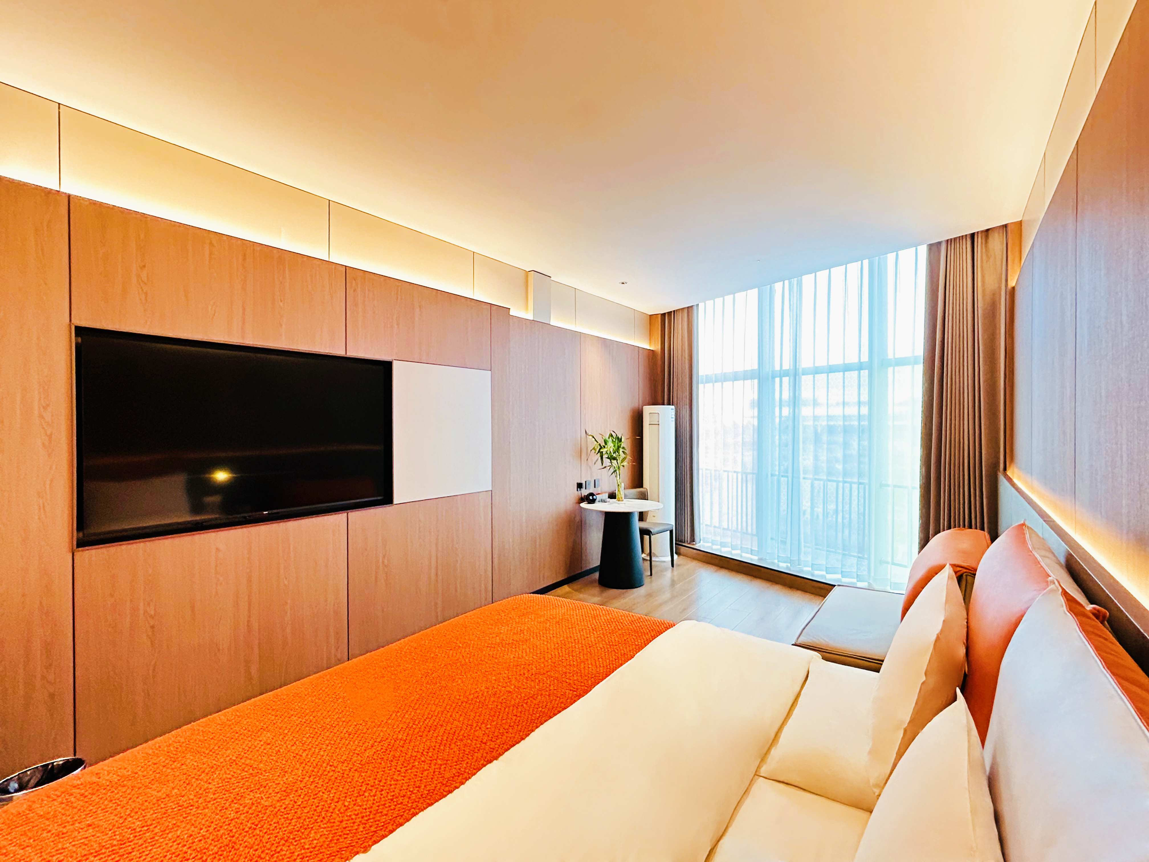 覓景優享大床房『裸棉棉製品>定製乳膠床墊>全自動恆温馬桶>全屋地暖>全屋小度智能』